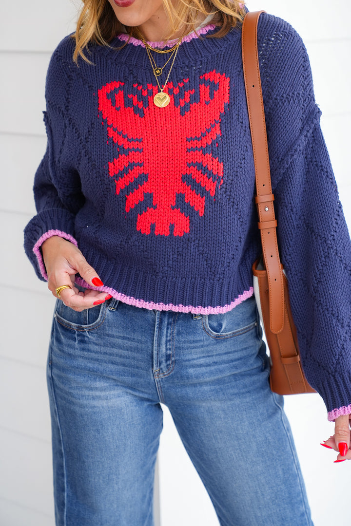 Lobster Knit Long Sleeve Cropped Pullover Sweater