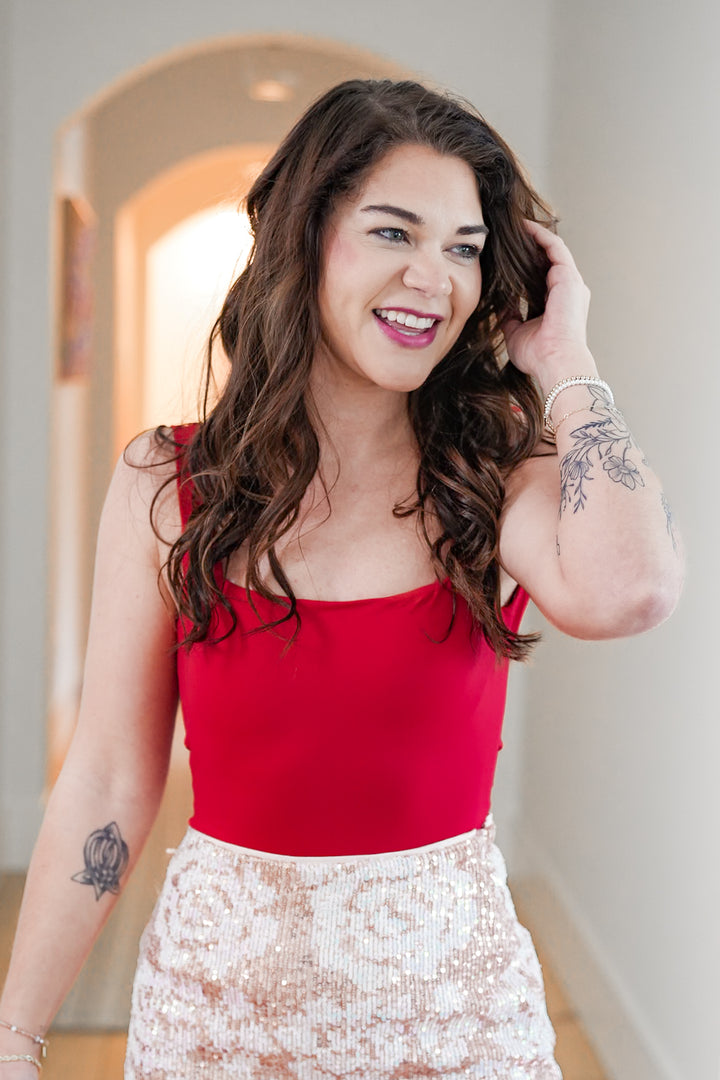 Plus/Reg Red Sequin Velvet Elastic Waist Skort