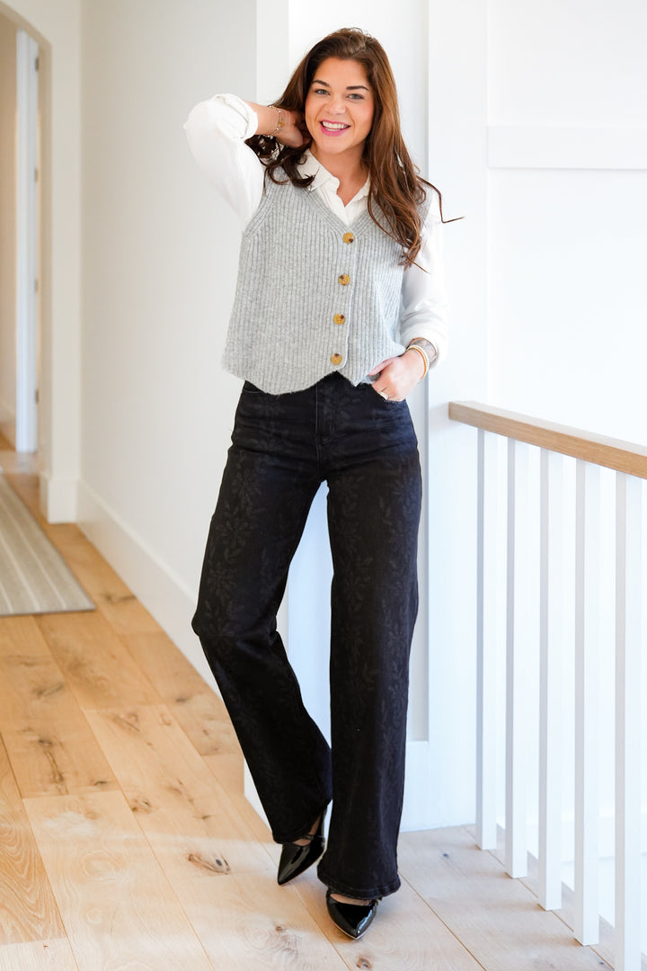 Risen High Rise Black Crop Wide Leg Jeans with Rhinestones