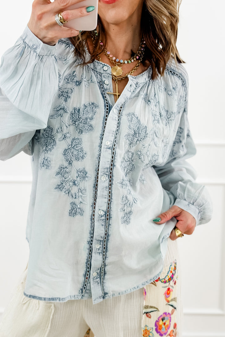 POL Embroidered Long Sleeve Button Up Blouse