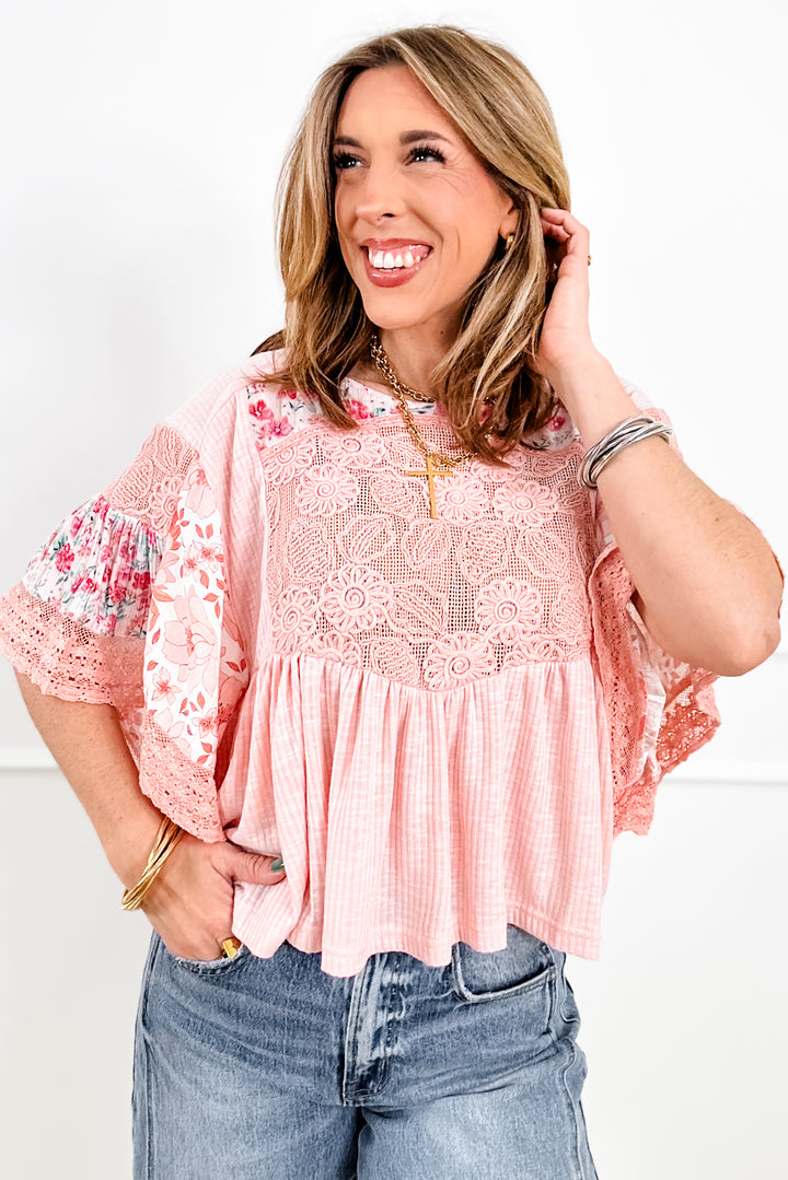POL Pink Short Sleeve Round Neck Top with Floral Print