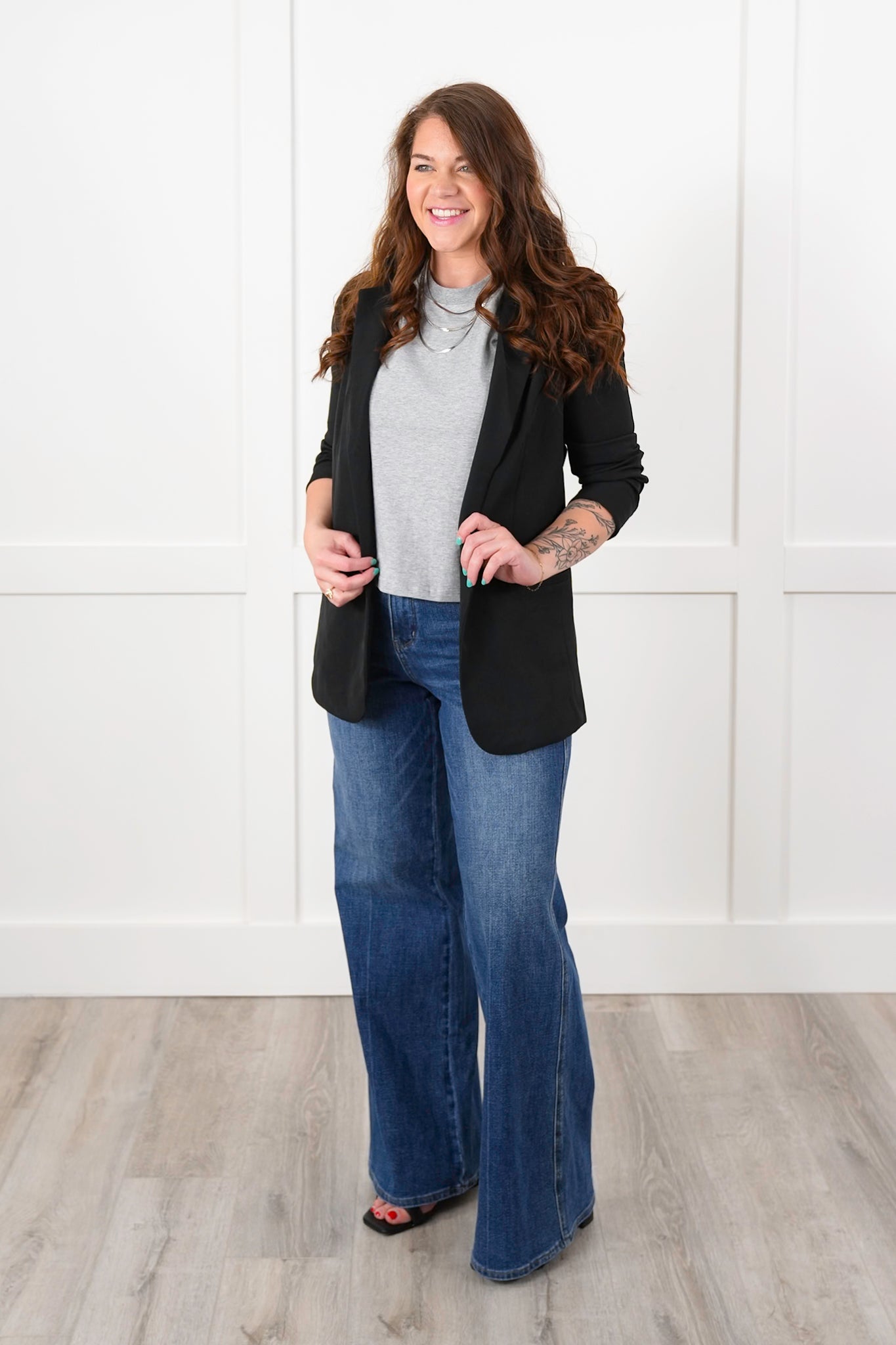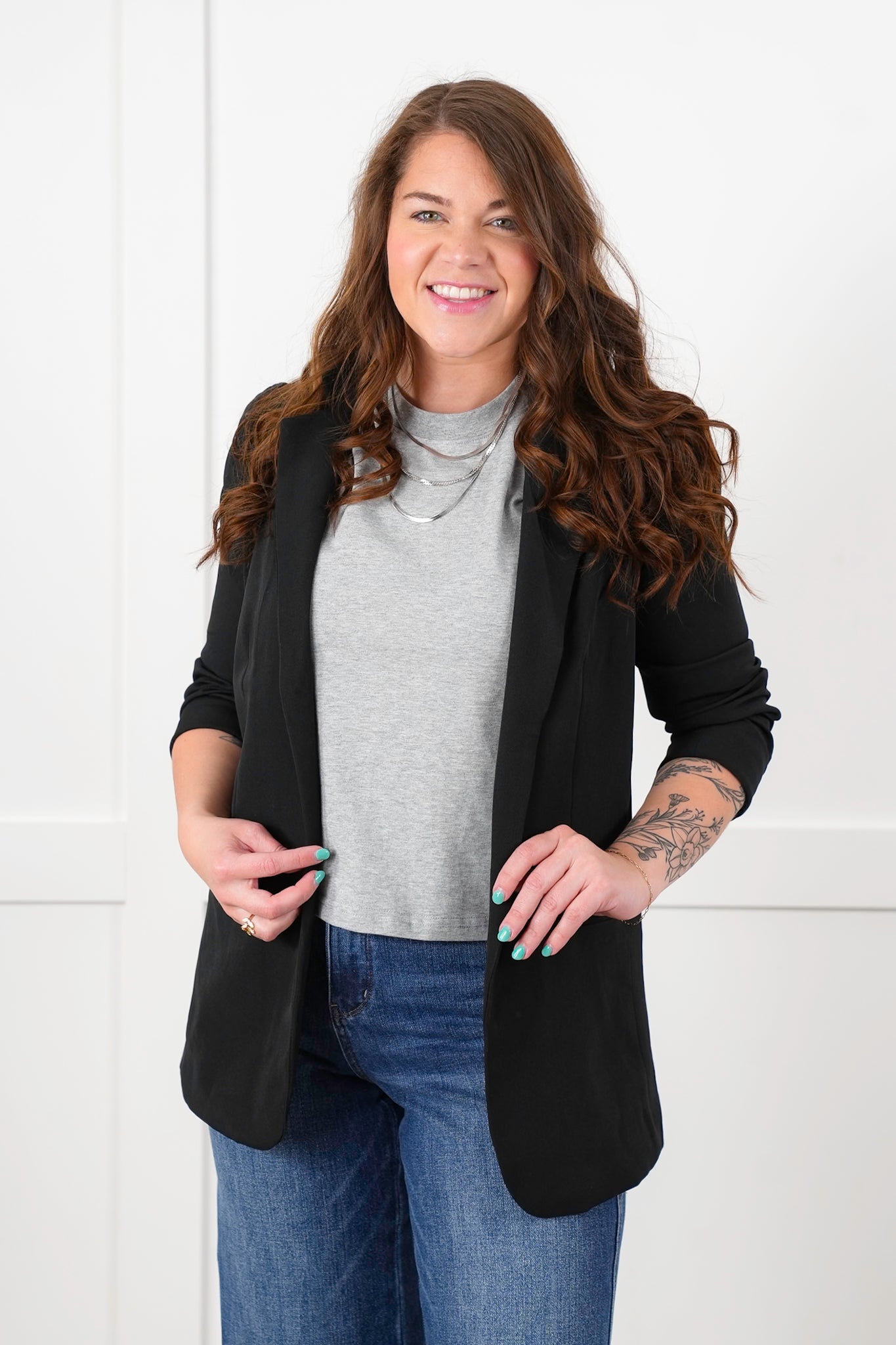 This perfect basic tee takes things up a notch with its unique reverse-seam detail, adding just a touch of interest. Available in classic black or soft heather gray, it's the versatile piece your wardrobe has been waiting for. The slightly longer cropped length hits at just the right spot to pair with high-waisted bottoms without showing too much skin. From casual jeans days to dressing up your favorite skirts, this top works overtime to create countless outfits with minimal effort.