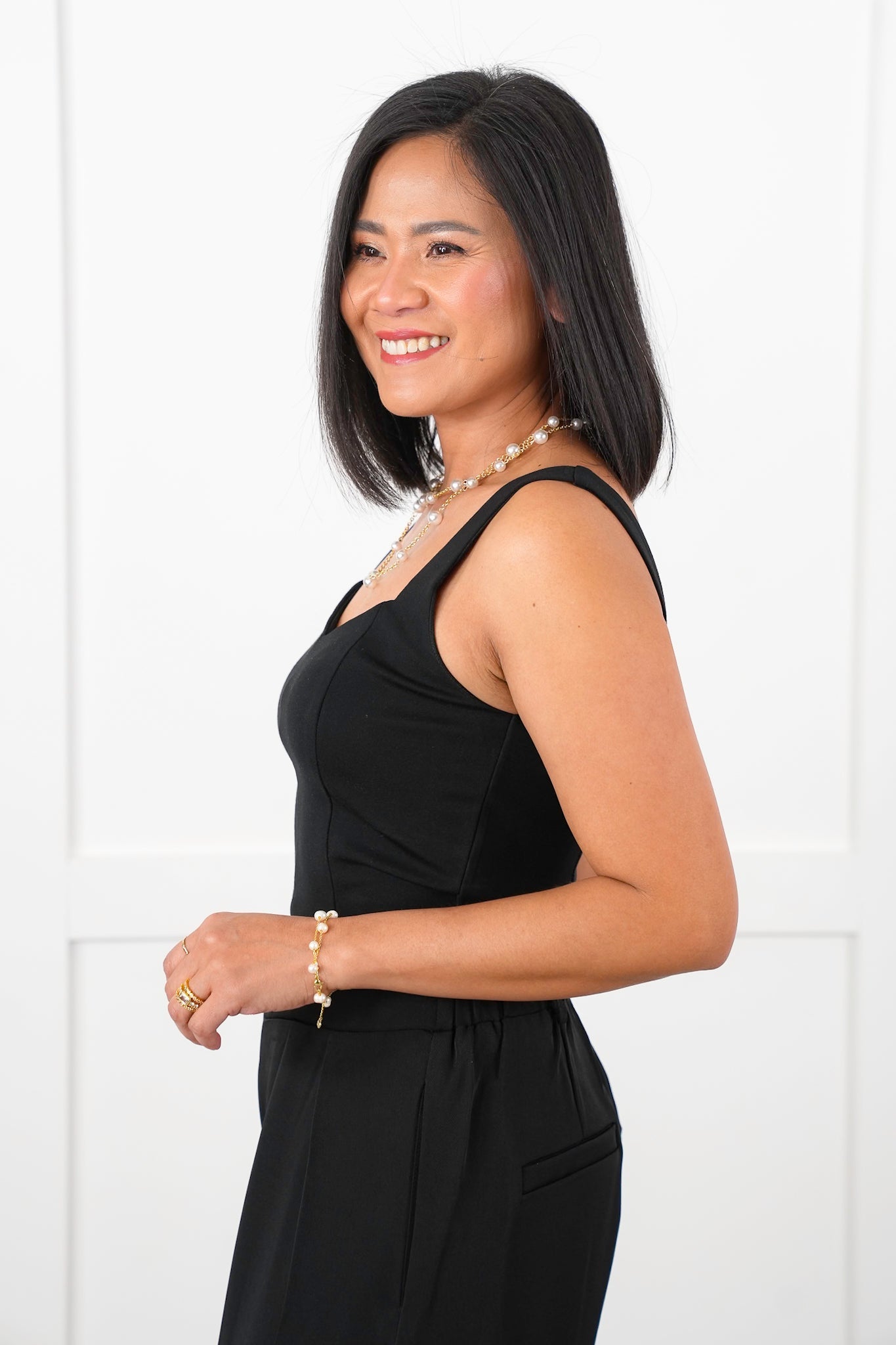 Lynn (black hair) is wearing the small. She has a slim figure.