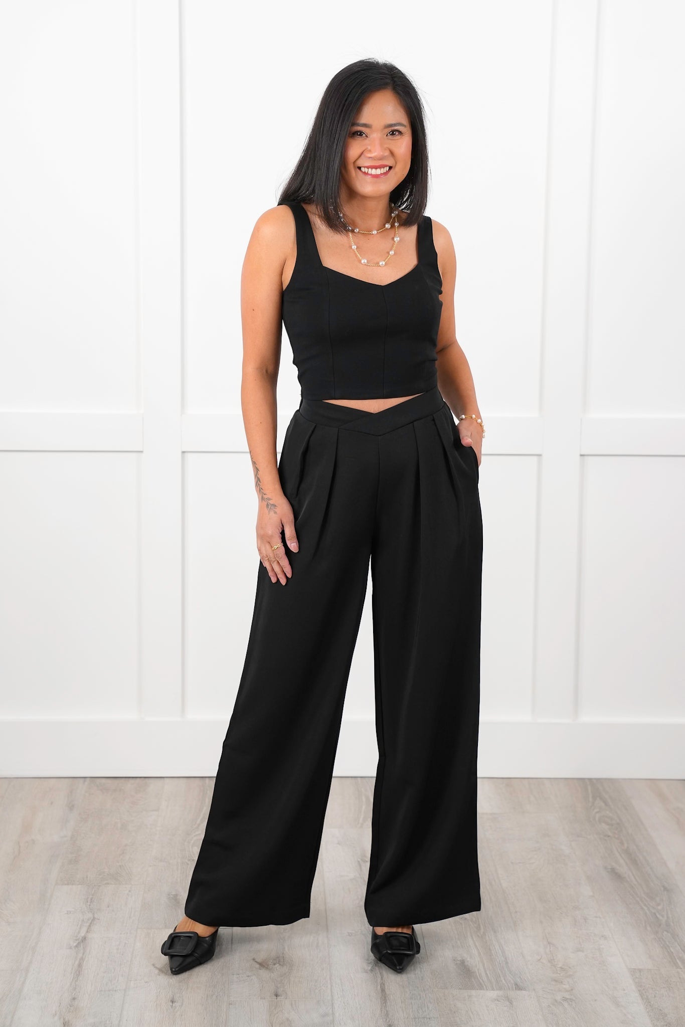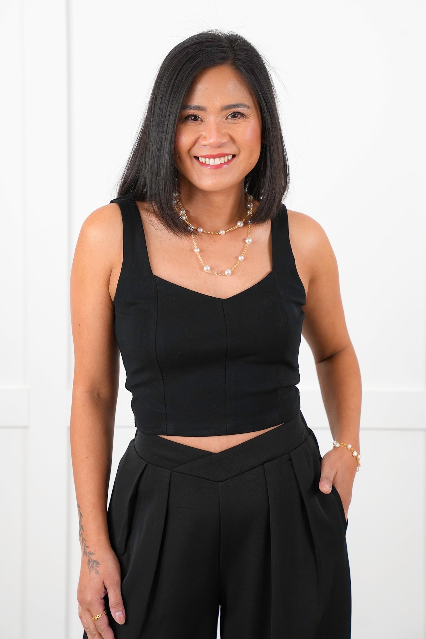 This contouring knit tank is a sleek staple that hugs your curves in all the right places, featuring clean lines that easily tuck into the matching high-rise pants (sold separately) or flowy skirts. Dress it up with a statement necklace or keep it cool with layered gold chains and distressed denim.