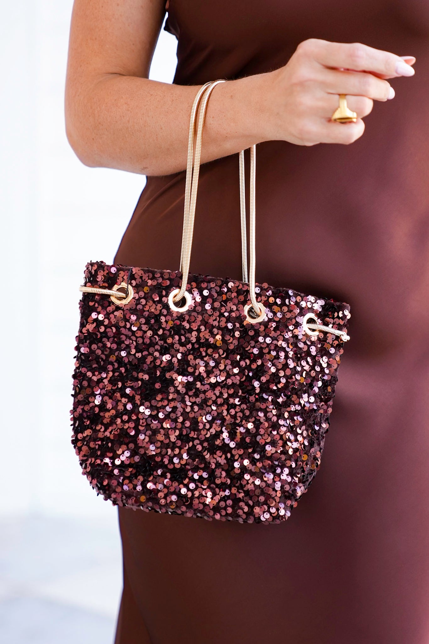 A chic statement accessory designed to shine after dark. Covered in shimmering sequins, this stylish pouch silhouette is finished with a sleek chain strap for effortless shoulder wear. Compact yet eye-catching, it’s the perfect companion for parties, evenings out, and special occasions.