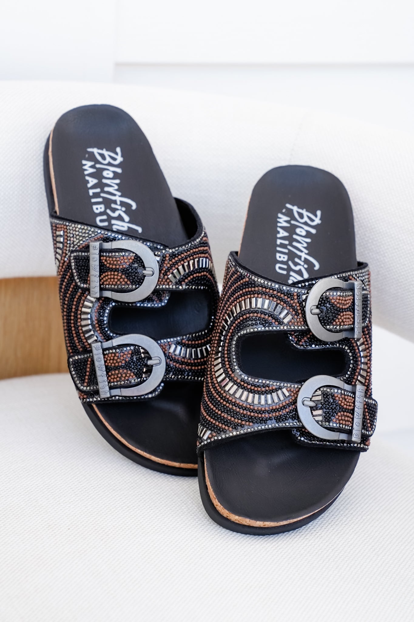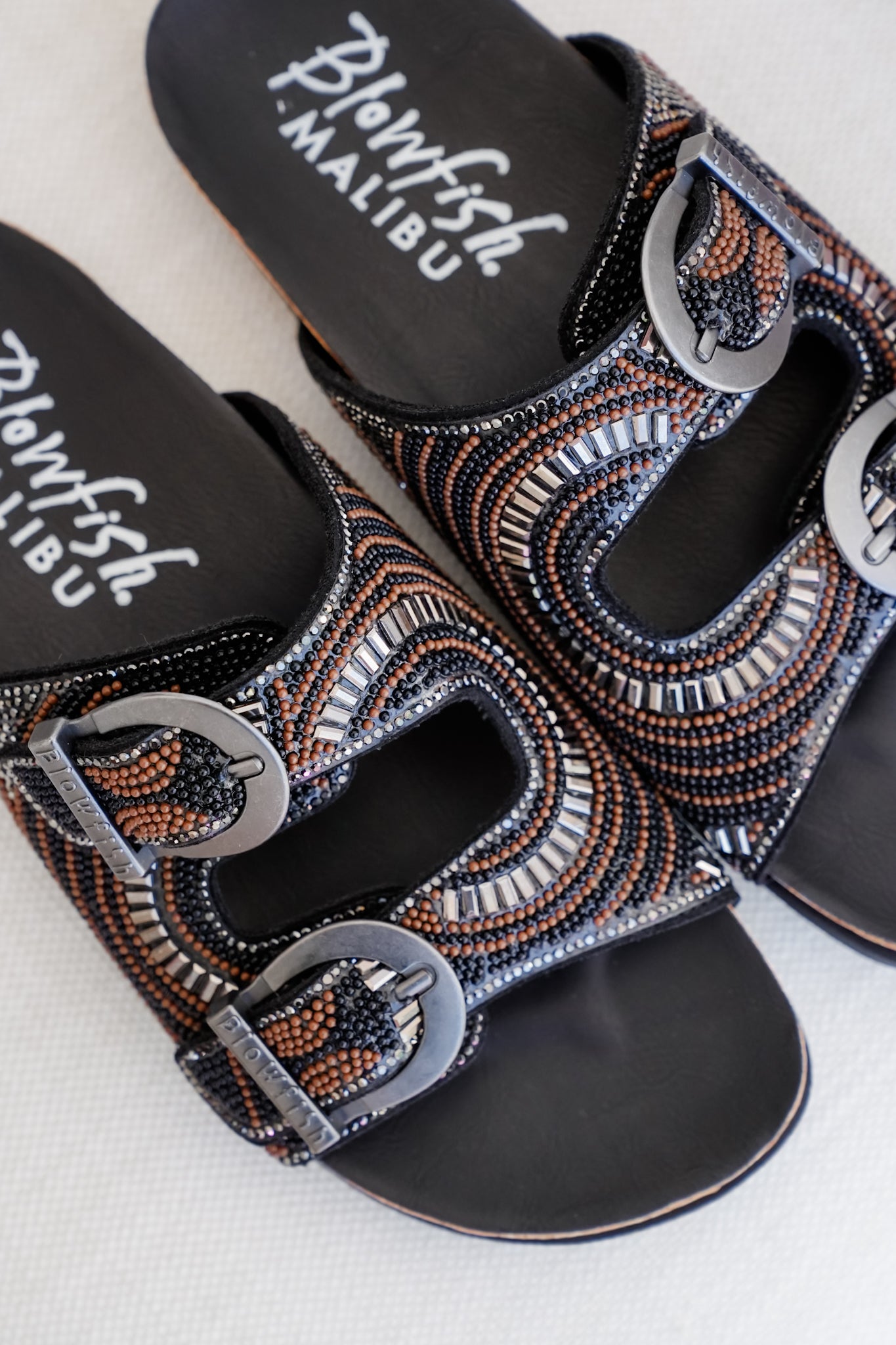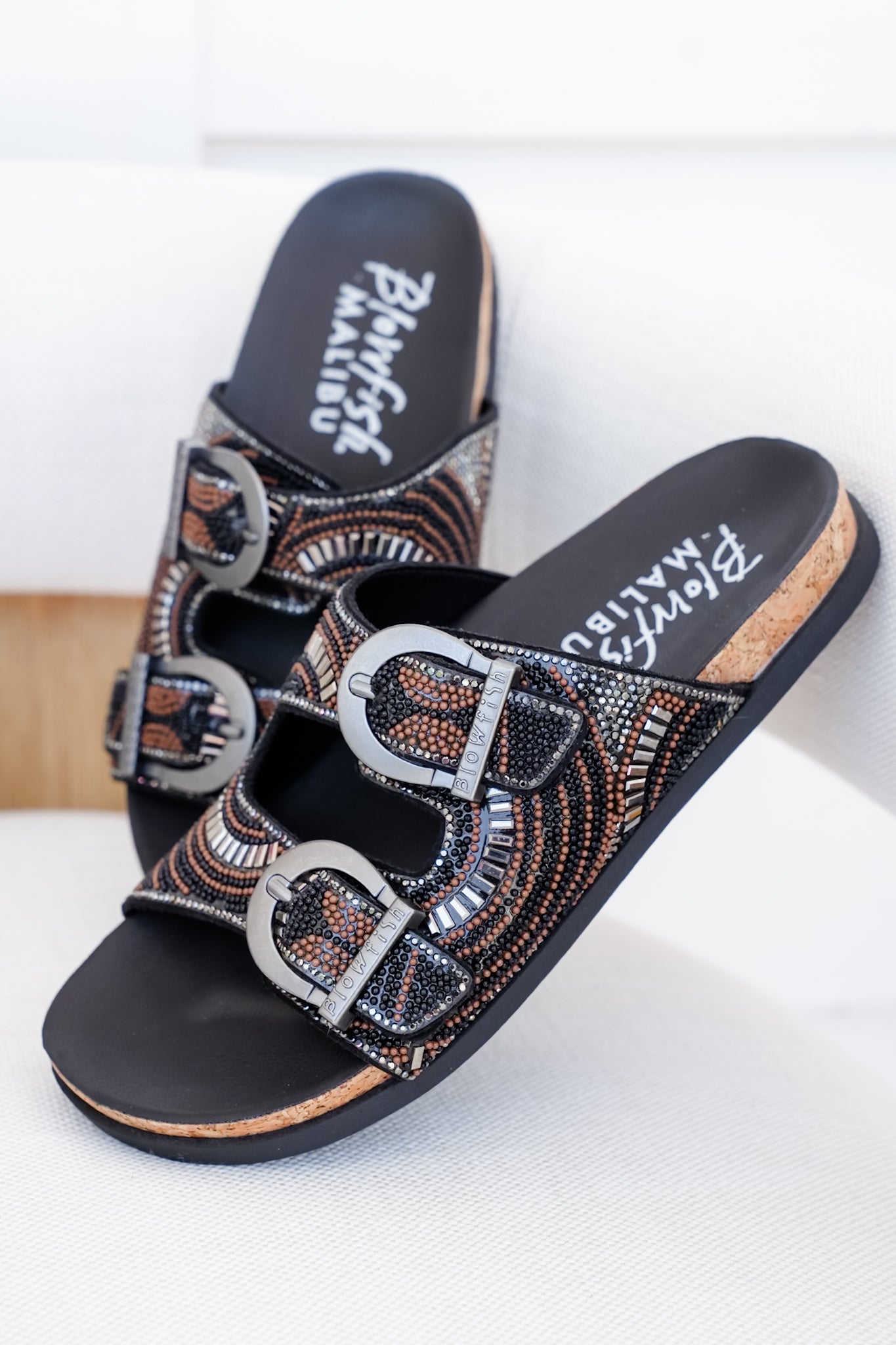 Blowfish Embellished Cork Slide Sandals with Adjustable Buckle Detail