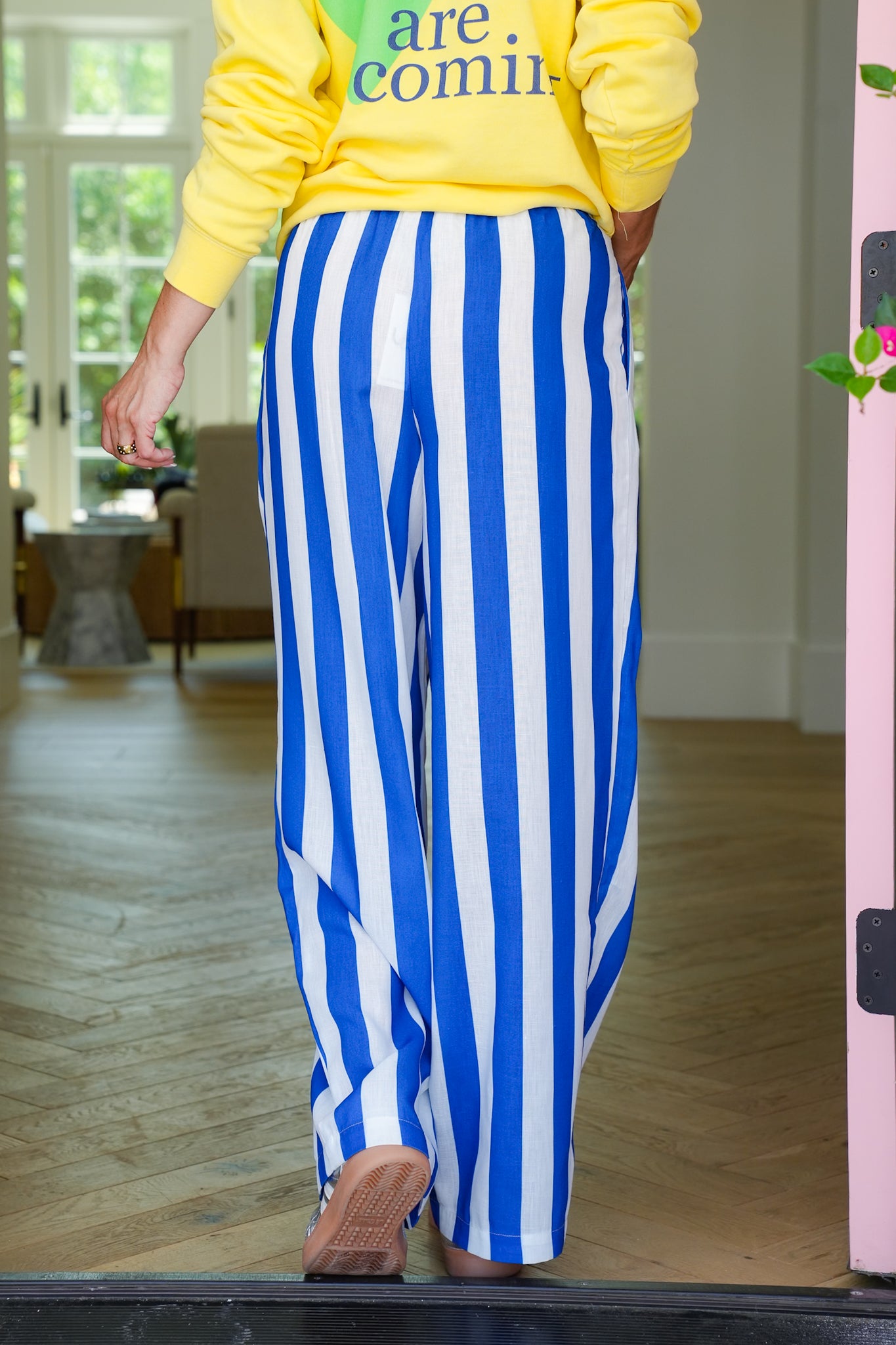 These breezy, blue-striped pants are pure beachy goodness! With their flowy shape, functional drawstring, and laid-back stripes, they’re ready for everything from patio lounging to farmers market strolls. Pair them with a cropped tank or a relaxed tee for a playful look that still feels put-together.