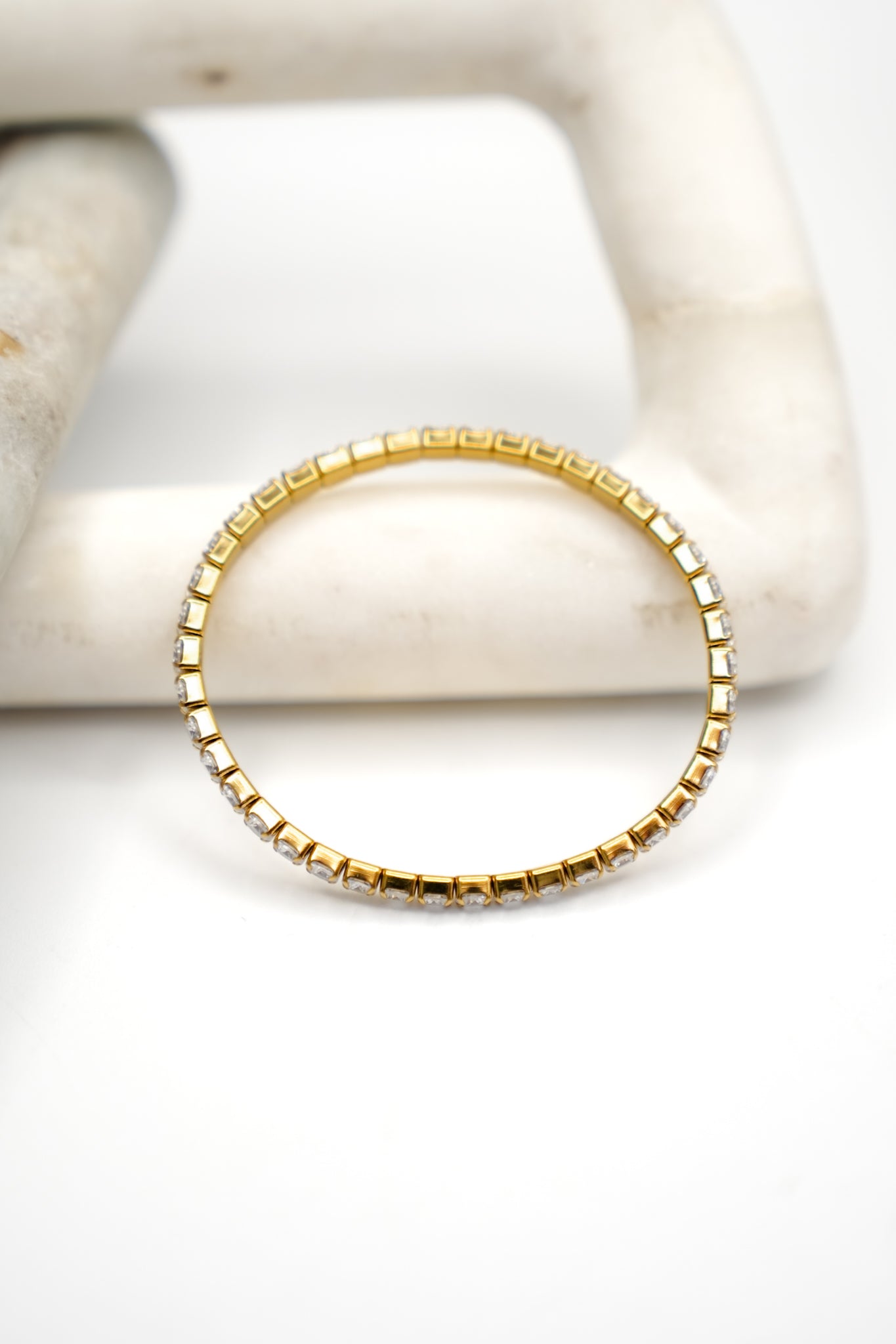 This bracelet brings bold sparkle with zero fuss. The thicker silhouette gives that elevated, eye-catching shine, while the classic tennis design keeps it timeless and chic. The stretchy design makes it easy to slip on and off while staying comfortable all day. Dress it up, layer it, or wear it solo for that polished finishing touch.