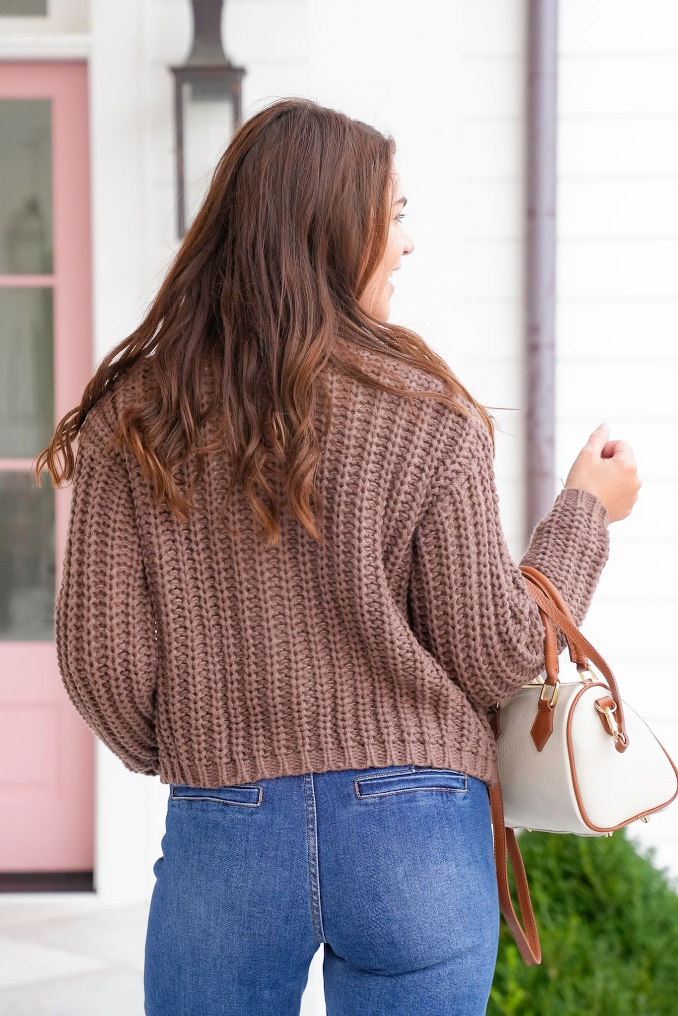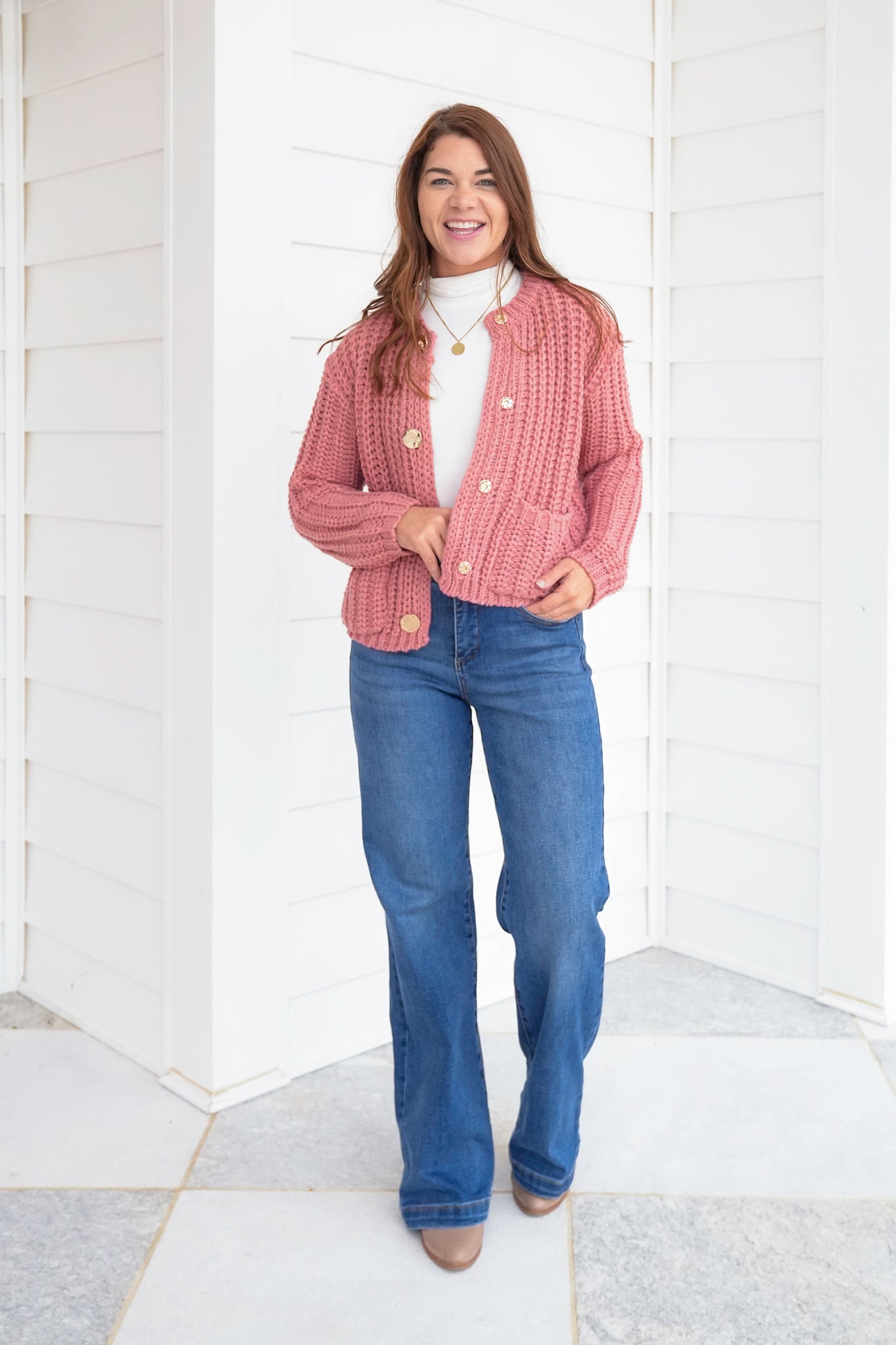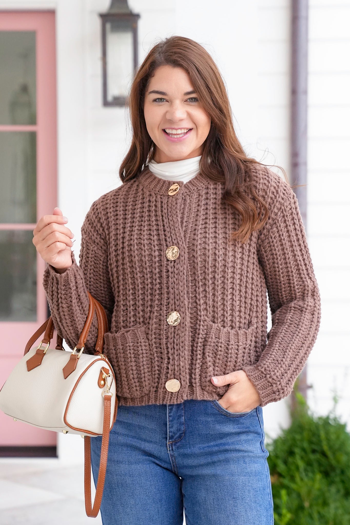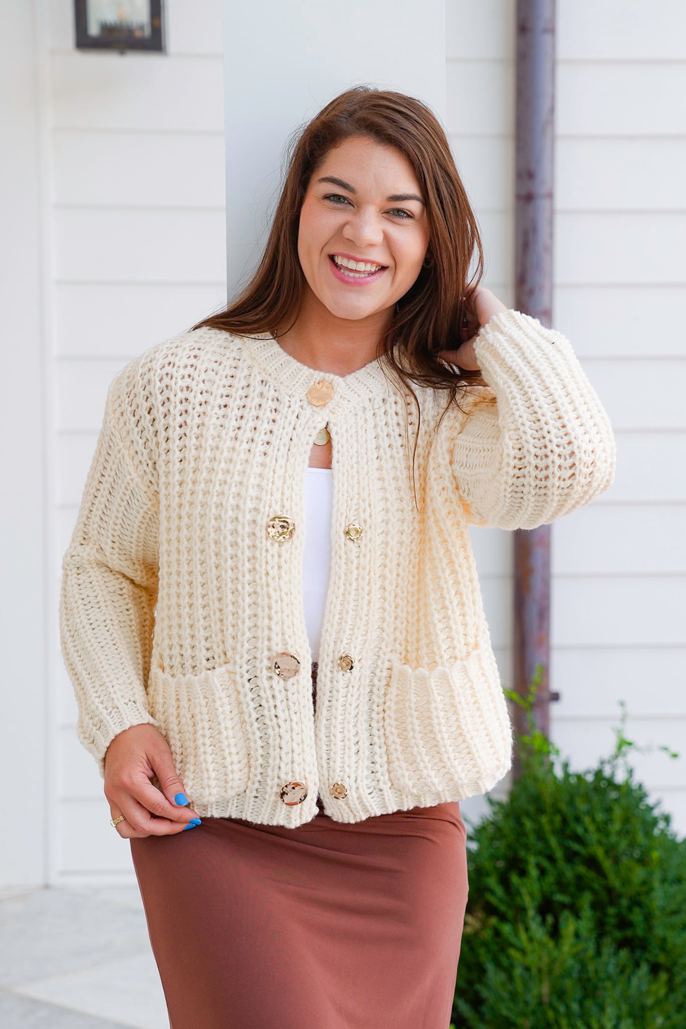 Chunky Knit Long Sleeve Cardigan with Metal Button Detail