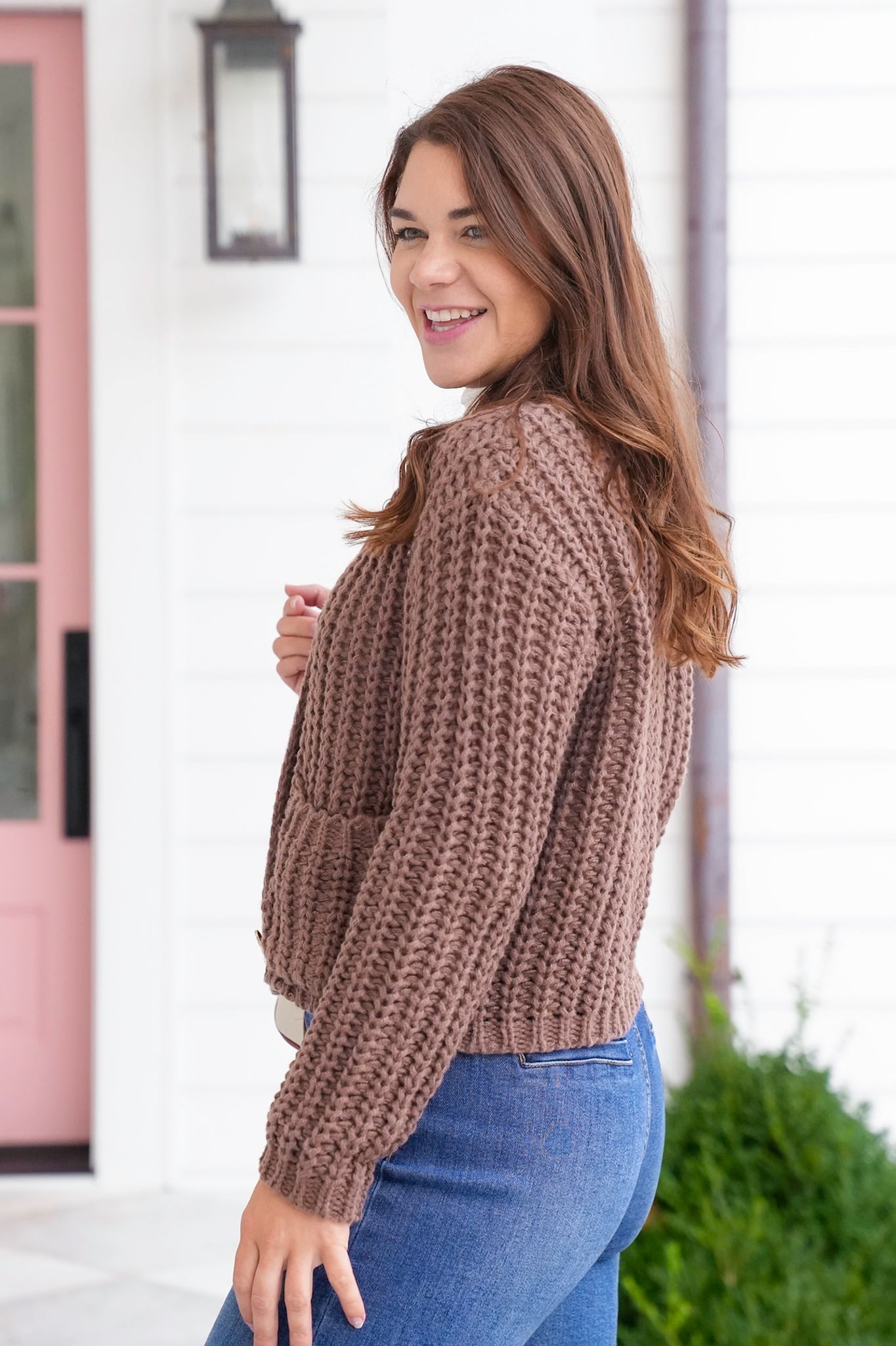This cardigan is the perfect blend of cozy and chic, with its chunky knit texture and eye-catching hammered snaps. The oversized, boxy fit makes it easy to throw on over anything, and the patch pockets give it that extra laid-back vibe while keeping it practical. It’s one of those pieces you’ll want to wear again and again, whether lounging at home or layering for a day out.