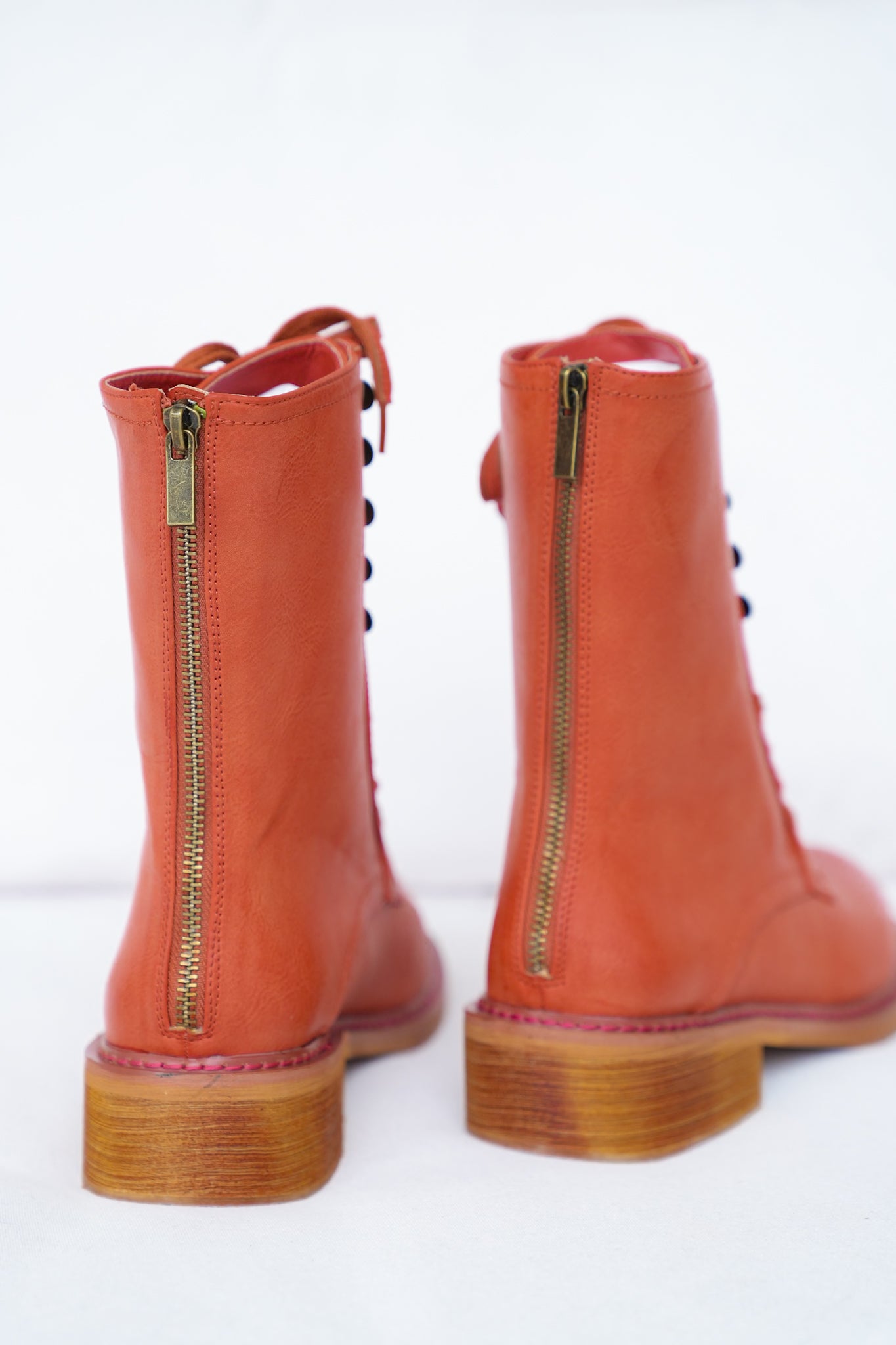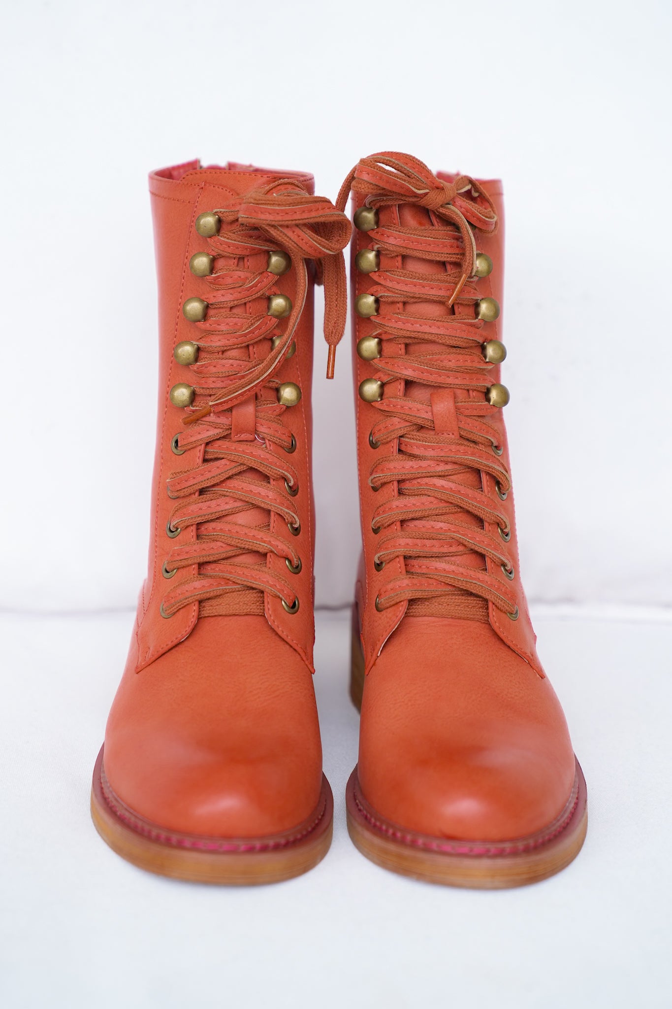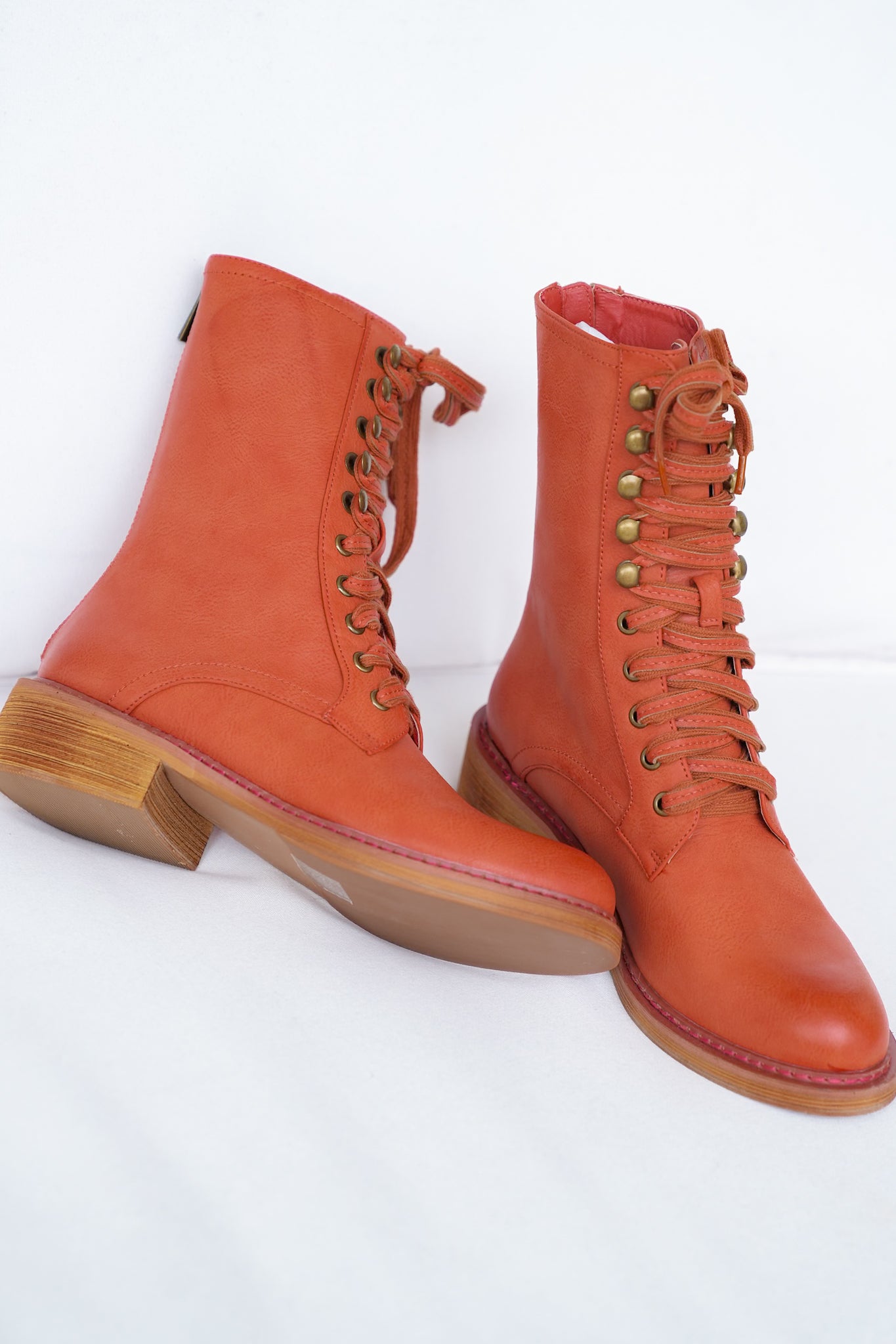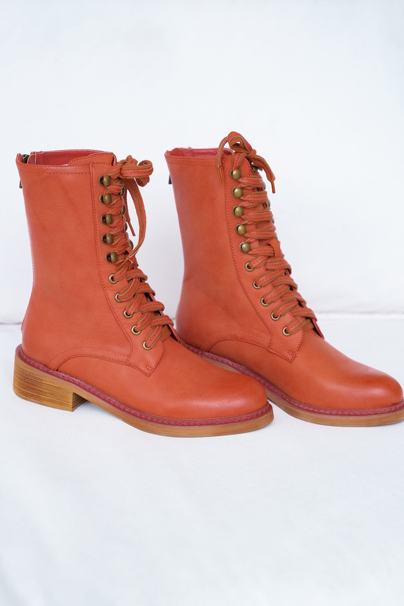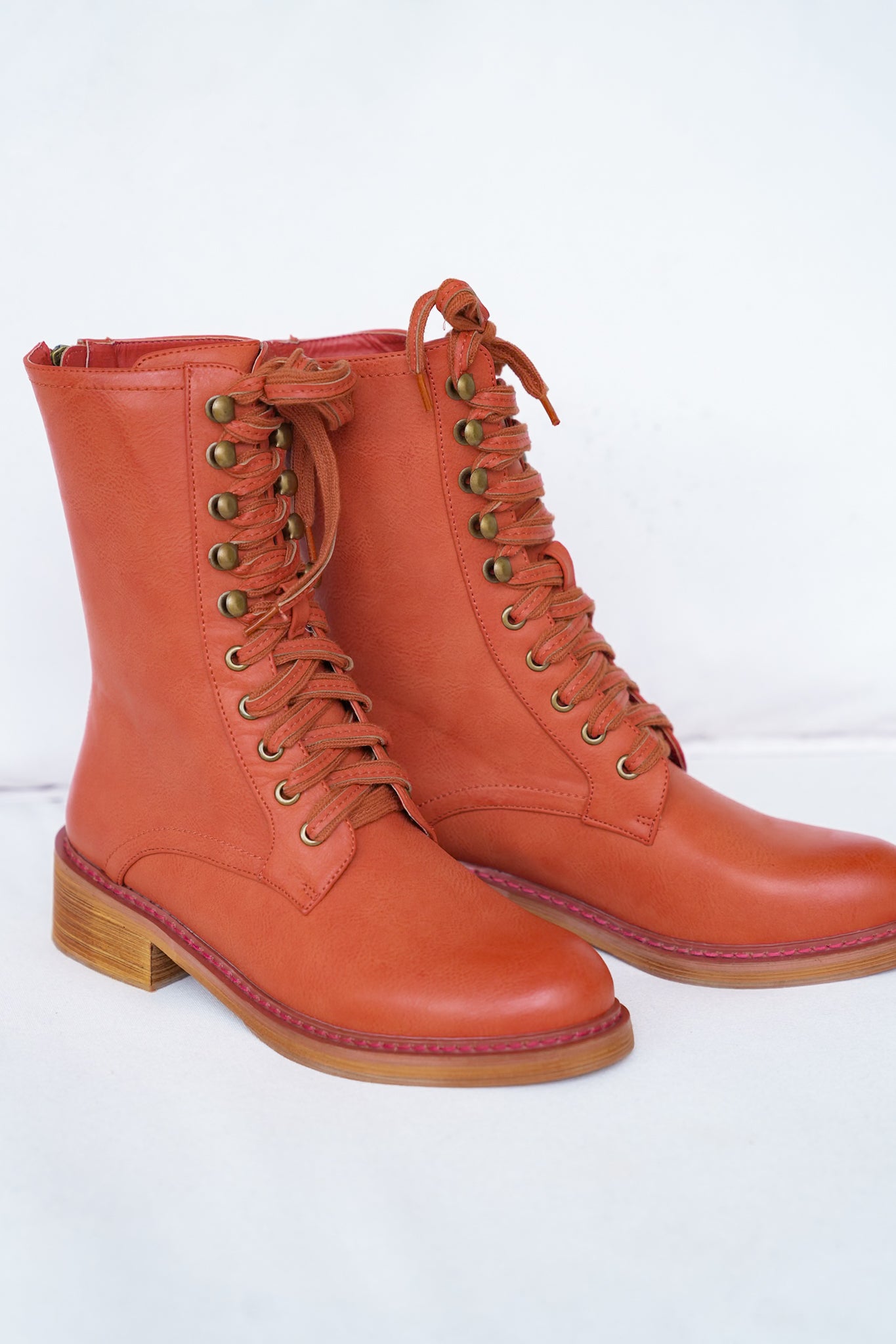 Step into fall with these statement-making combat boots in a gorgeous cognac hue. The combination of a lace-up front and back zipper blends fashion with function, letting you slip them on quickly while still getting that classic combat boot vibe.