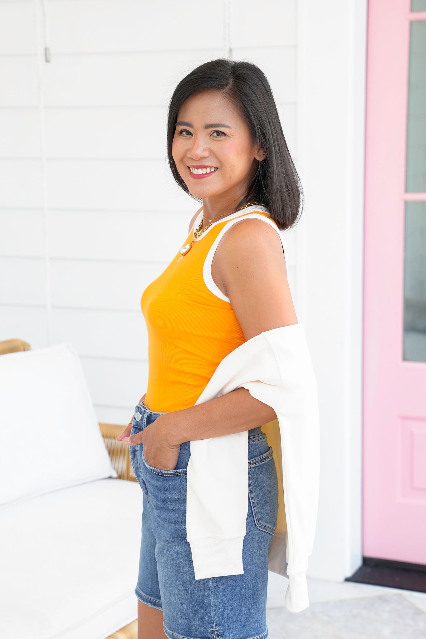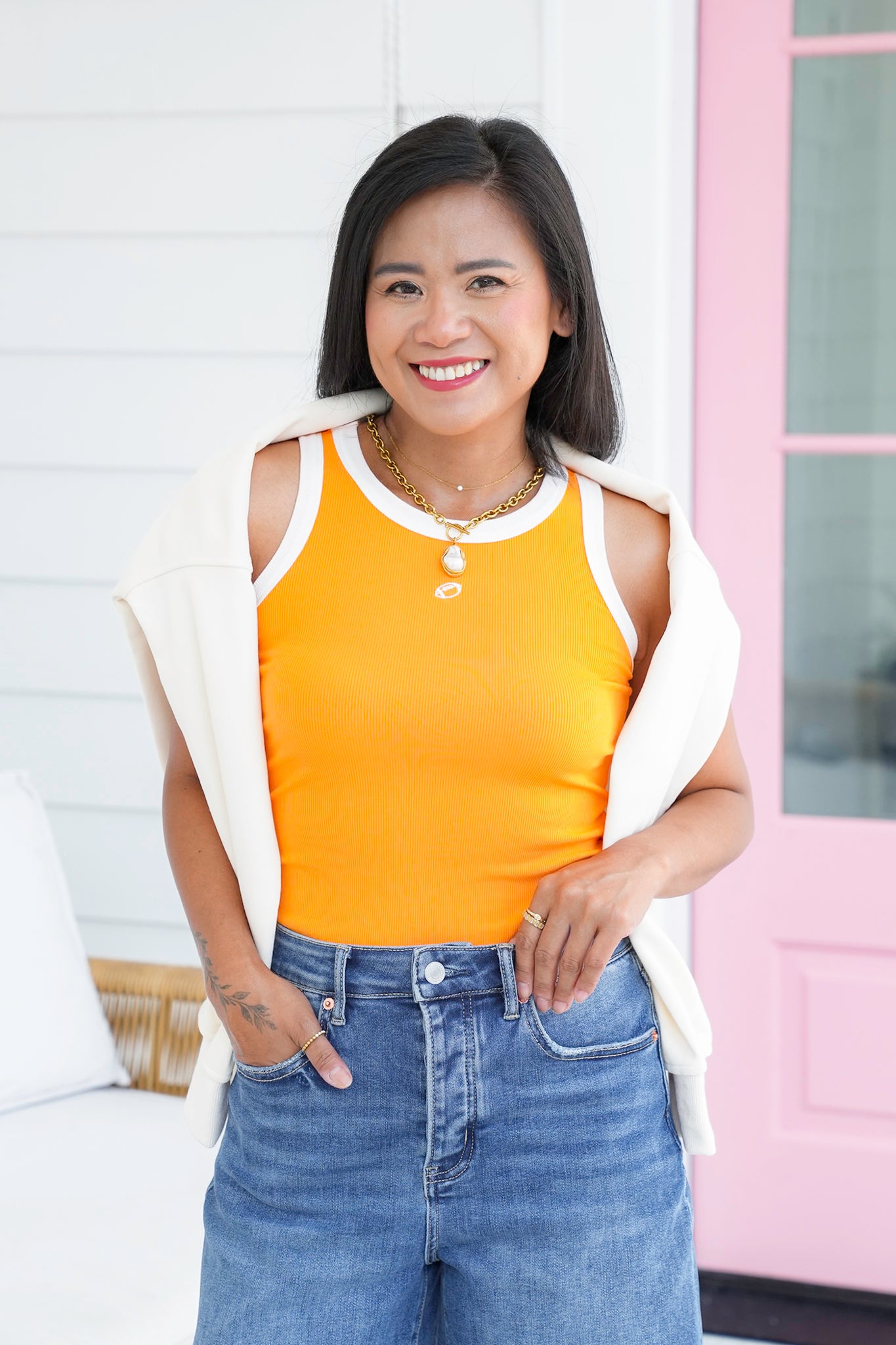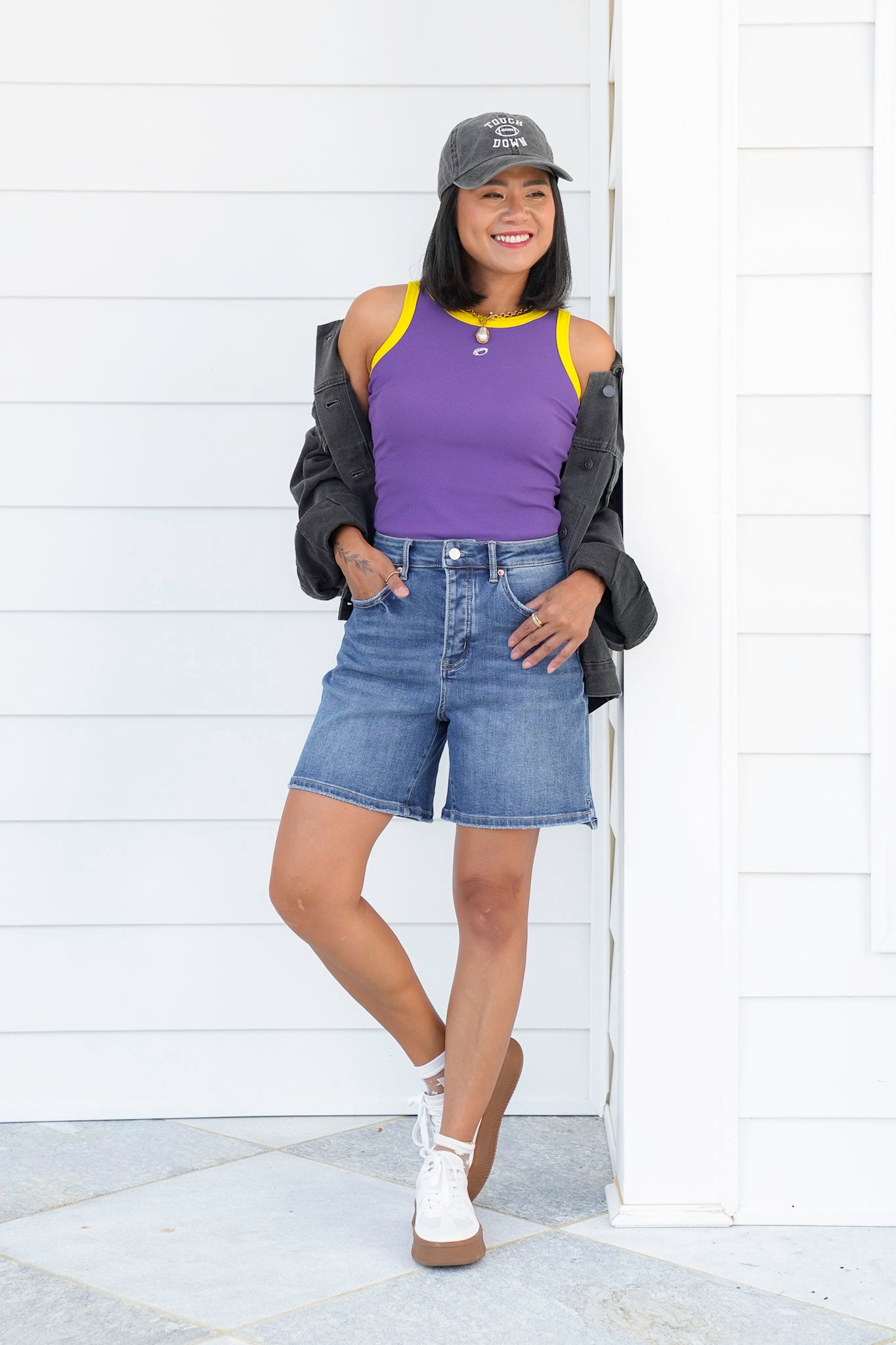 This tank is bringing the heat with sporty vibes and standout details that are ready for every kickoff and casual hangout! With bold contrast trim and a cute embroidered football at the chest, it’s the ultimate way to show your team spirit without sacrificing style. Pair it with denim shorts, joggers, or a skort for an easy, winning look that plays hard all season long.