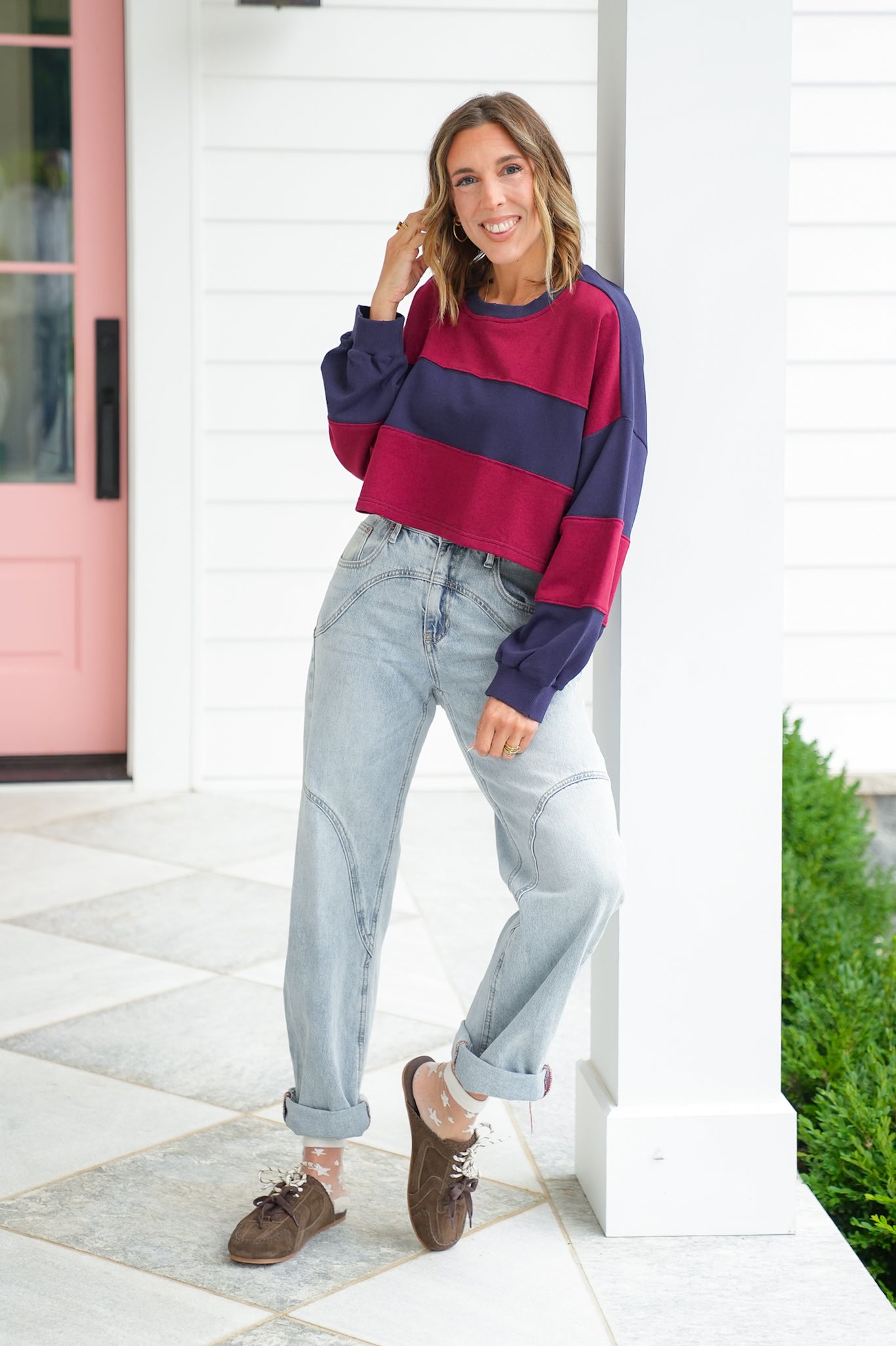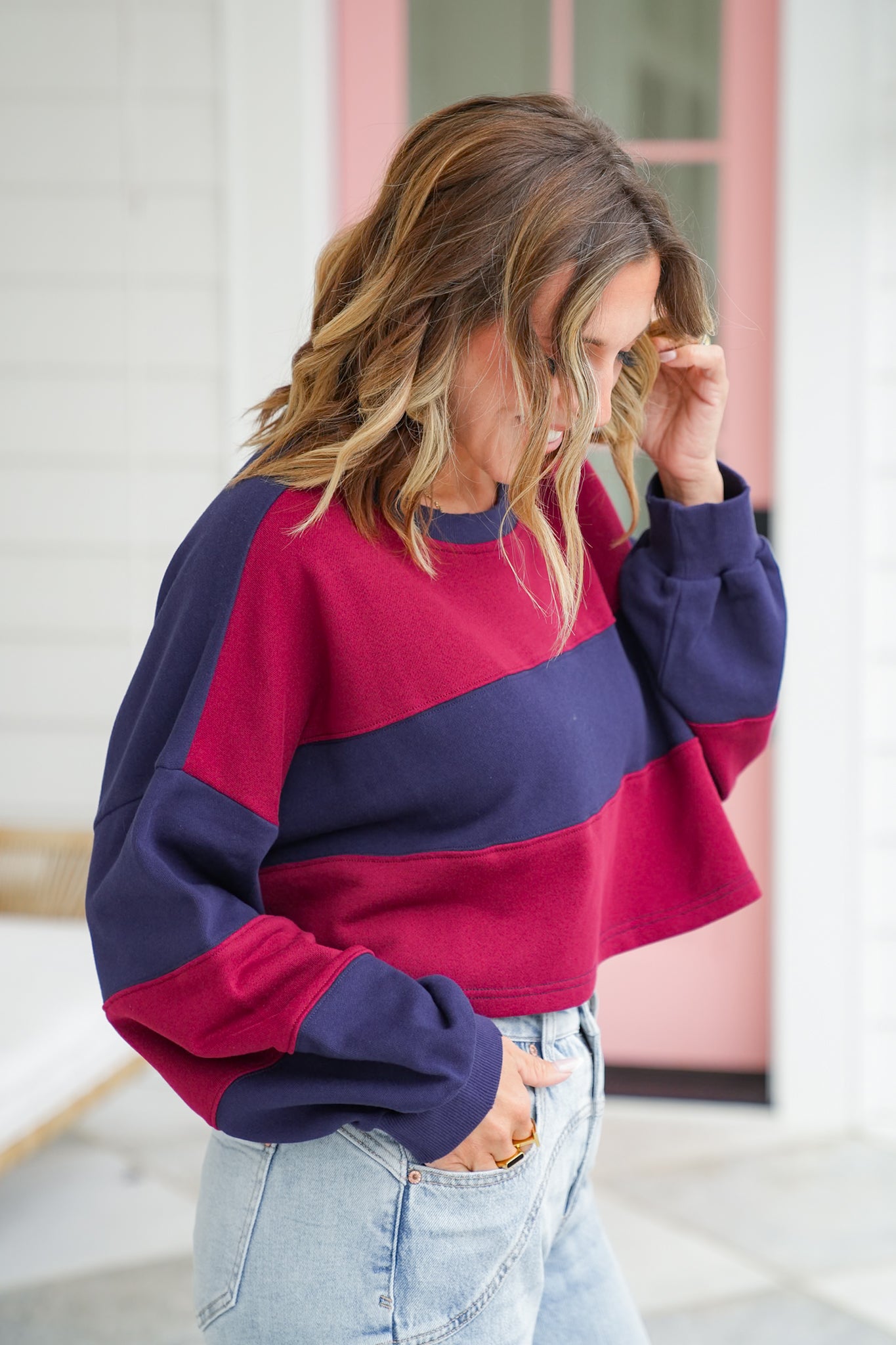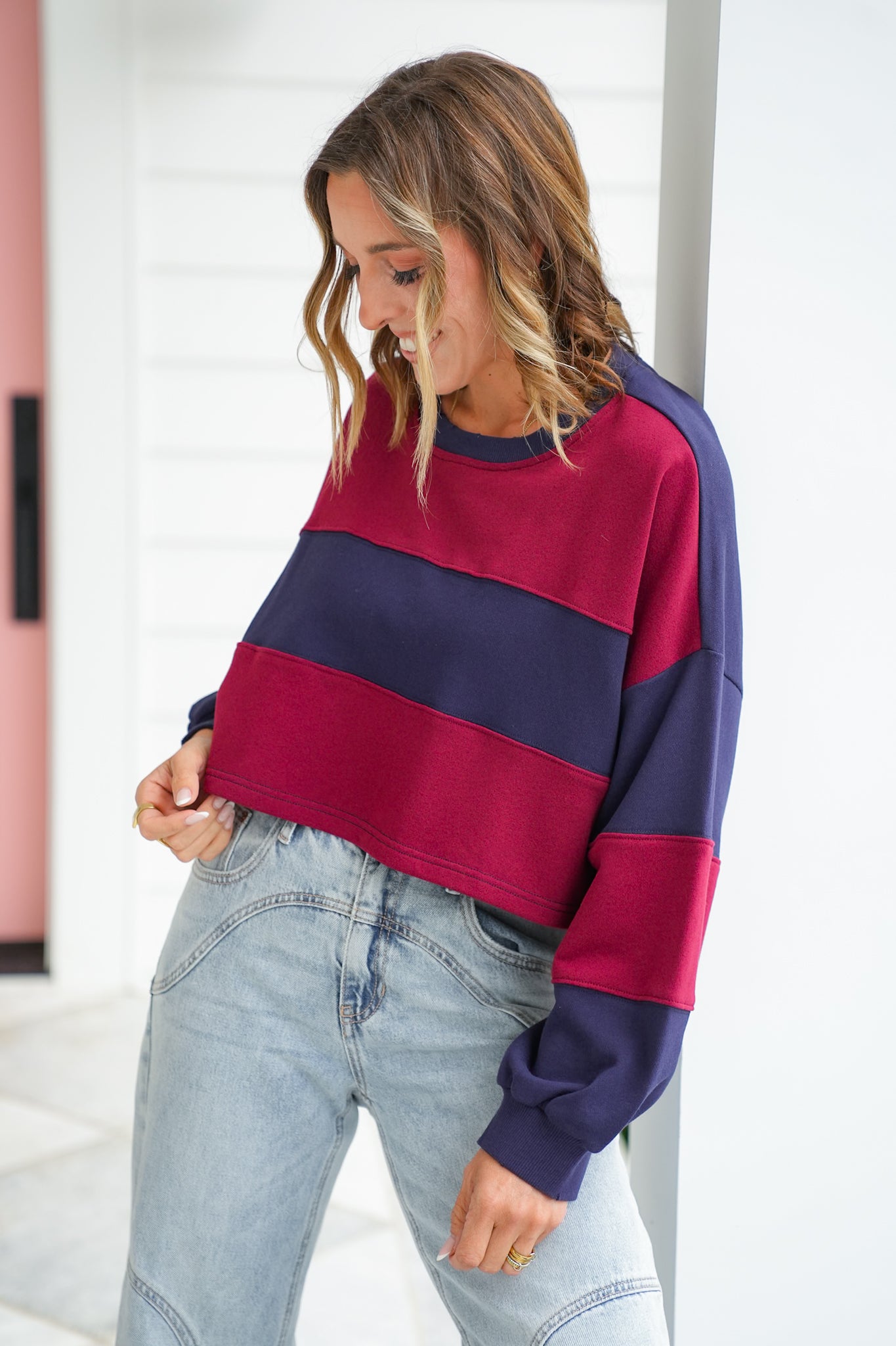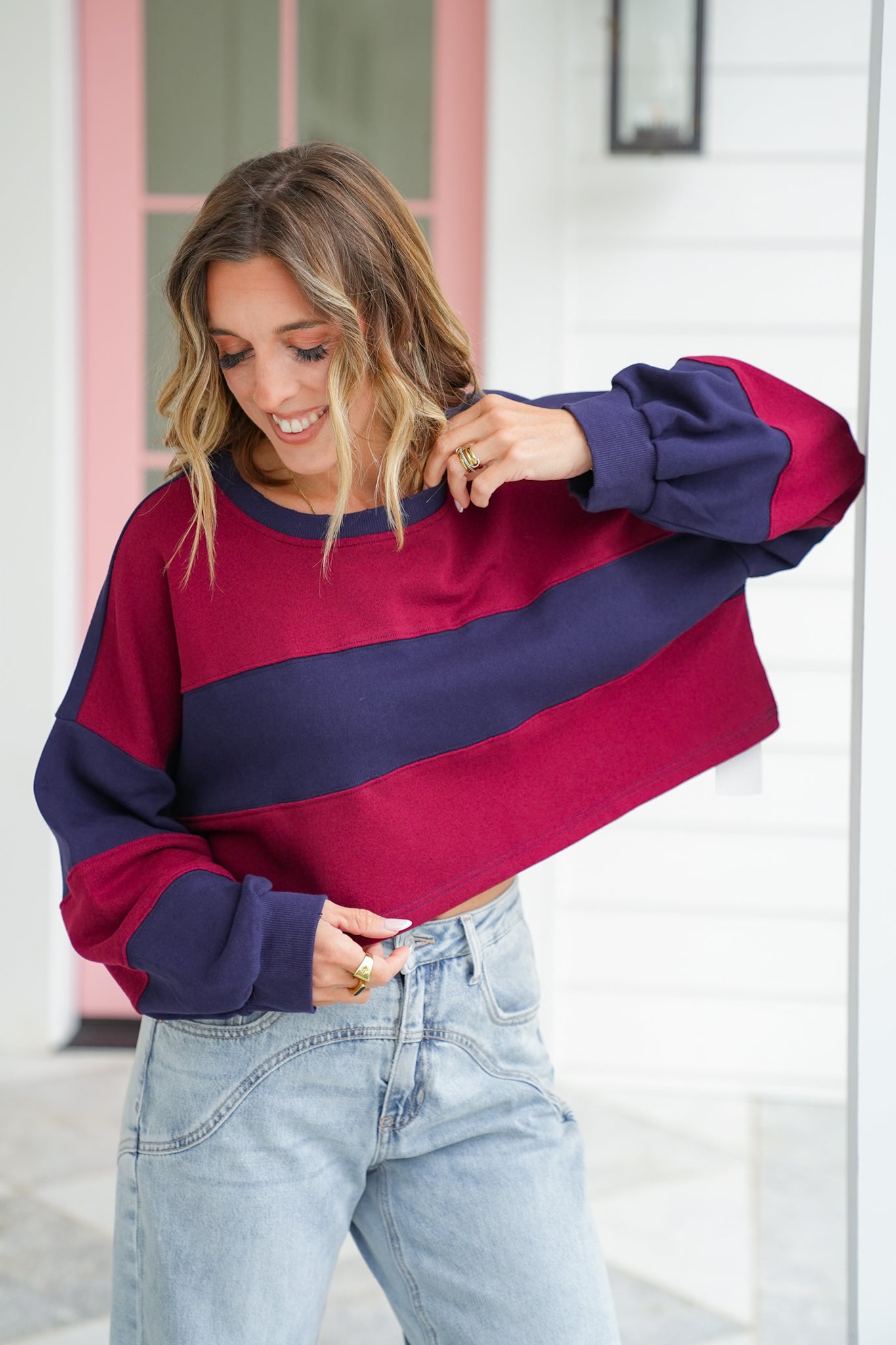 This pullover is color-blocked perfection with bold varsity vibes that bring sporty charm to your off-duty look! The cropped fit and oversized sleeves create that relaxed, street-style silhouette we all love, while the soft French terry keeps things cozy. Pair it with high-rise denim or biker shorts for an effortlessly cool game-day or weekend outfit.