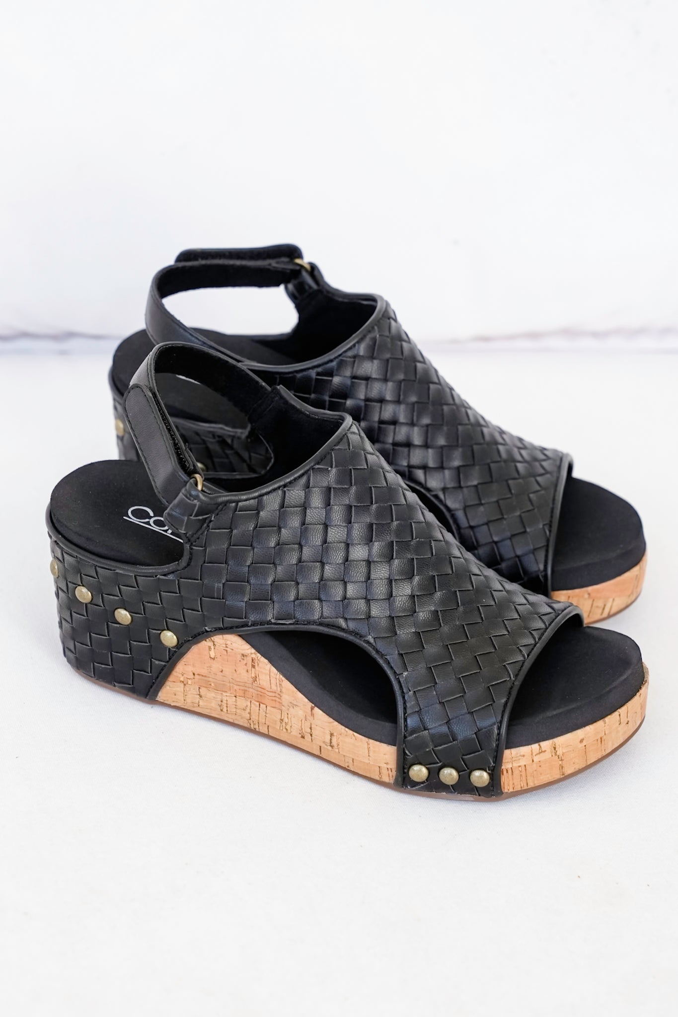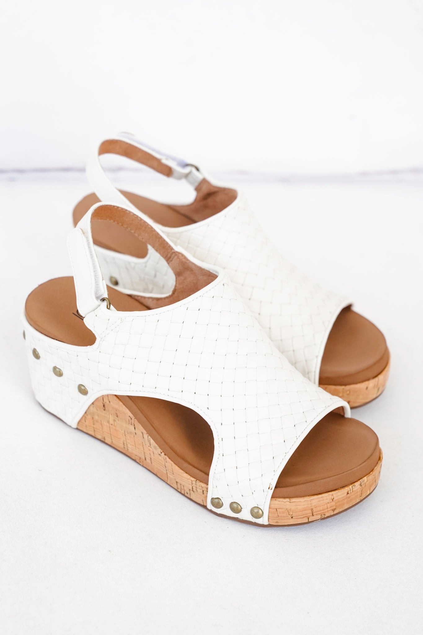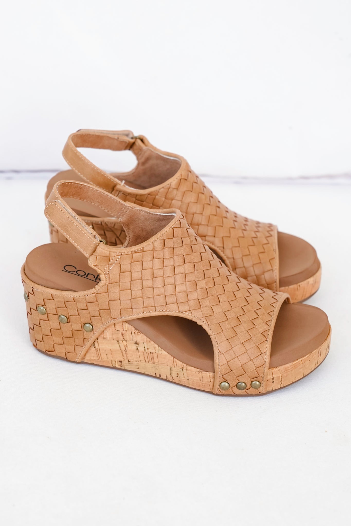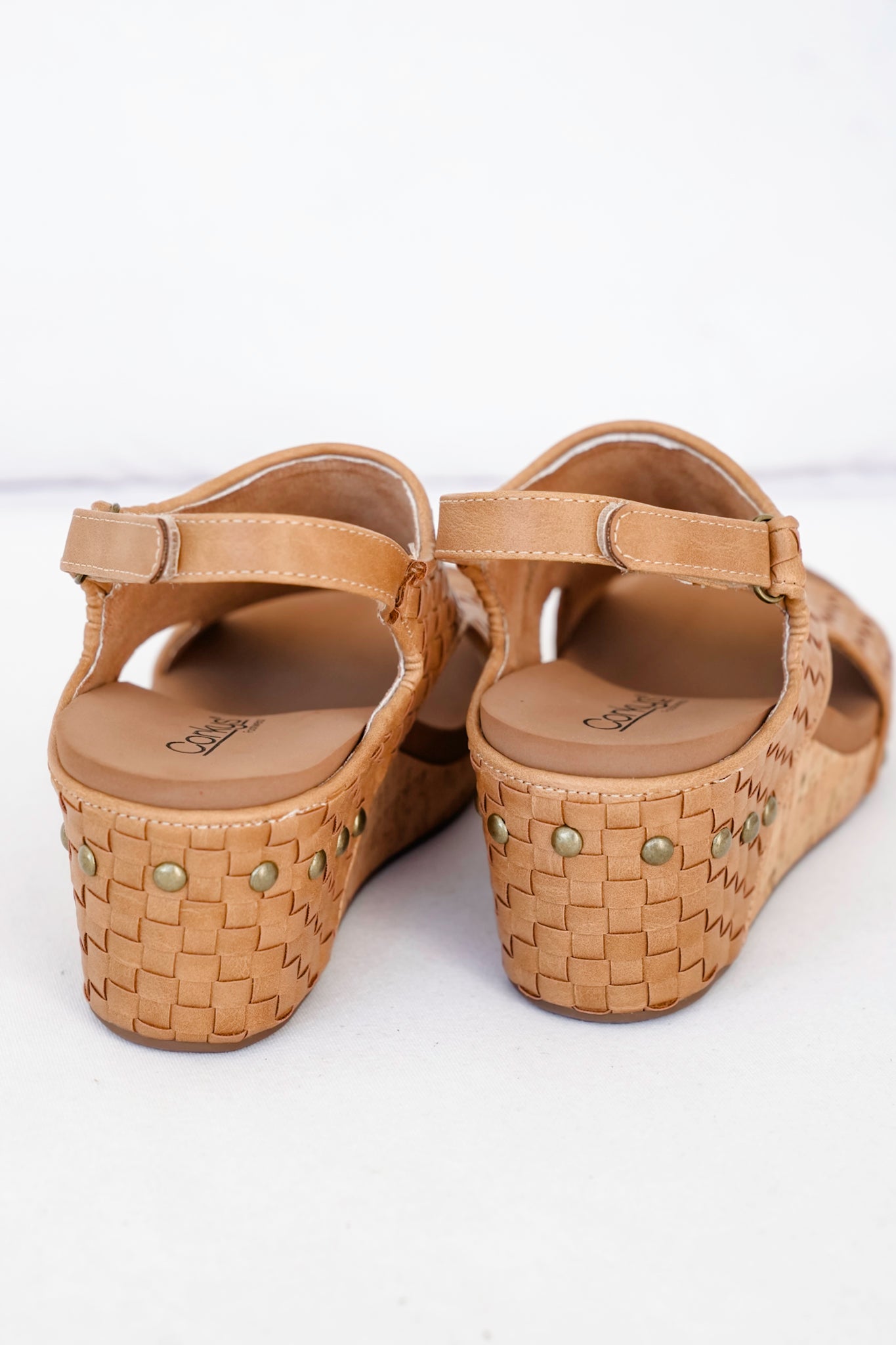 Step into style and comfort with the Corky’s “Carley” woven wedge. The textured woven design brings an elevated, breezy vibe while the cork heel and stud accents add just the right amount of detail.