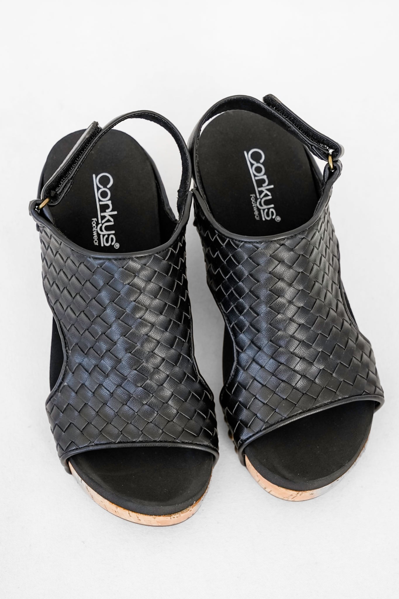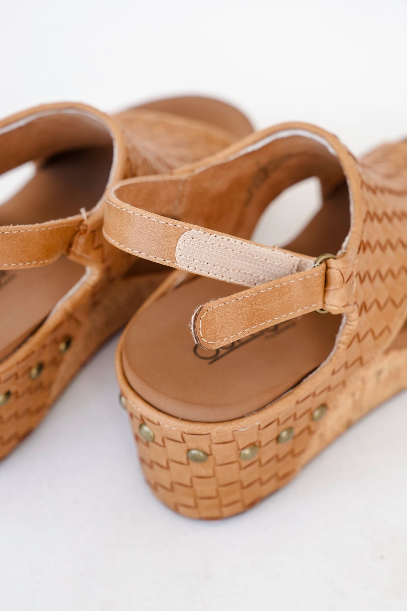 Corky's "Carley" Woven Platform Wedge Sandal with Cork Heel and Studded Detail