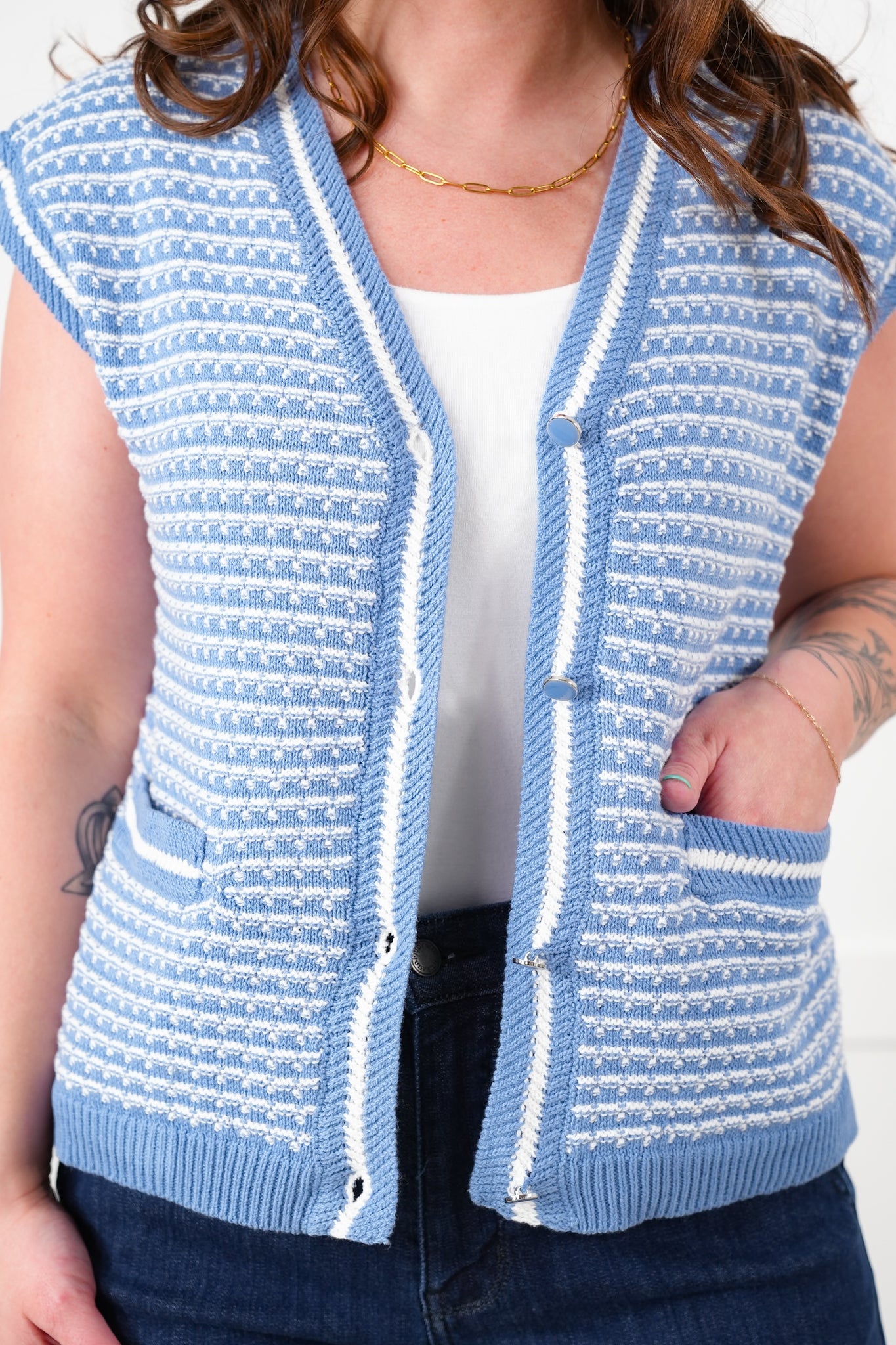Add some charm to your wardrobe with this crochet button-down vest! The textured knit and oversized fit bring a relaxed vibe that makes it perfect for layering over your favorite tops. Whether you're rocking it with jeans, a skirt, or a casual dress, it brings a little extra warmth and a whole lot of style. Plus, those front pockets? Super functional and just the right size to stash your essentials!