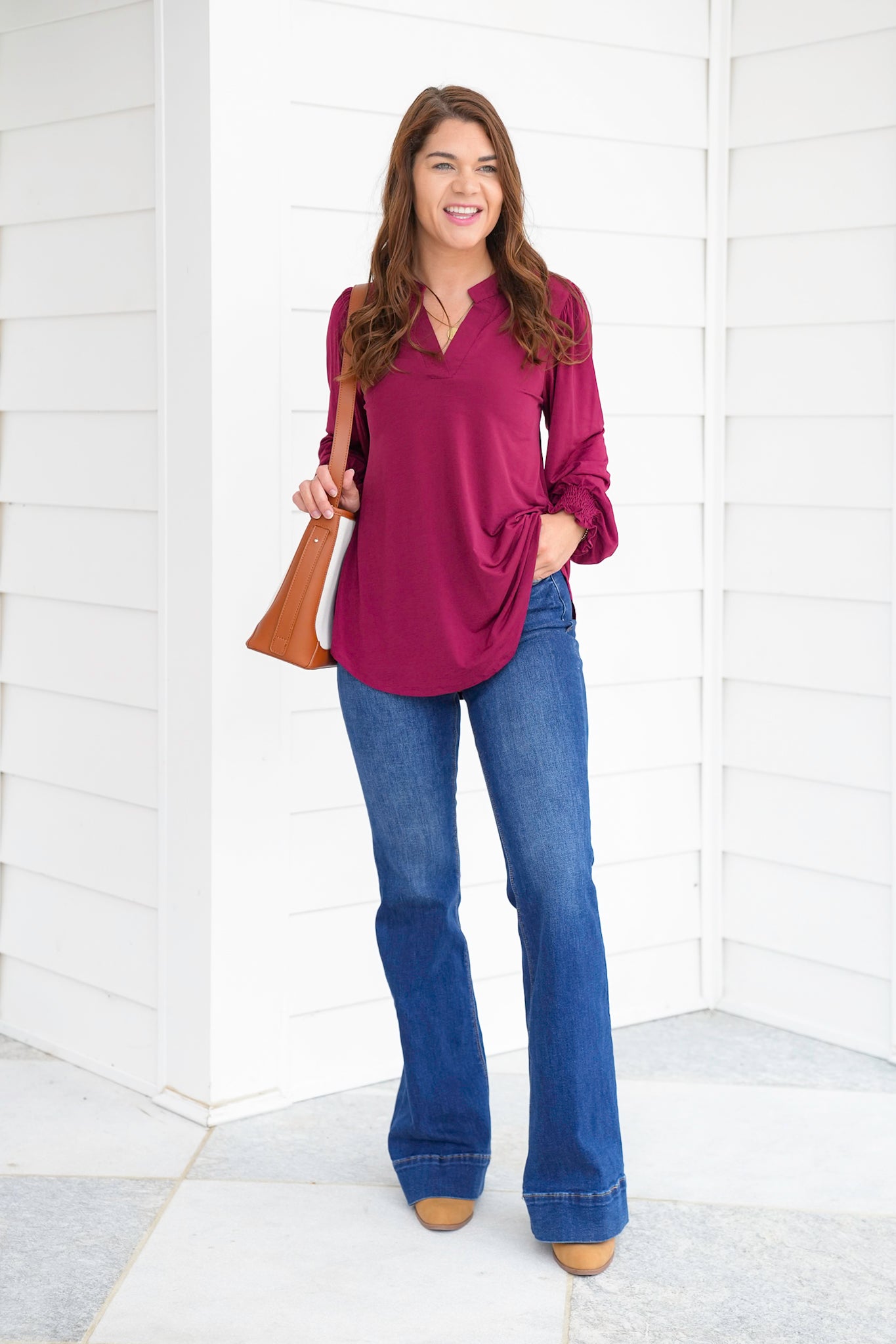 This tunic is a total wardrobe hero at a Door Buster price. The wrinkle-free fabric means it’s ready to wear anytime, anywhere—perfect for workdays, travel, or casual weekends. Style with denim for everyday chic or dress it up with trousers and heels.