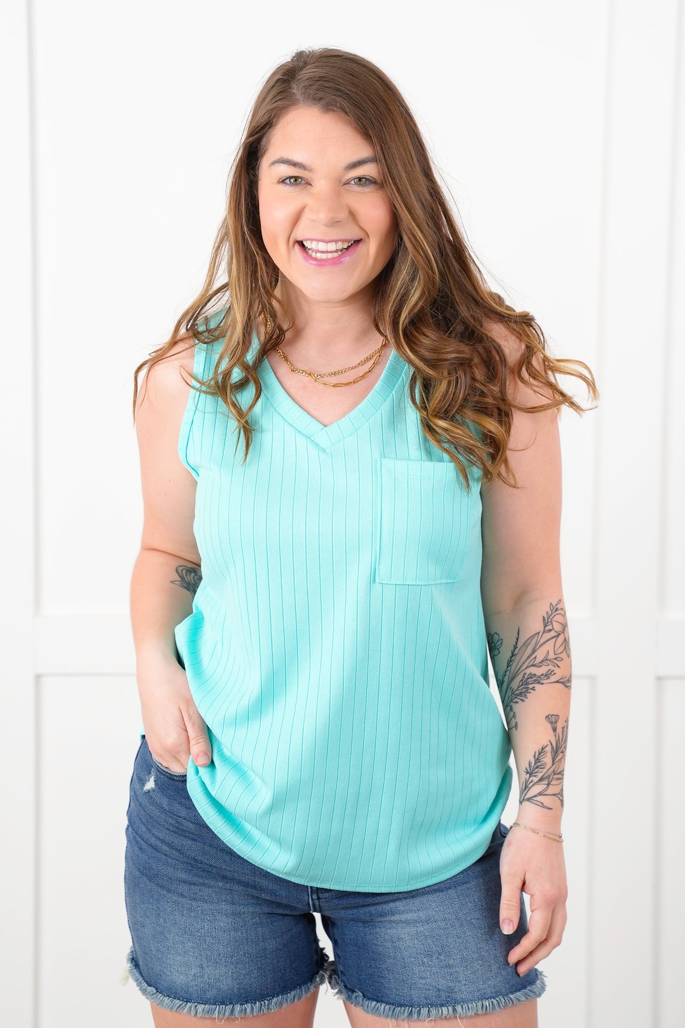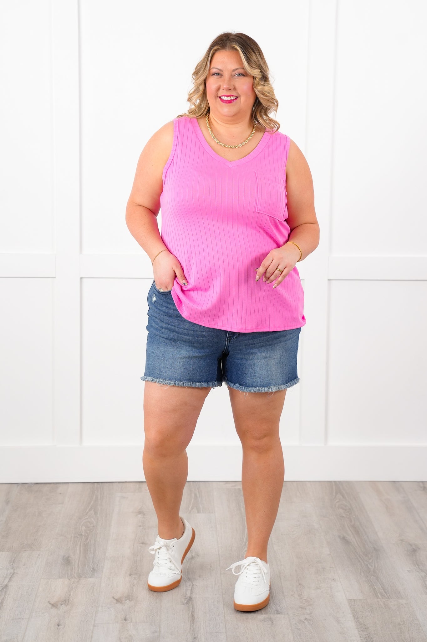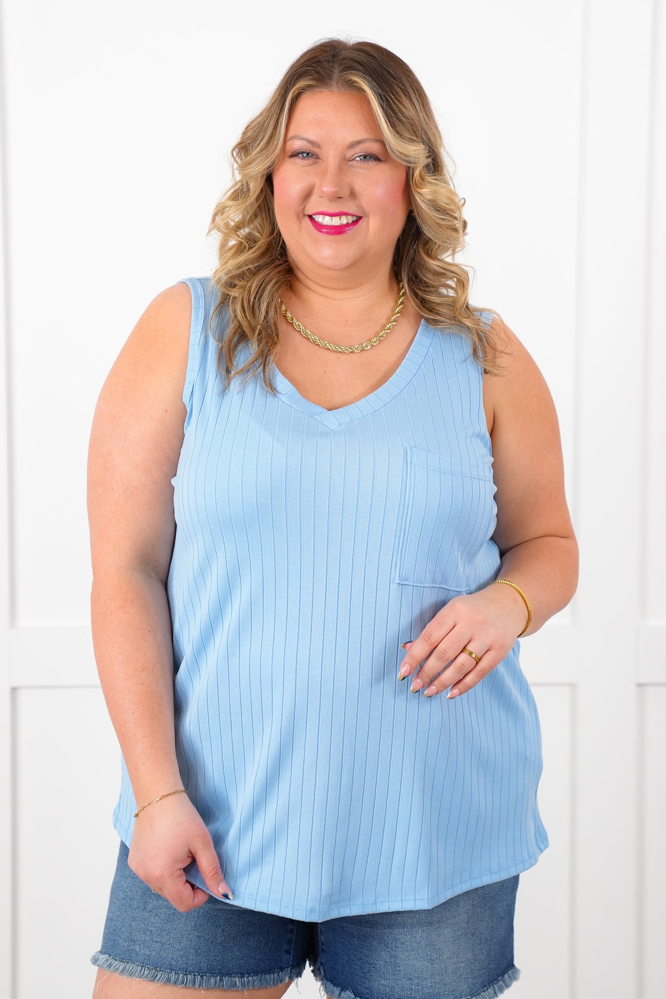 Door Buster! Plus/Reg Wide Ribbed V Neck Tank Top