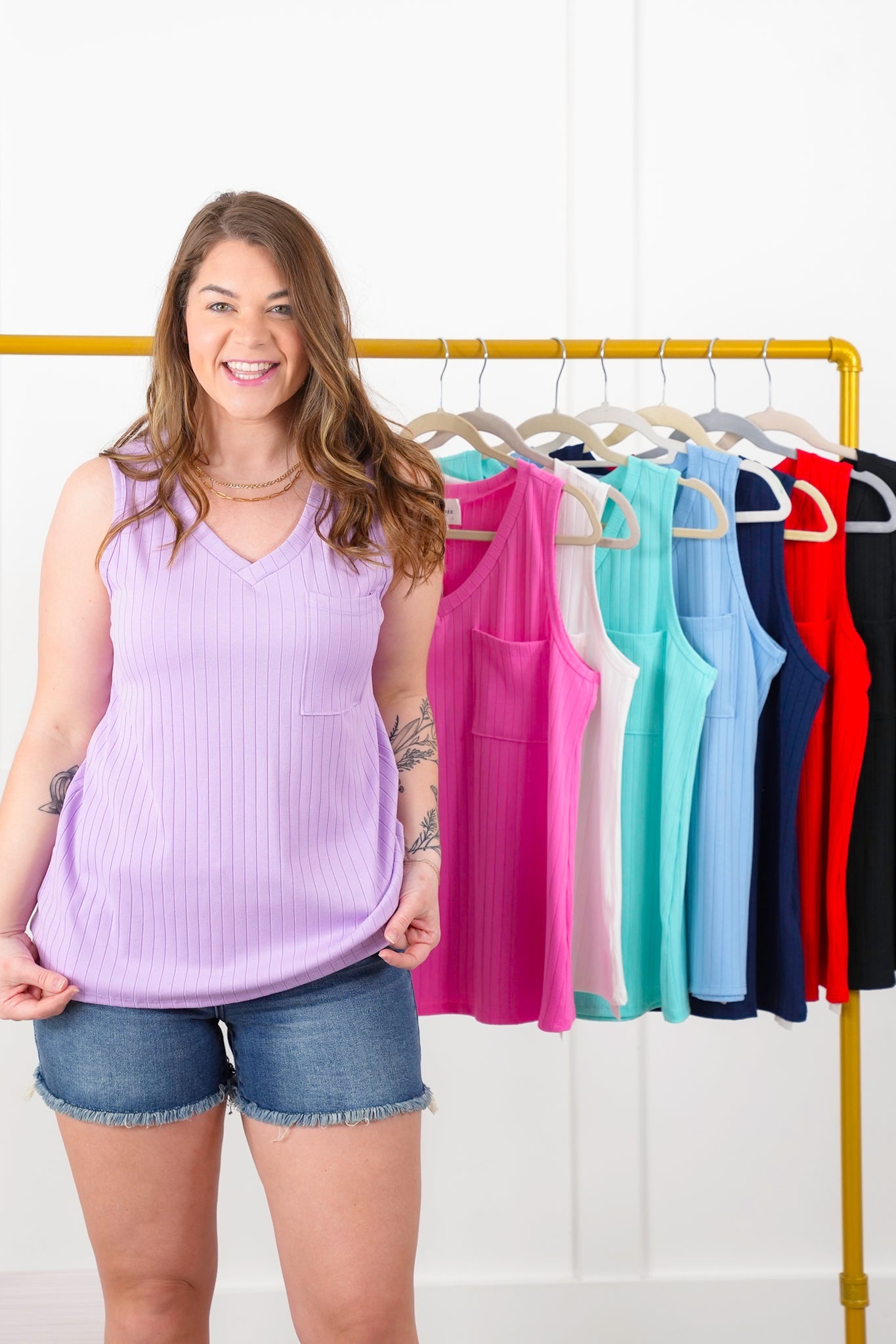 Grab this Door Buster deal while you can! This wide-ribbed tank top has it all - comfy, classic, and available in all your favorite colors. Pair it with casual jeans for a laid-back look or dress it up with a cardigan and statement accessories for a chic twist. The variety of colors will keep your wardrobe fresh and fun all season.