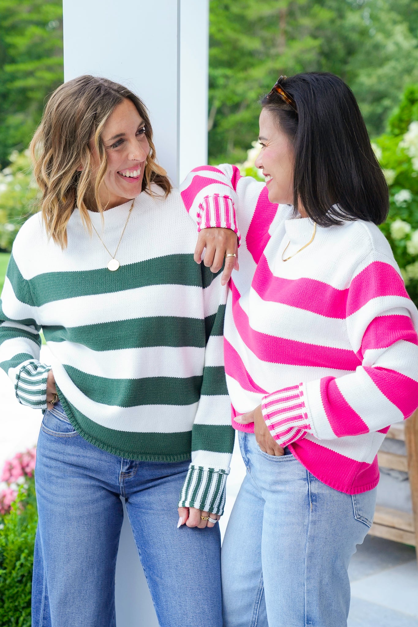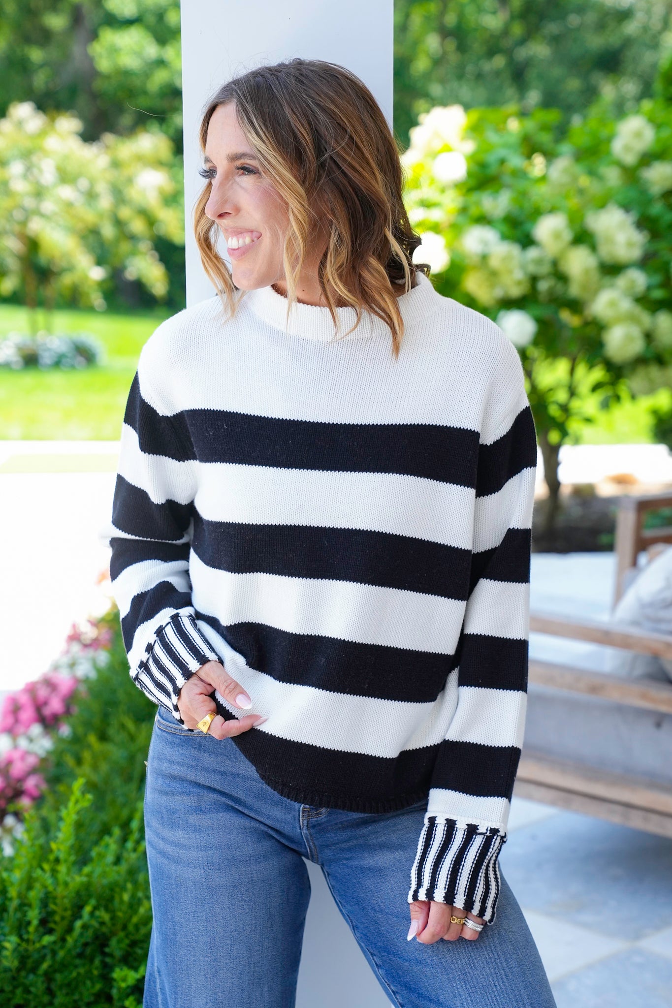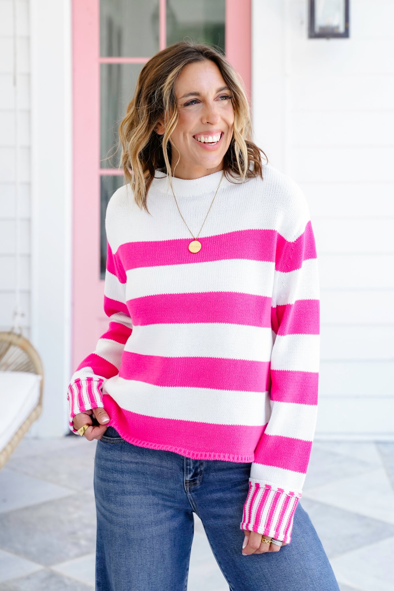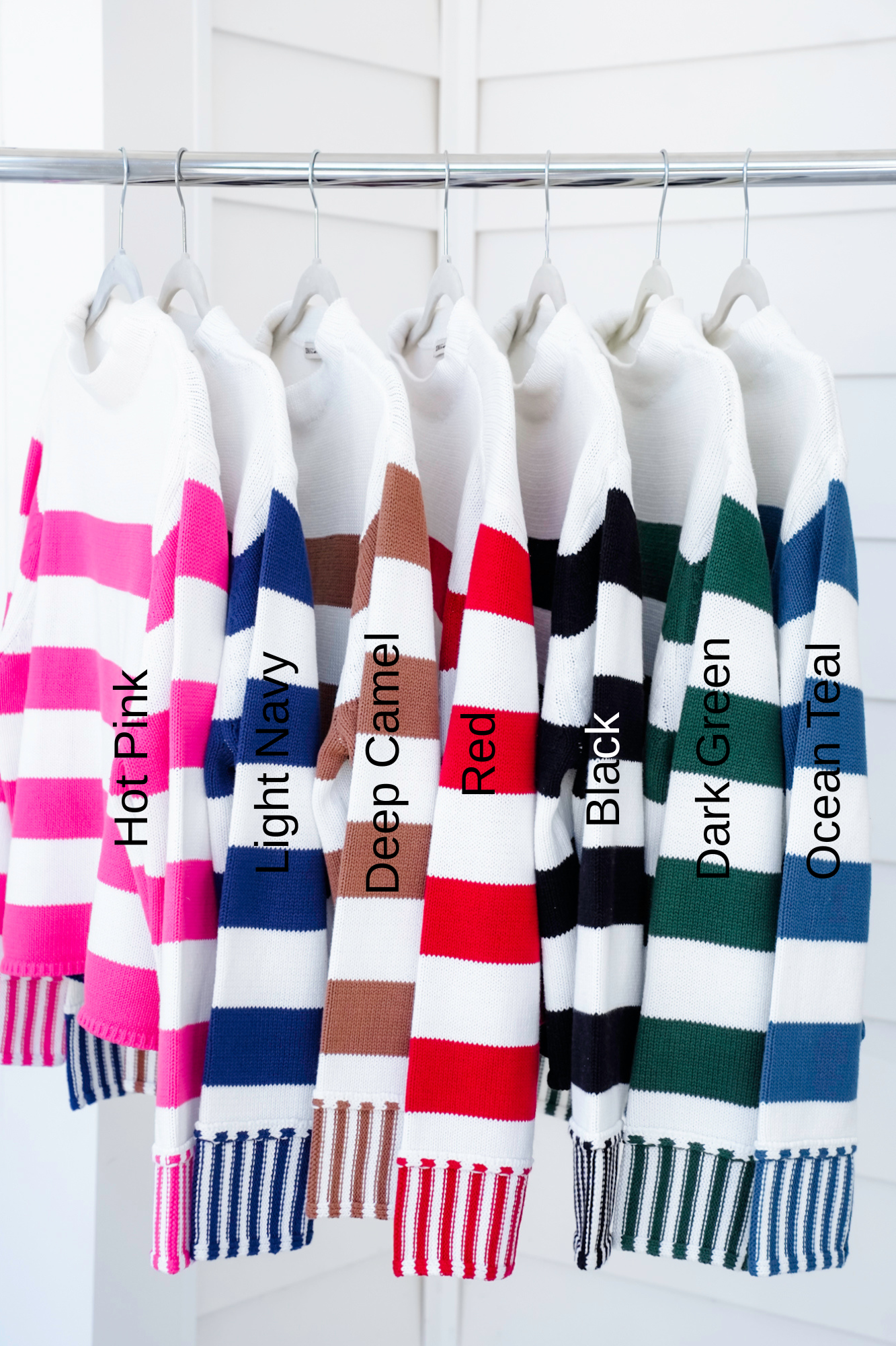 Get ready, this Door Buster is a total score! The Zenana Striped Sweater delivers classic prep with a playful twist. Bold, wide stripes and a soft, cozy knit make this a must-have for cool-weather layering. Whether you're reaching for fall neutrals or bold pops of color, this piece brings personality and polish to every outfit. Style it with denim, faux leather leggings, or over a collared shirt for an easy-chic game day or weekend look.