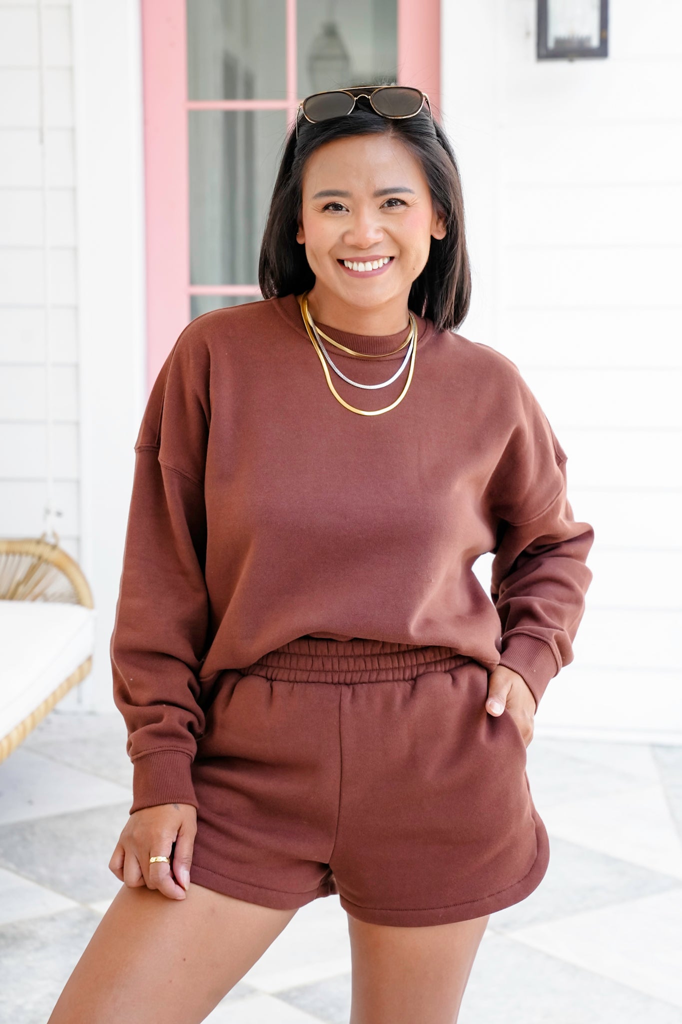 Door Buster! Zenana Fleece Long Sleeve Sweatshirt & Shorts Set