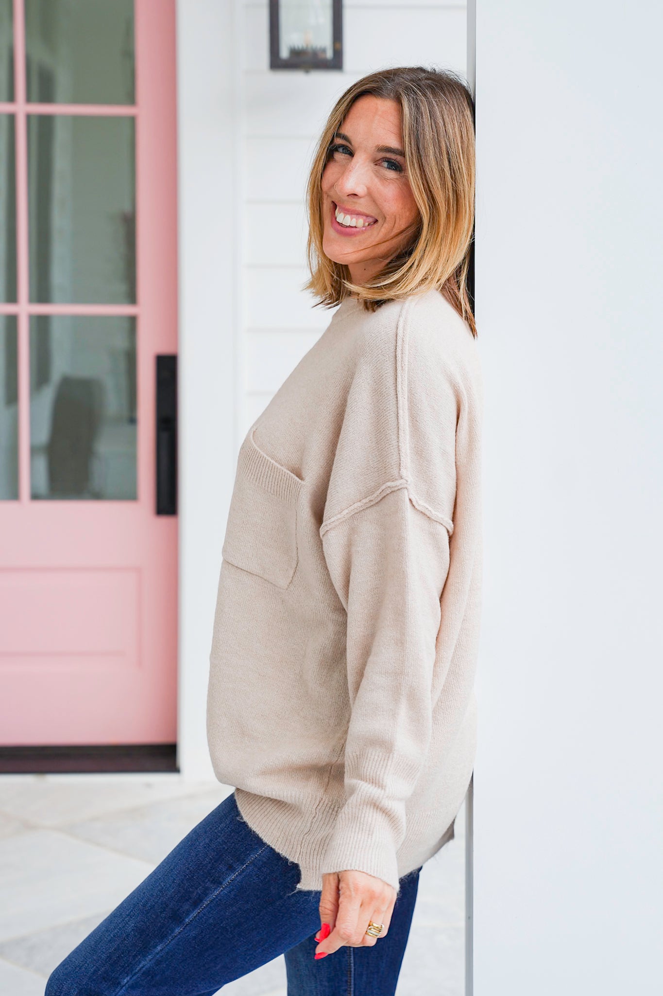 * Front pocket detail adds a cozy, casual finish