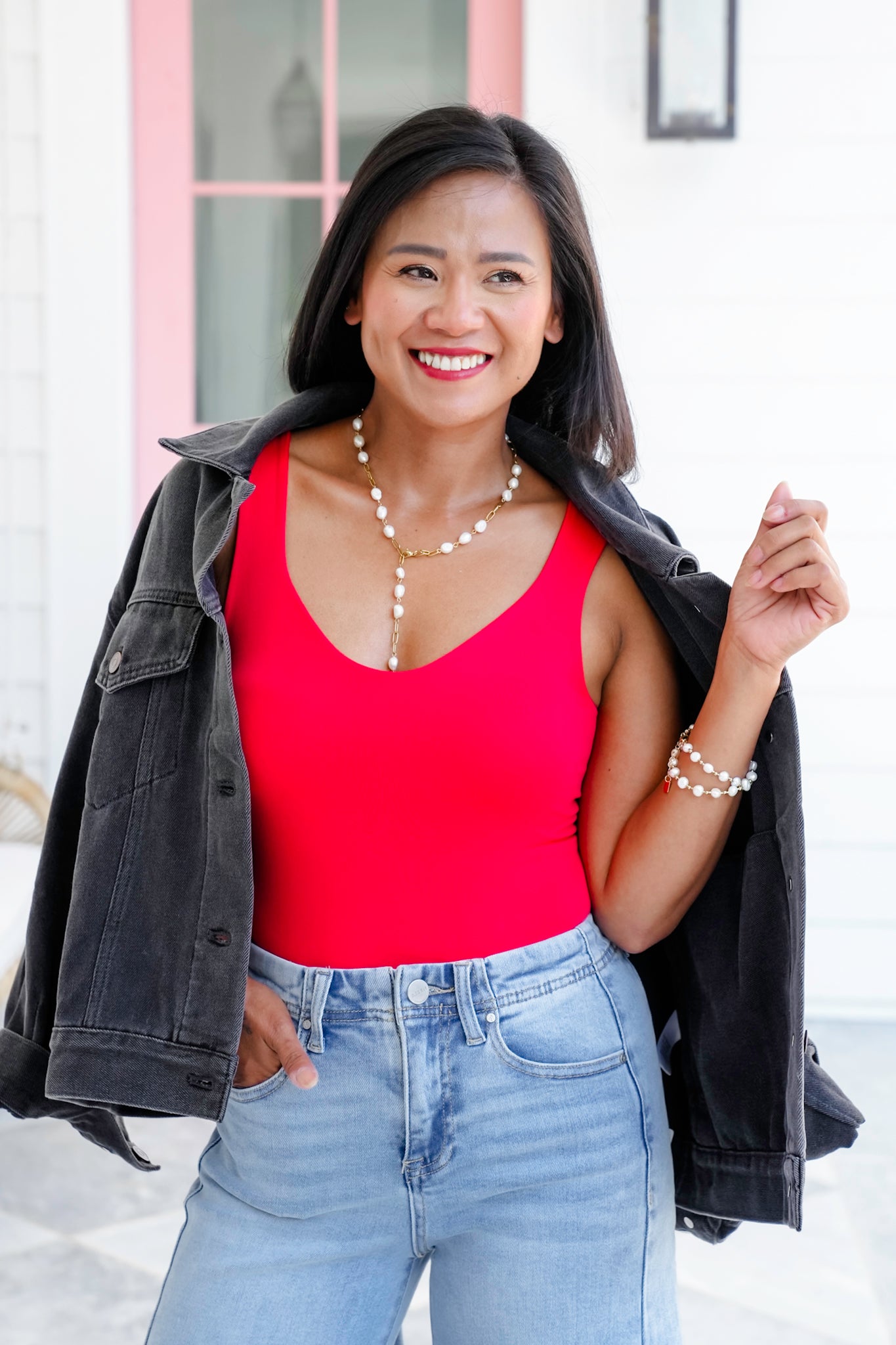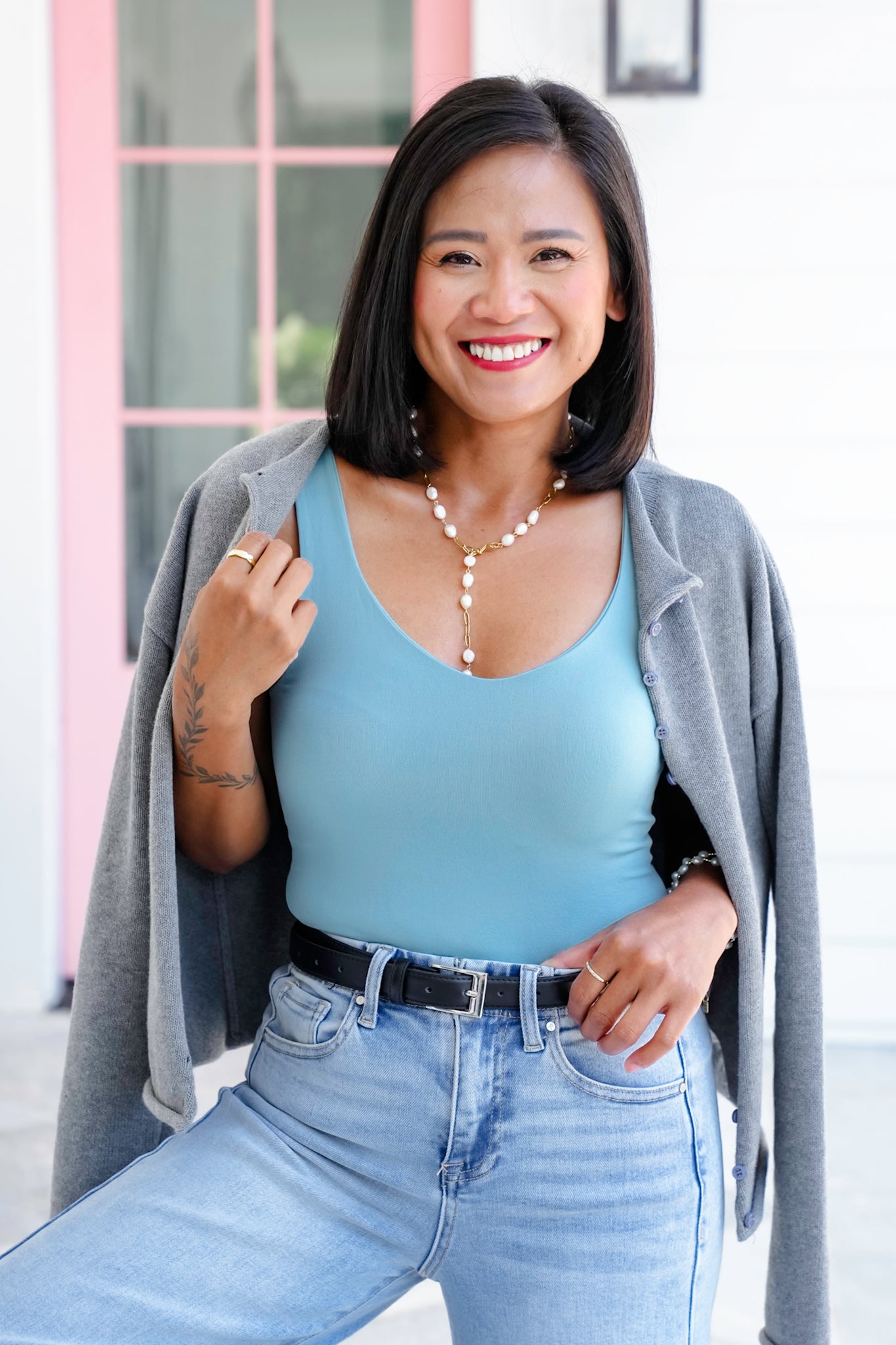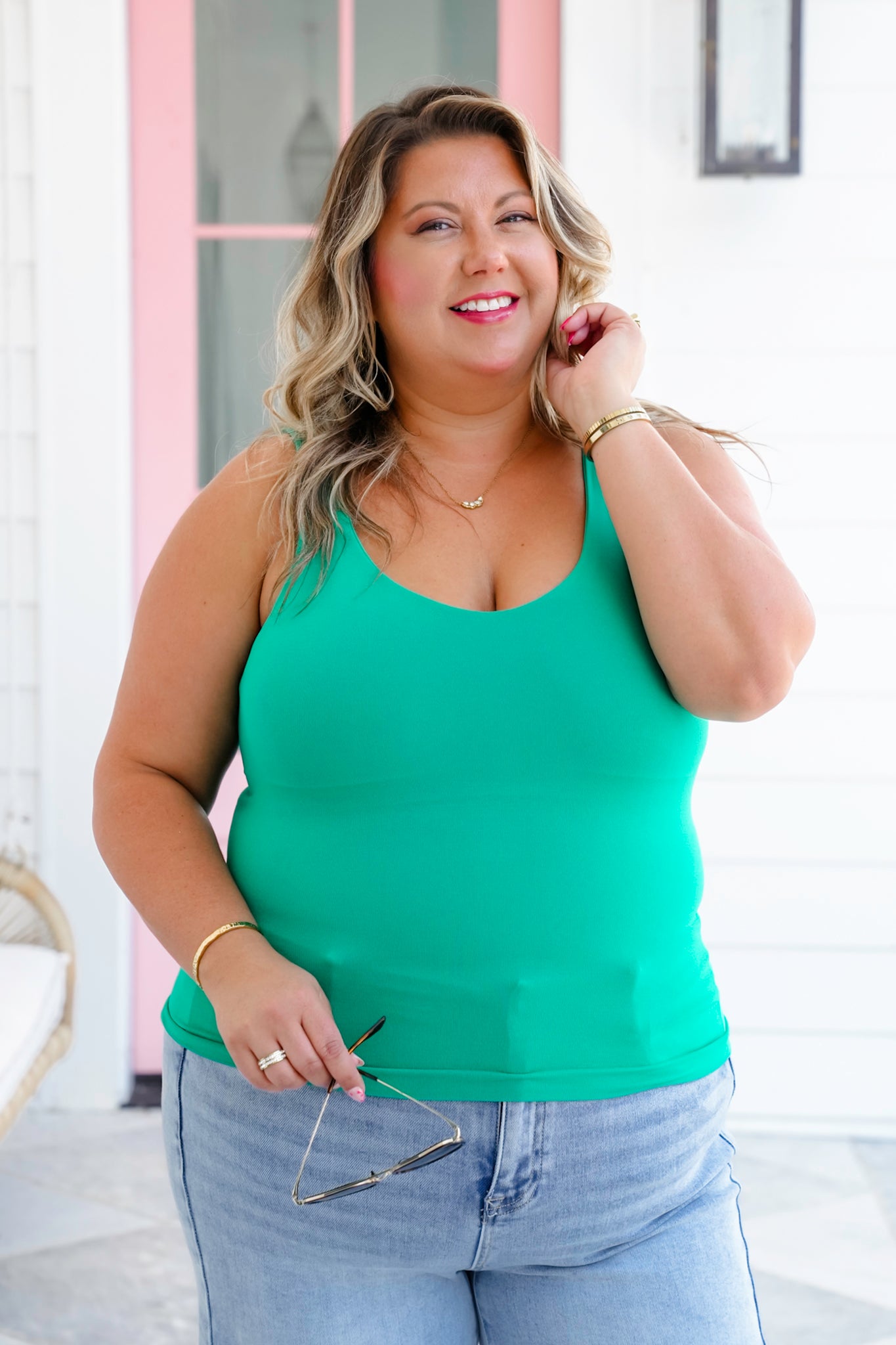 This is the tank you’ll want in every color! With a seamless, double-ply design and built-in shelf bra, it smooths, supports, and stretches in all the right places. The soft, second-skin feel makes it perfect for layering under cardigans, jackets, or button-ups, but it’s equally cute worn solo with denim or joggers. From casual errands to yoga class, it’s a grab-and-go essential you’ll keep reaching for.
