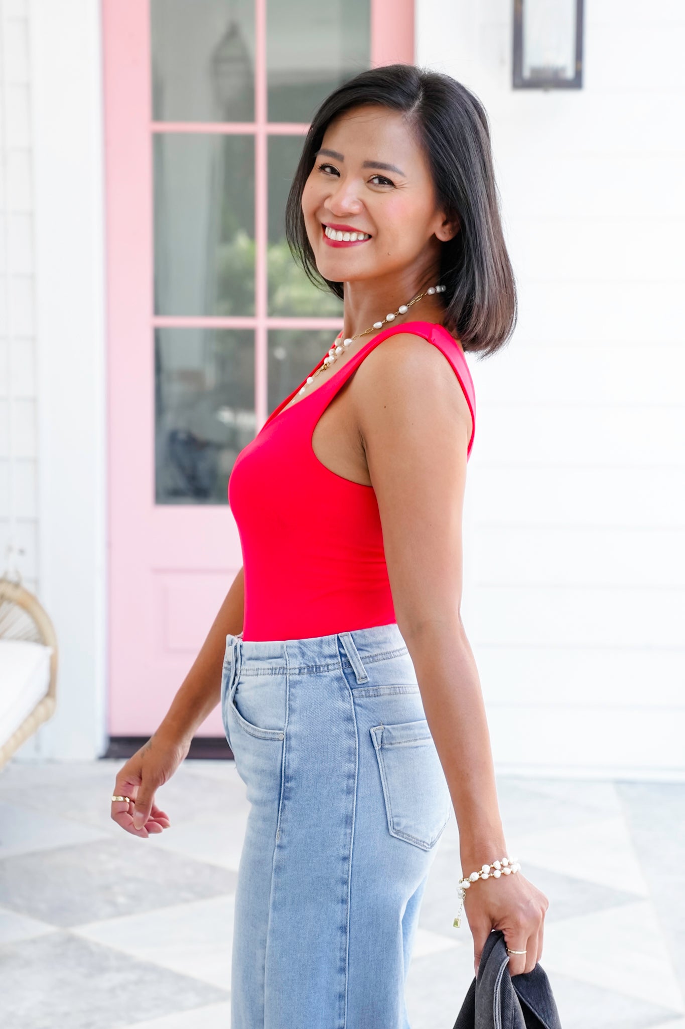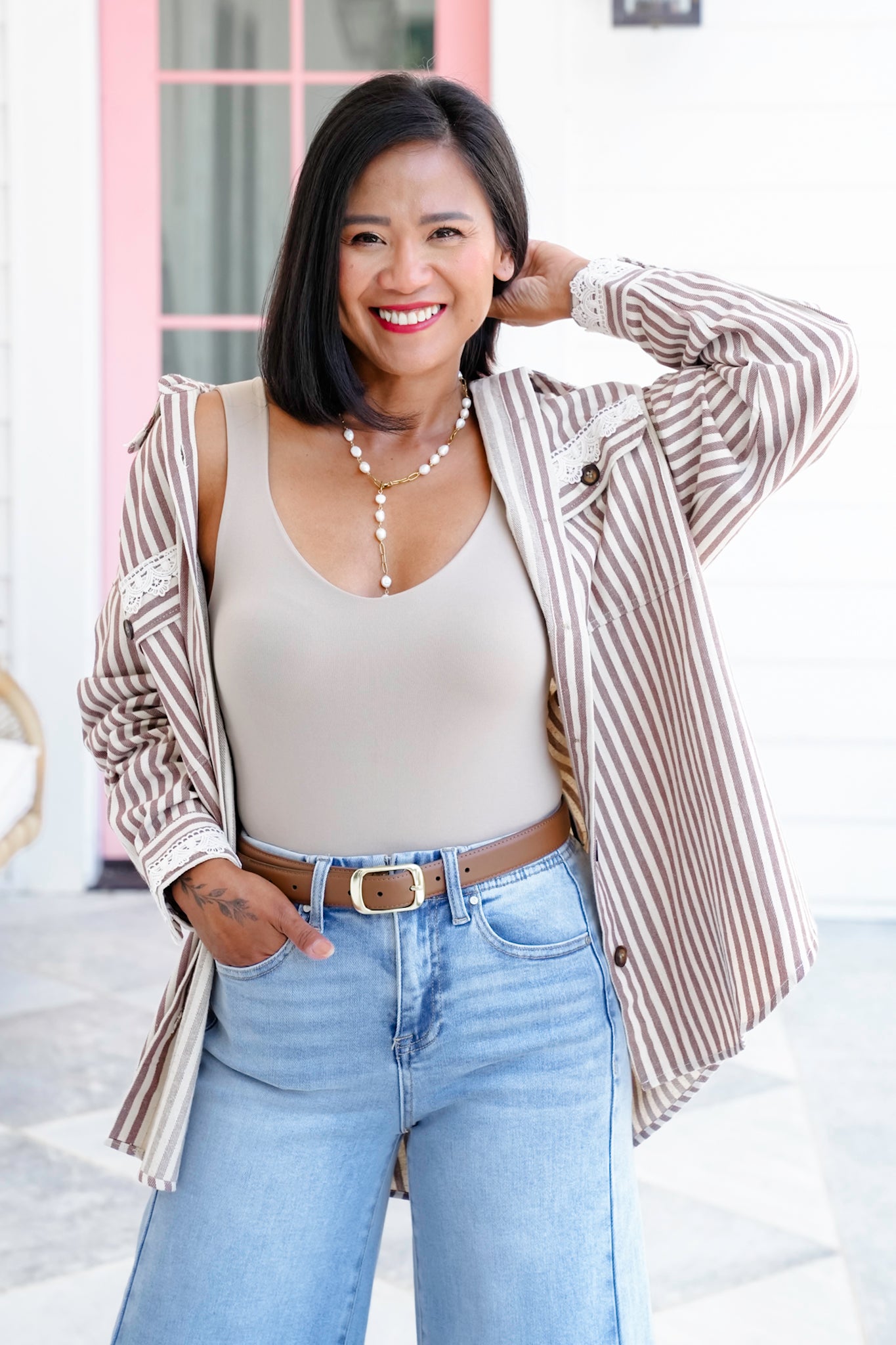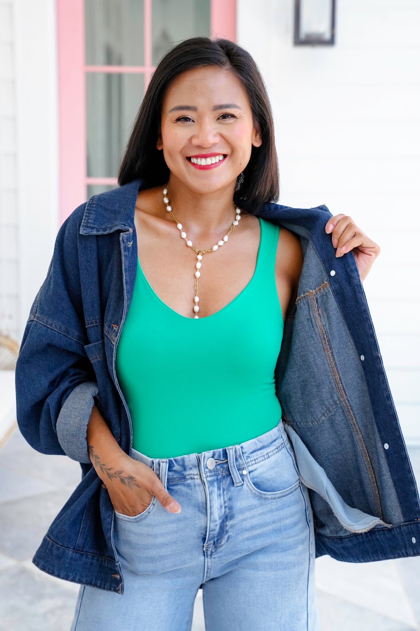 This is the tank you’ll want in every color! With a seamless, double-ply design and built-in shelf bra, it smooths, supports, and stretches in all the right places. The soft, second-skin feel makes it perfect for layering under cardigans, jackets, or button-ups, but it’s equally cute worn solo with denim or joggers. From casual errands to yoga class, it’s a grab-and-go essential you’ll keep reaching for.