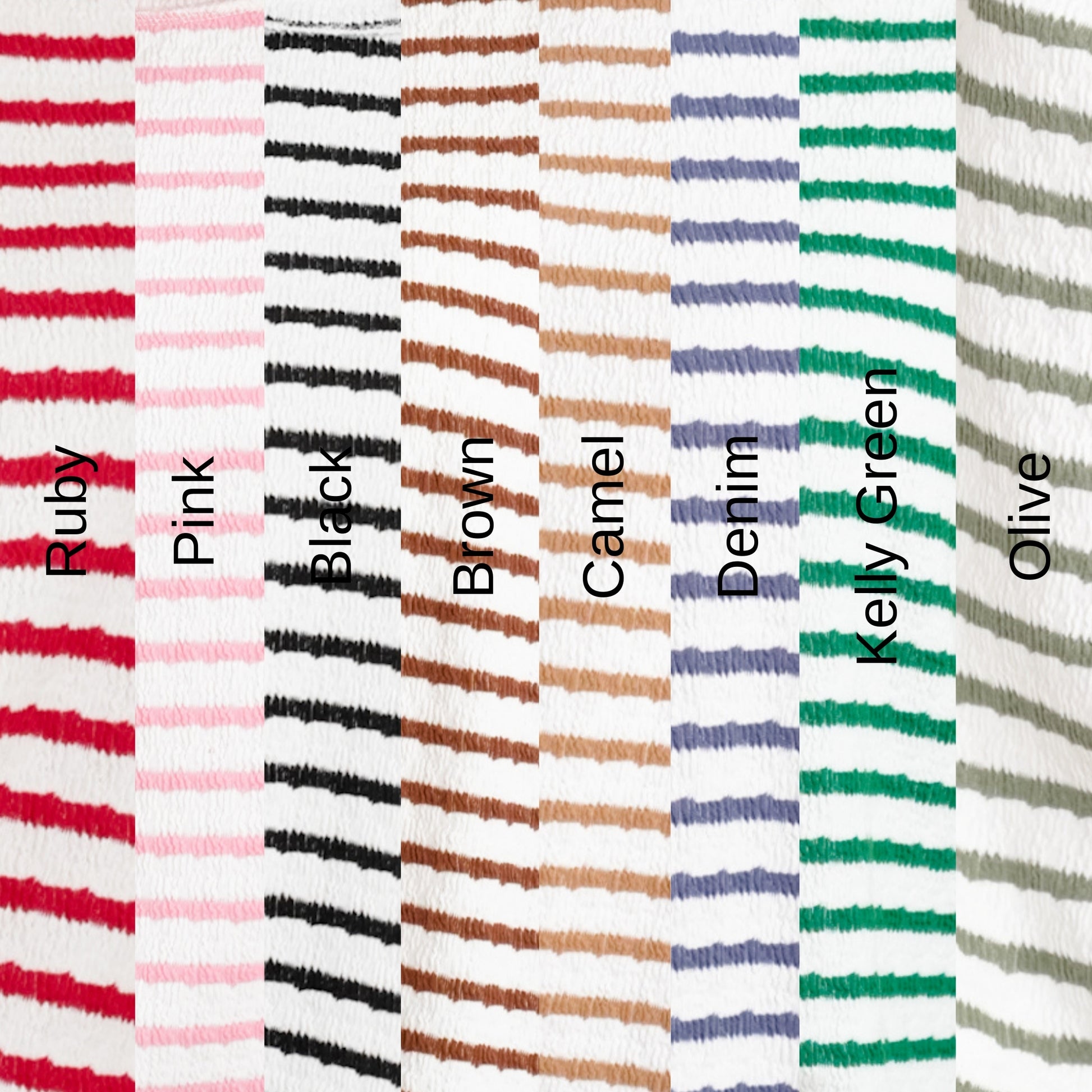 This top is one of those easy wins that makes outfits feel done in seconds. The soft, stretchy fabric keeps it comfortable from start to finish, and the striped design paired with the split neckline adds just the right amount of structure. It styles effortlessly with denim, wide leg pants, or shorts, and quickly becomes a staple you reach for again and again.
