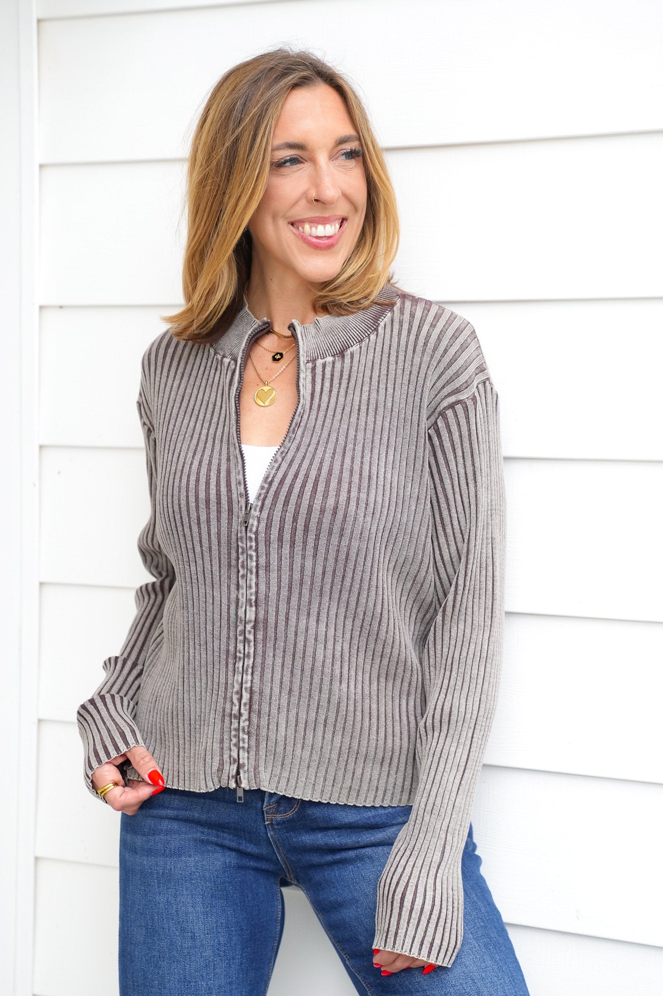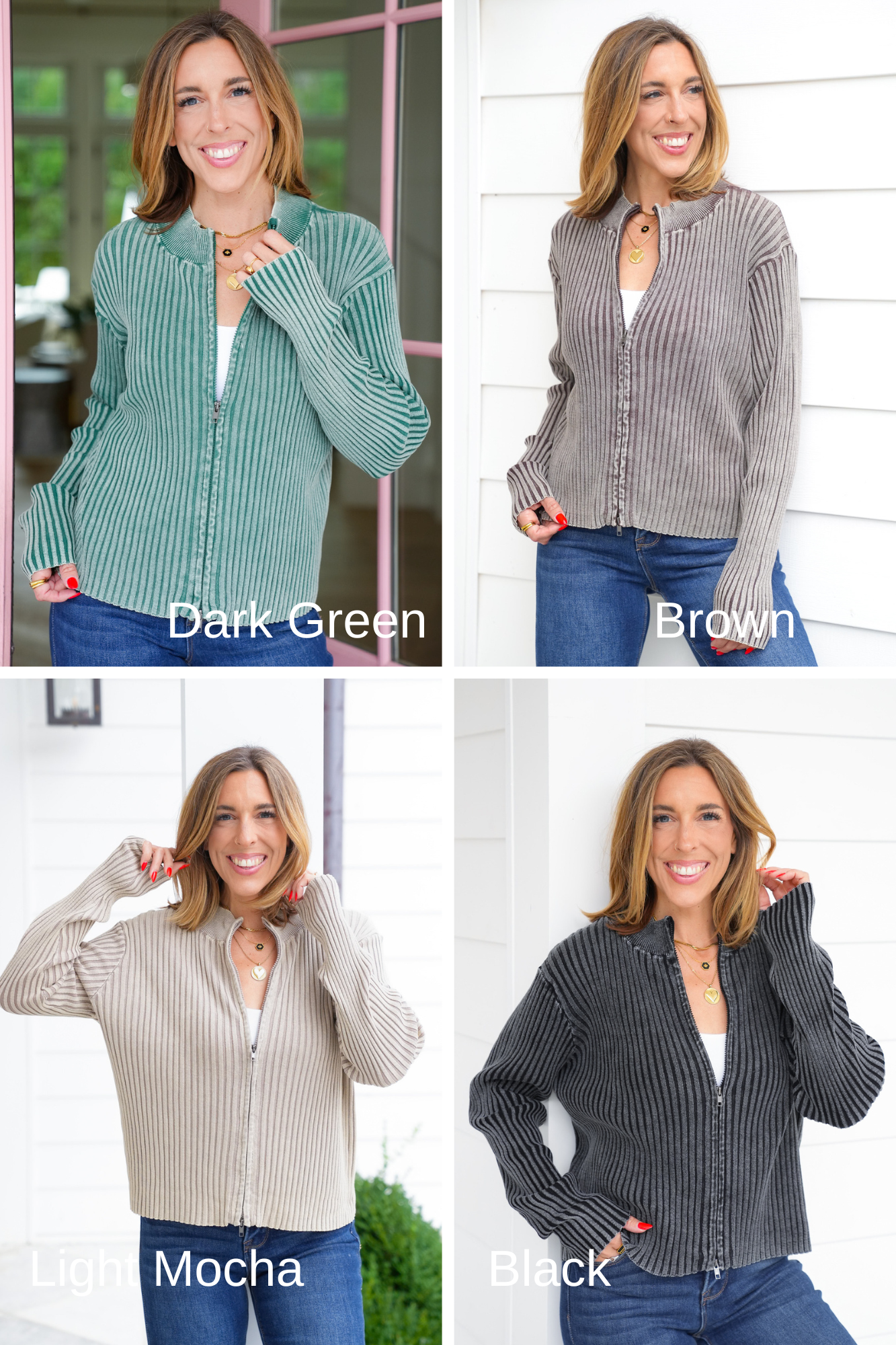 Door Buster! Zenana Two Tone Zip Up Sweater