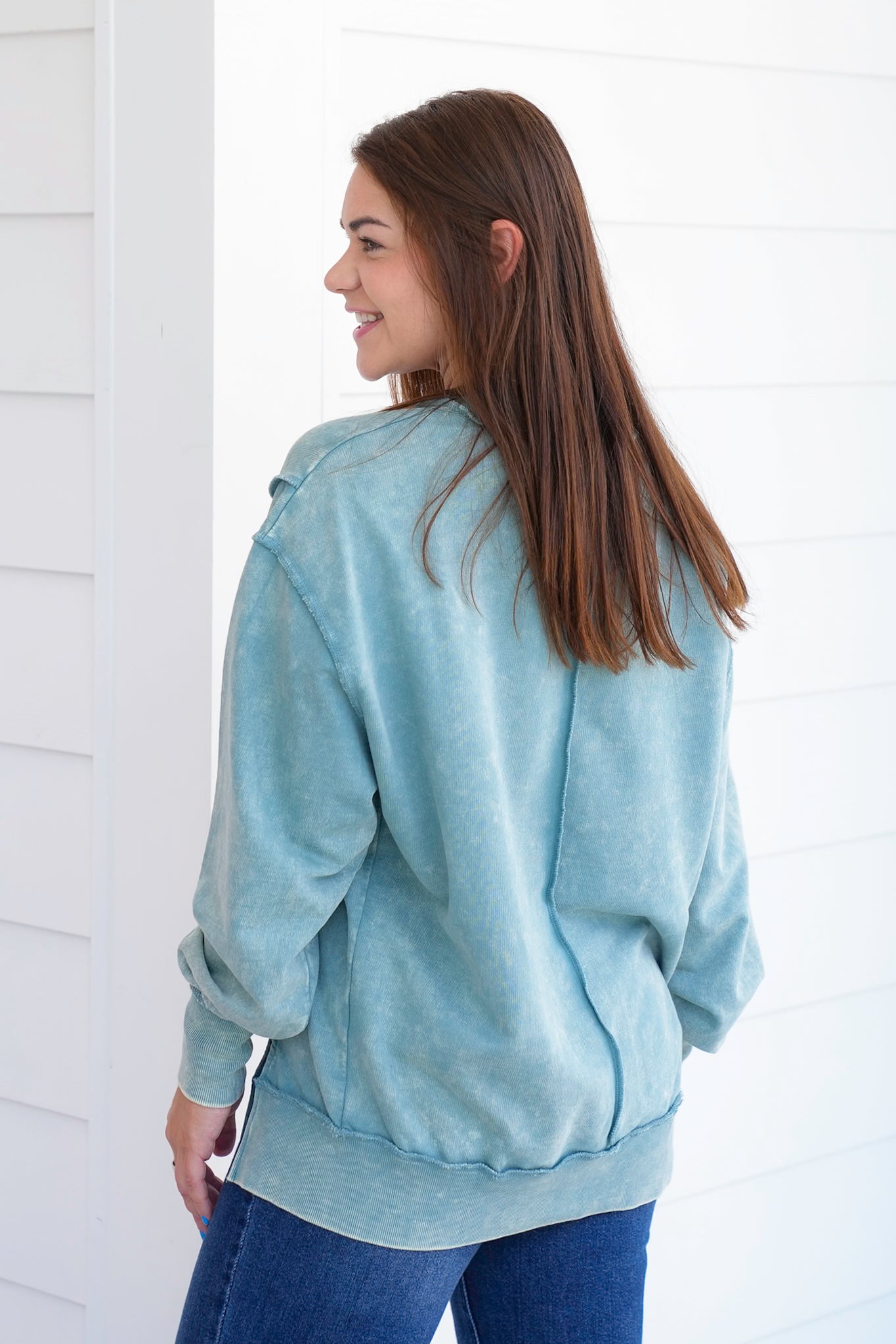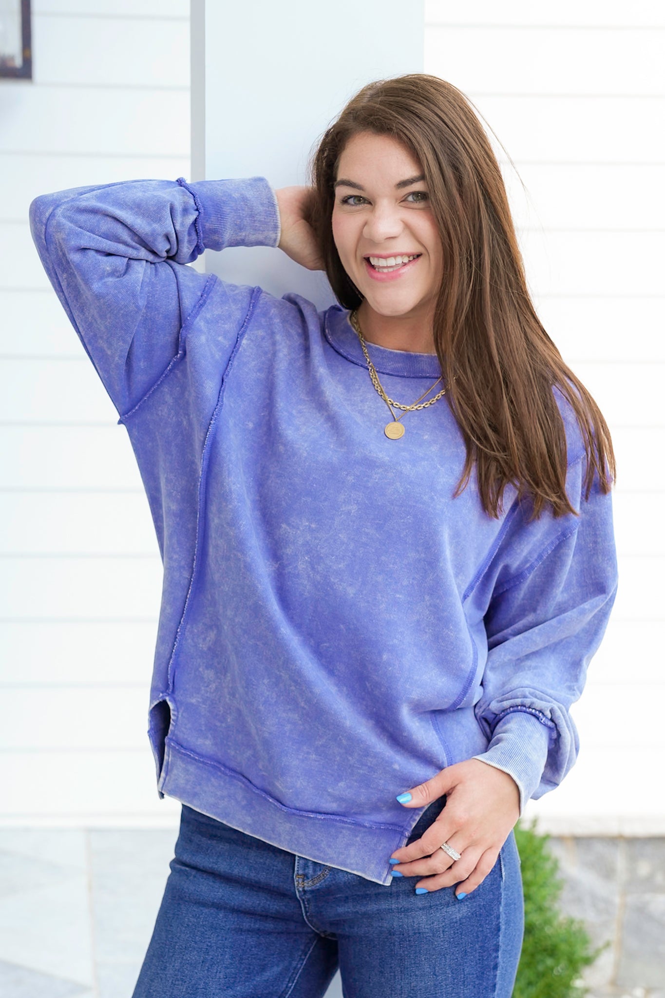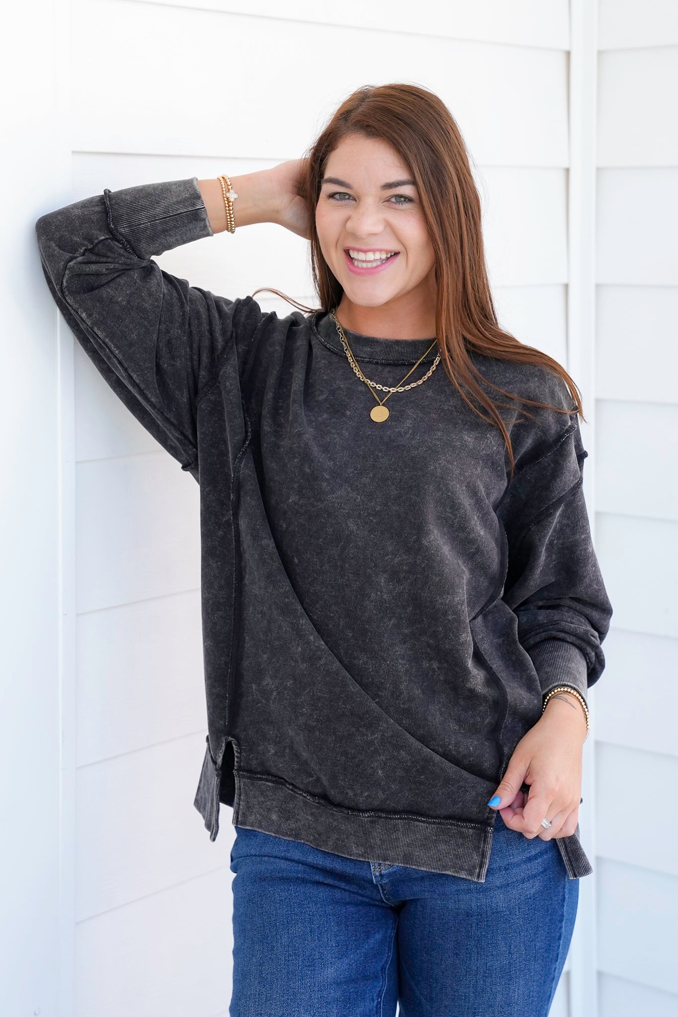 This Door Buster acid wash sweatshirt is your new MVP. With exposed seams and that lived-in vintage look, it's all about laid-back energy. Great with denim, leggings, or biker shorts. Grab one, or three, because this one’s going fast.
