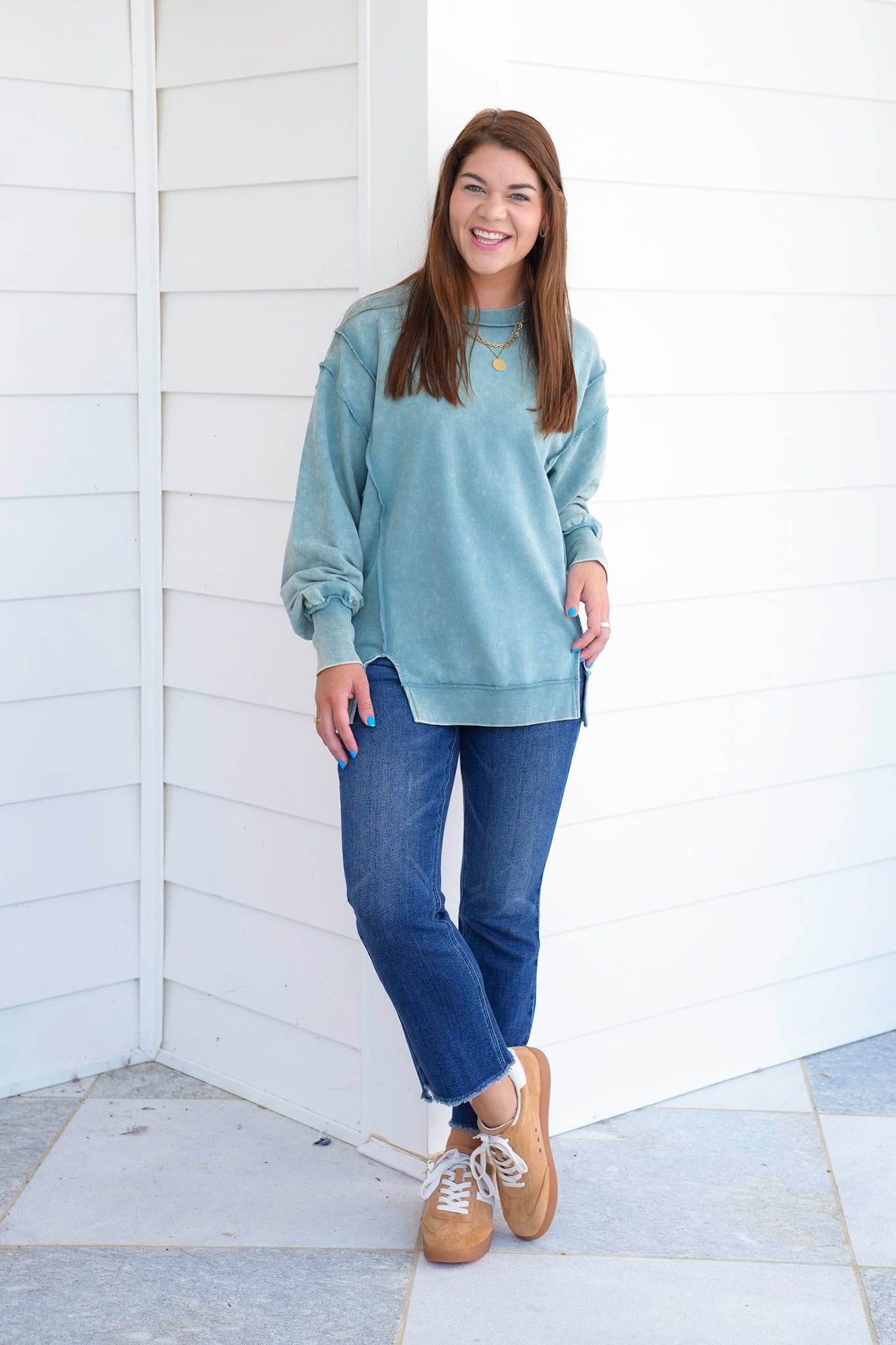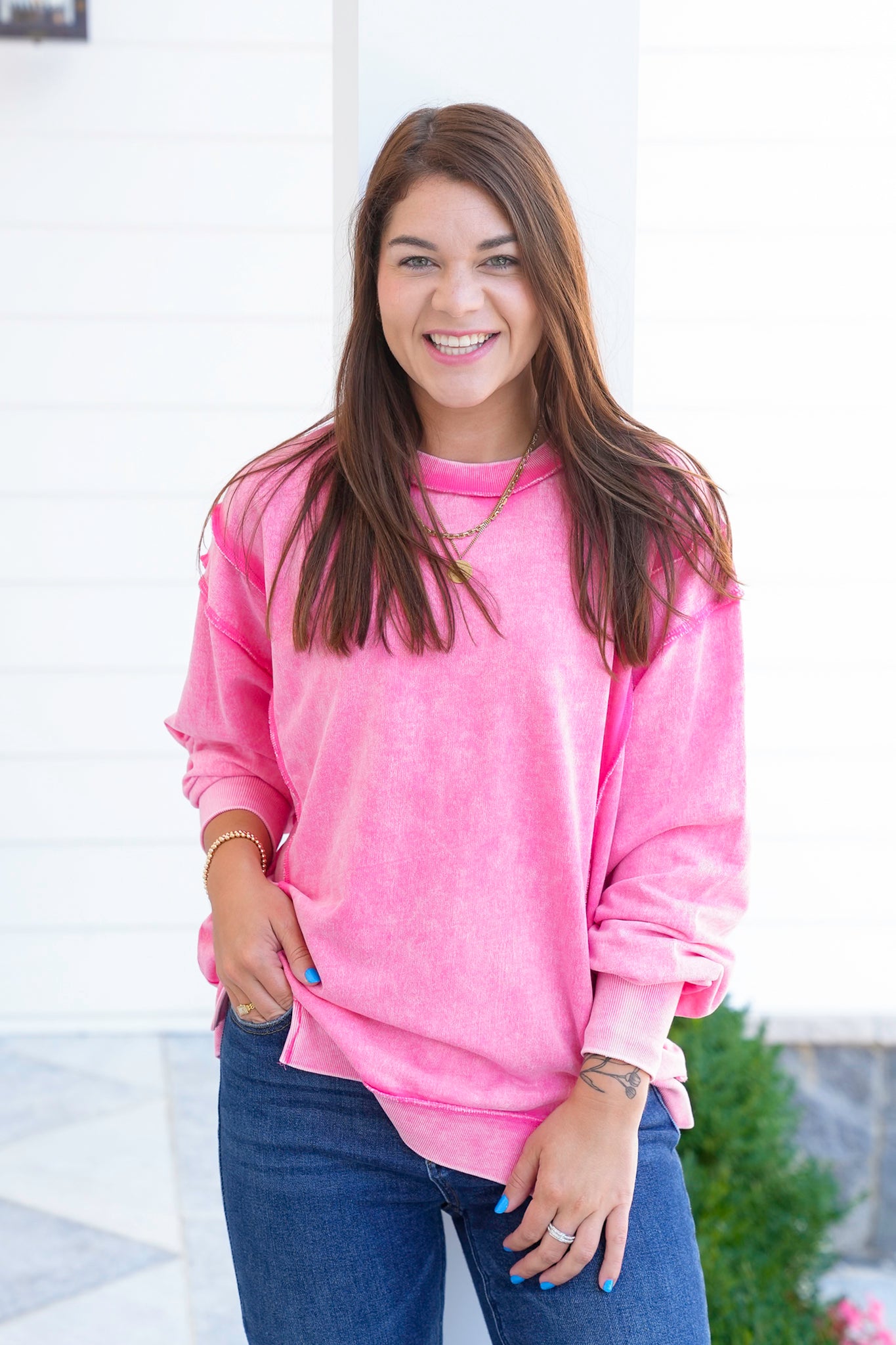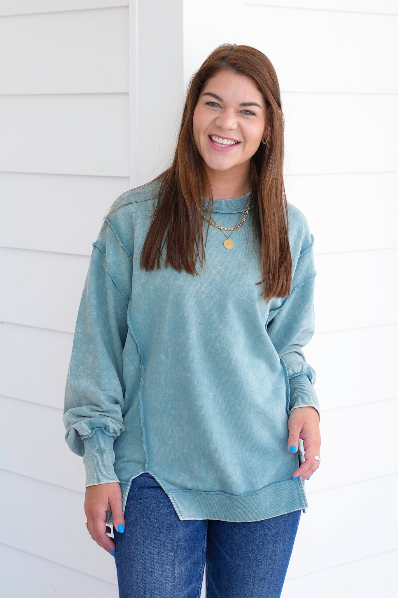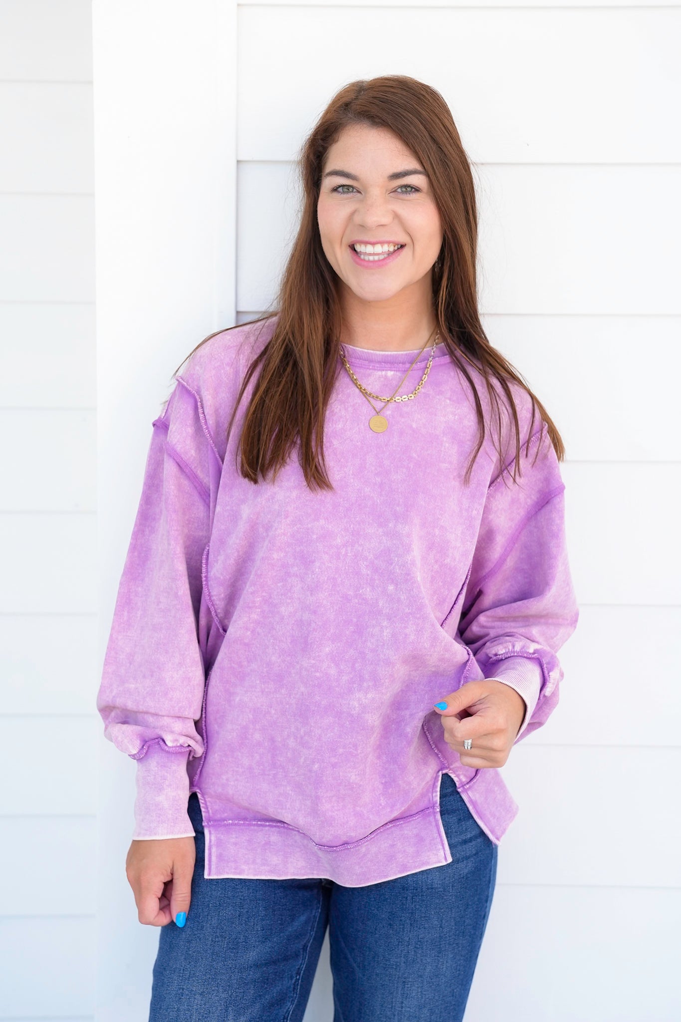 This Door Buster acid wash sweatshirt is your new MVP. With exposed seams and that lived-in vintage look, it's all about laid-back energy. Great with denim, leggings, or biker shorts. Grab one, or three, because this one’s going fast.