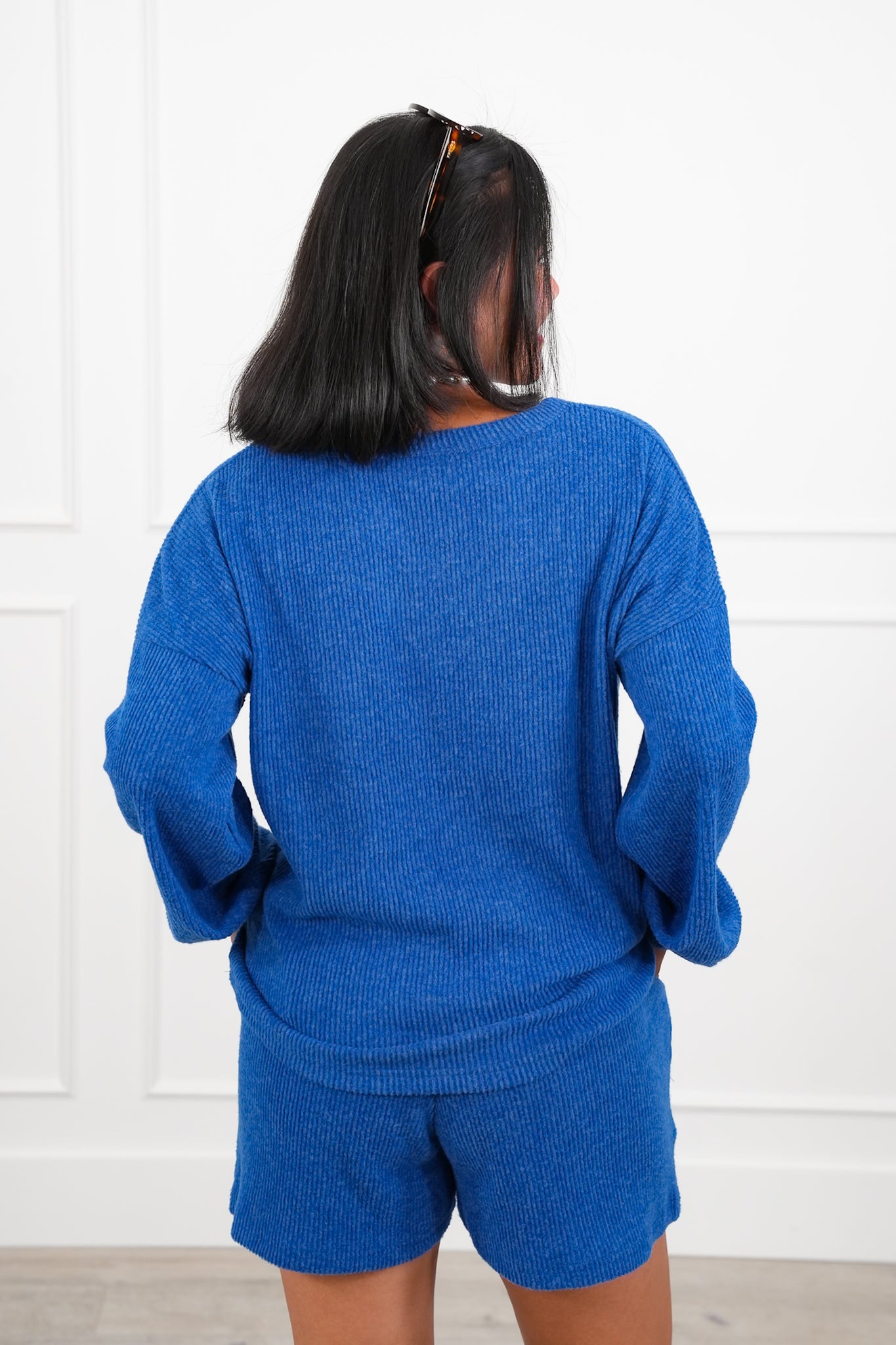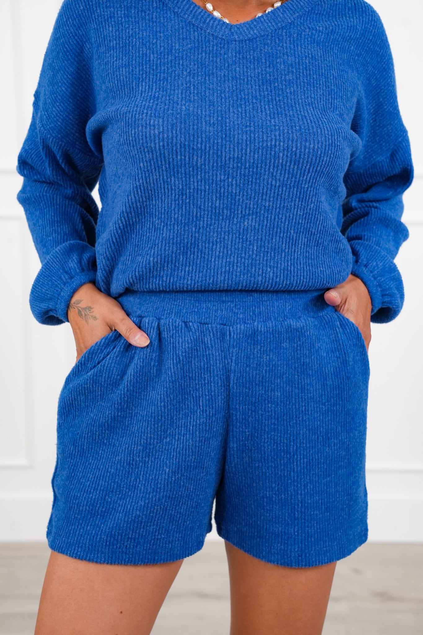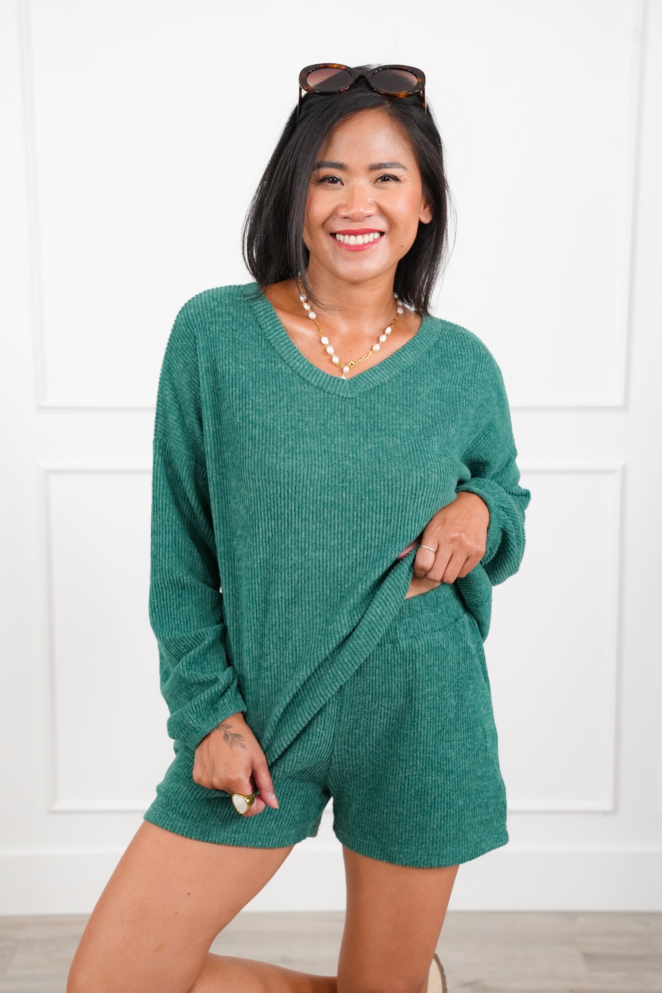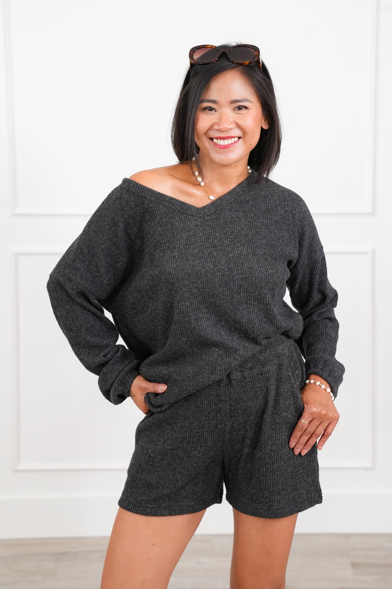 Door Buster! Zenana Brushed Ribbed Hacci V-Neck Long Sleeve Tee and Shorts Set