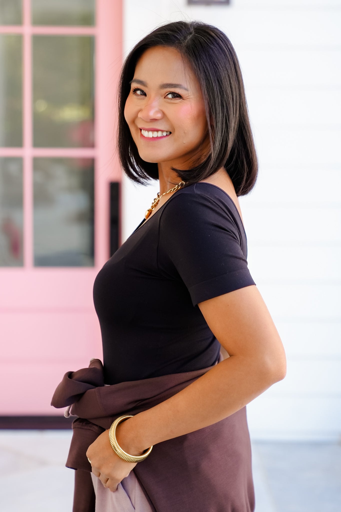 This double neckline top is an everyday essential you’ll reach for nonstop. With buttery stretch and a flattering U/V reversible neckline, it transitions from casual to chic in seconds. Tuck it into jeans, layer under cardigans, or wear it solo — this versatile style is made to move with you.