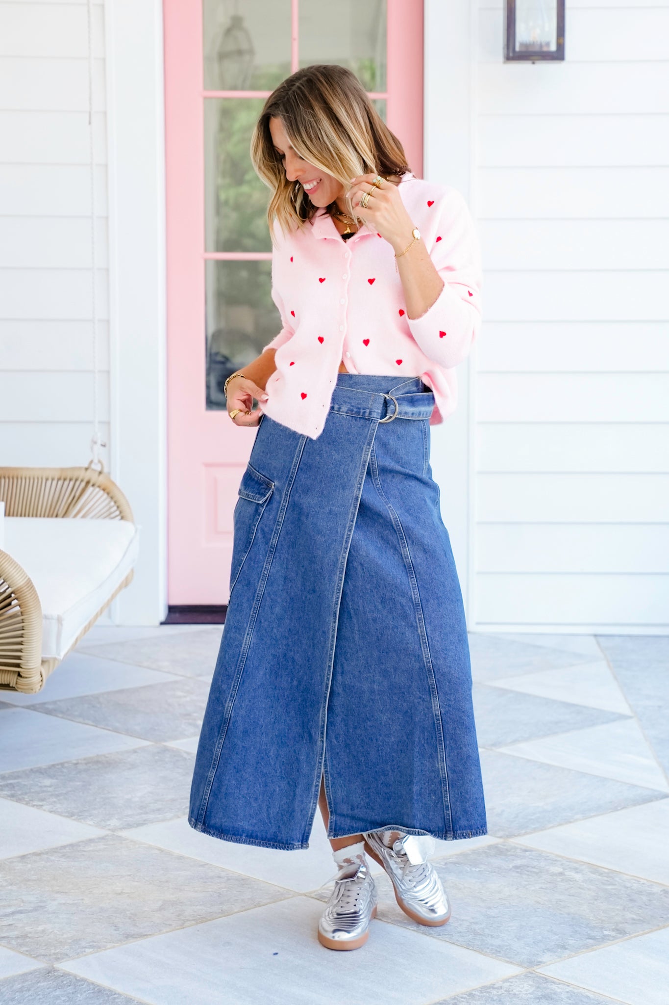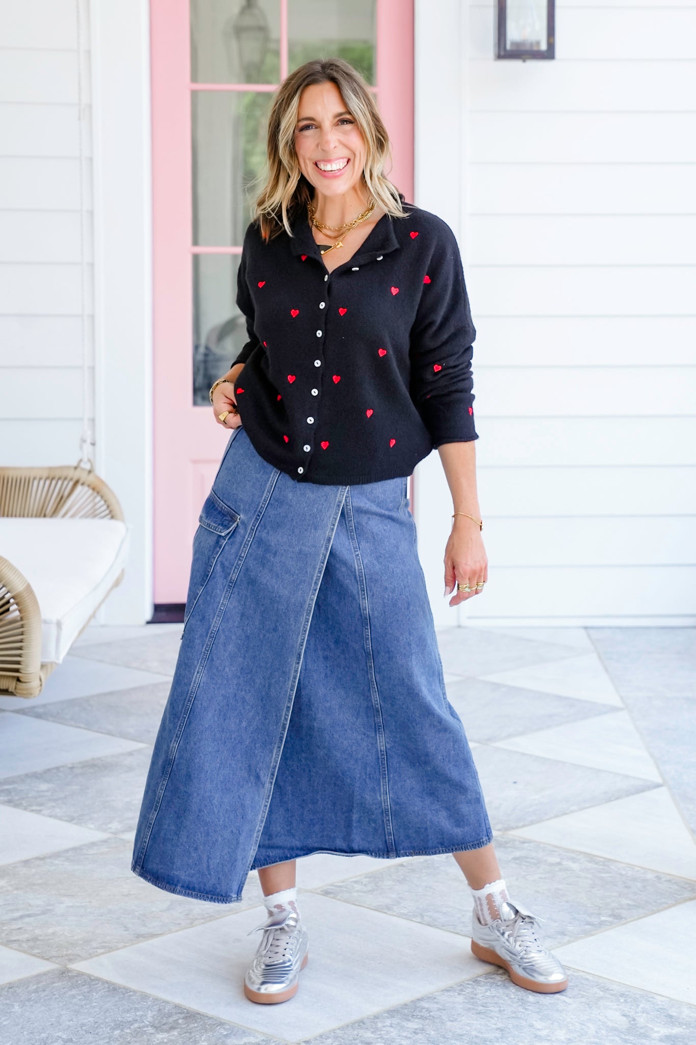 Fall in love with the sweet detail on this cardigan. The embroidered hearts add that touch of whimsy you’ll reach for season after season. Wear it buttoned up with high-waist denim for a flirty everyday look, or layer it open over a tank and trousers for casual polish. This is a style that’s equal parts cozy and eye-catching.