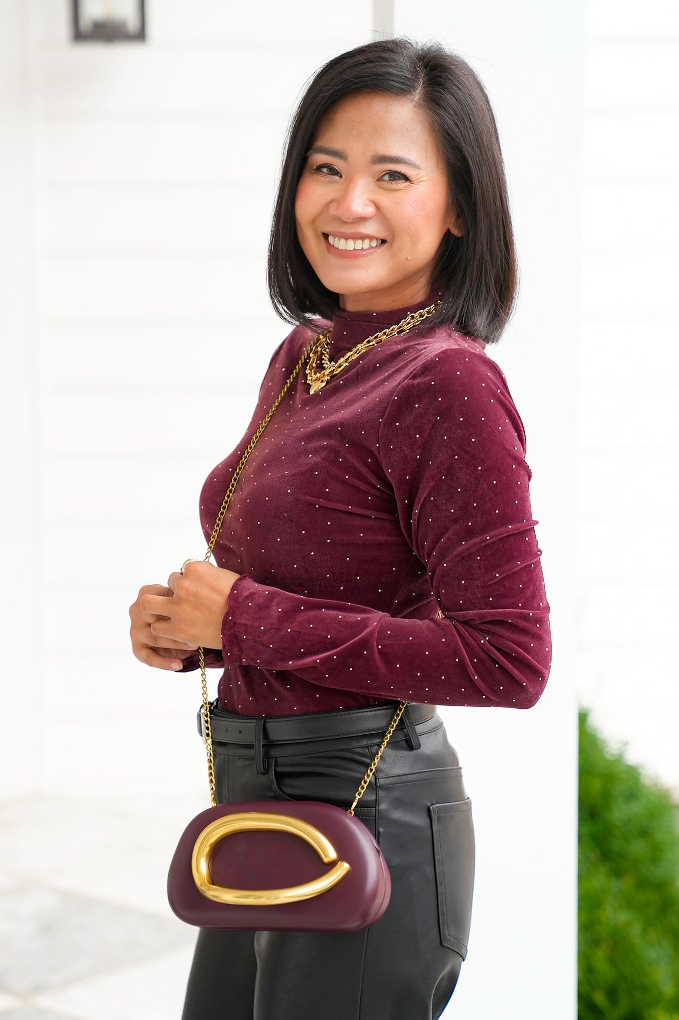 This chic evening bag brings a sophisticated touch to any look with its sculptural metal handle and smooth faux-leather body that feels high-end and modern. The compact size makes it ideal for date nights, weddings, and parties while the chain strap lets you switch between handheld or crossbody moments. Pair it with dresses, tailored sets, or satin pieces for a polished finish.