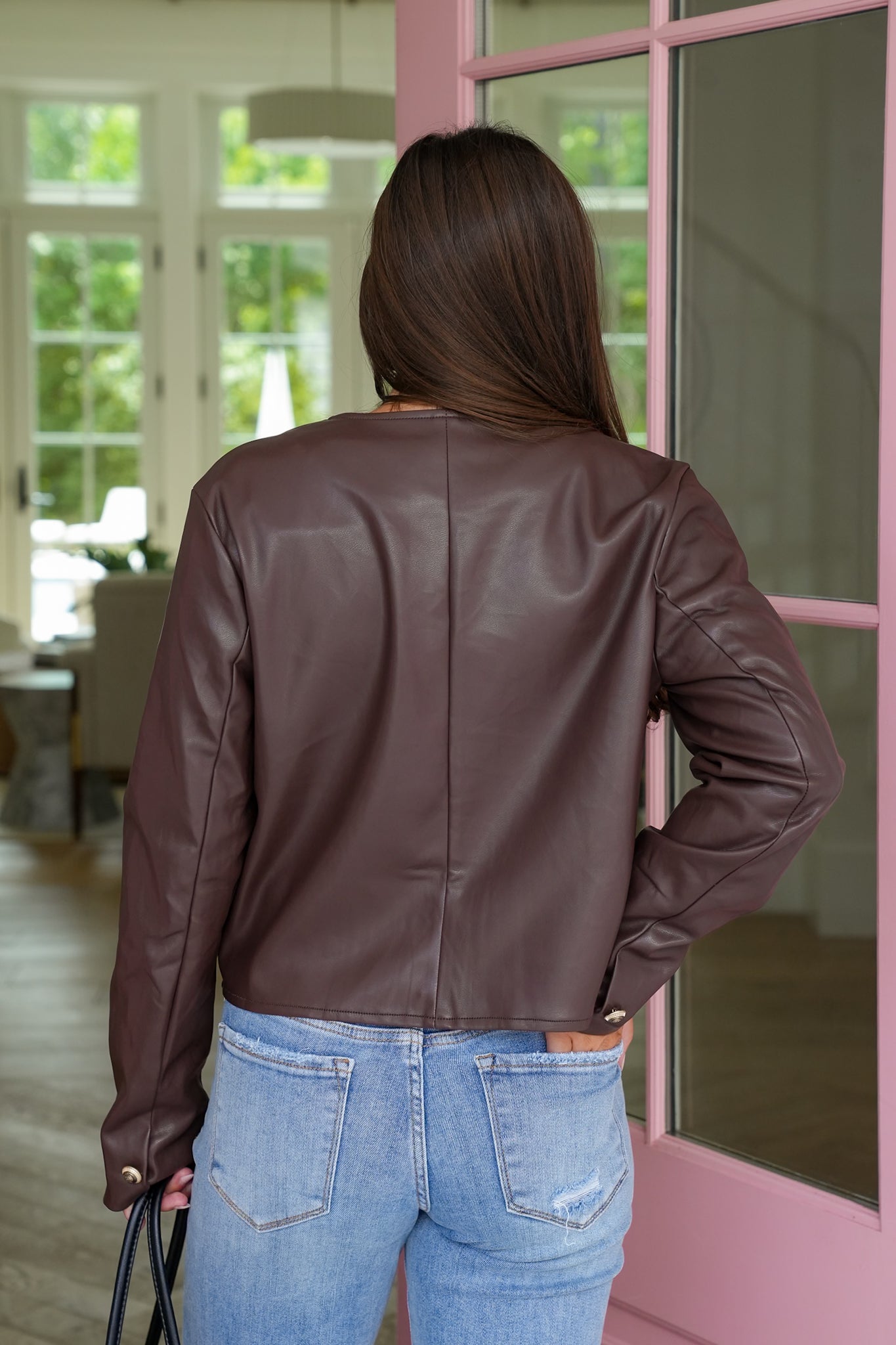 This jacket brings instant sophistication to any outfit. The vegan leather has that soft, broken-in feel while still looking sleek and polished. The button-up style with chic hardware gives it a designer vibe, making it the kind of piece you can throw on over denim and a tee for casual edge or layer over dresses and blouses for a modern, boss-babe look.