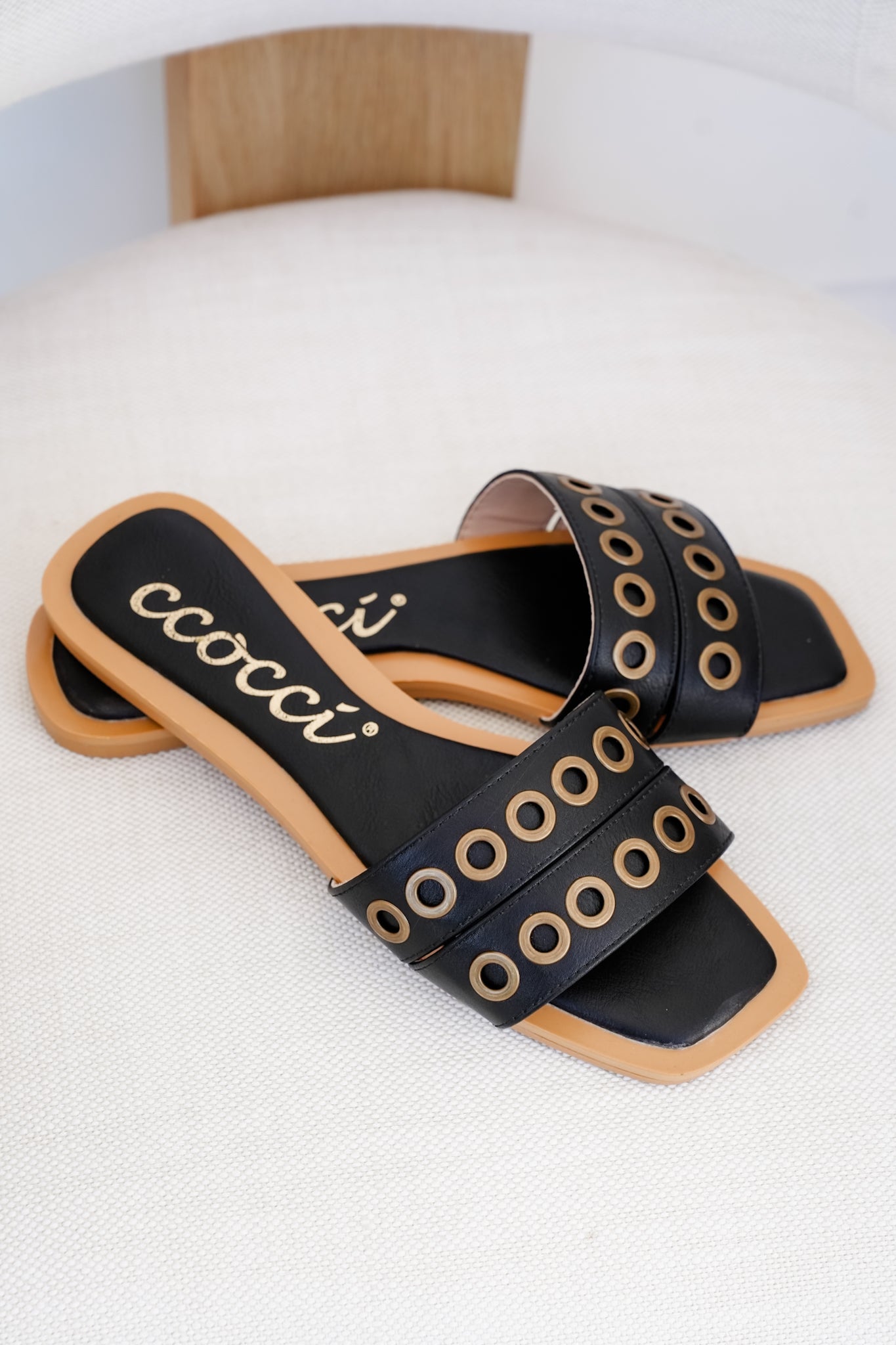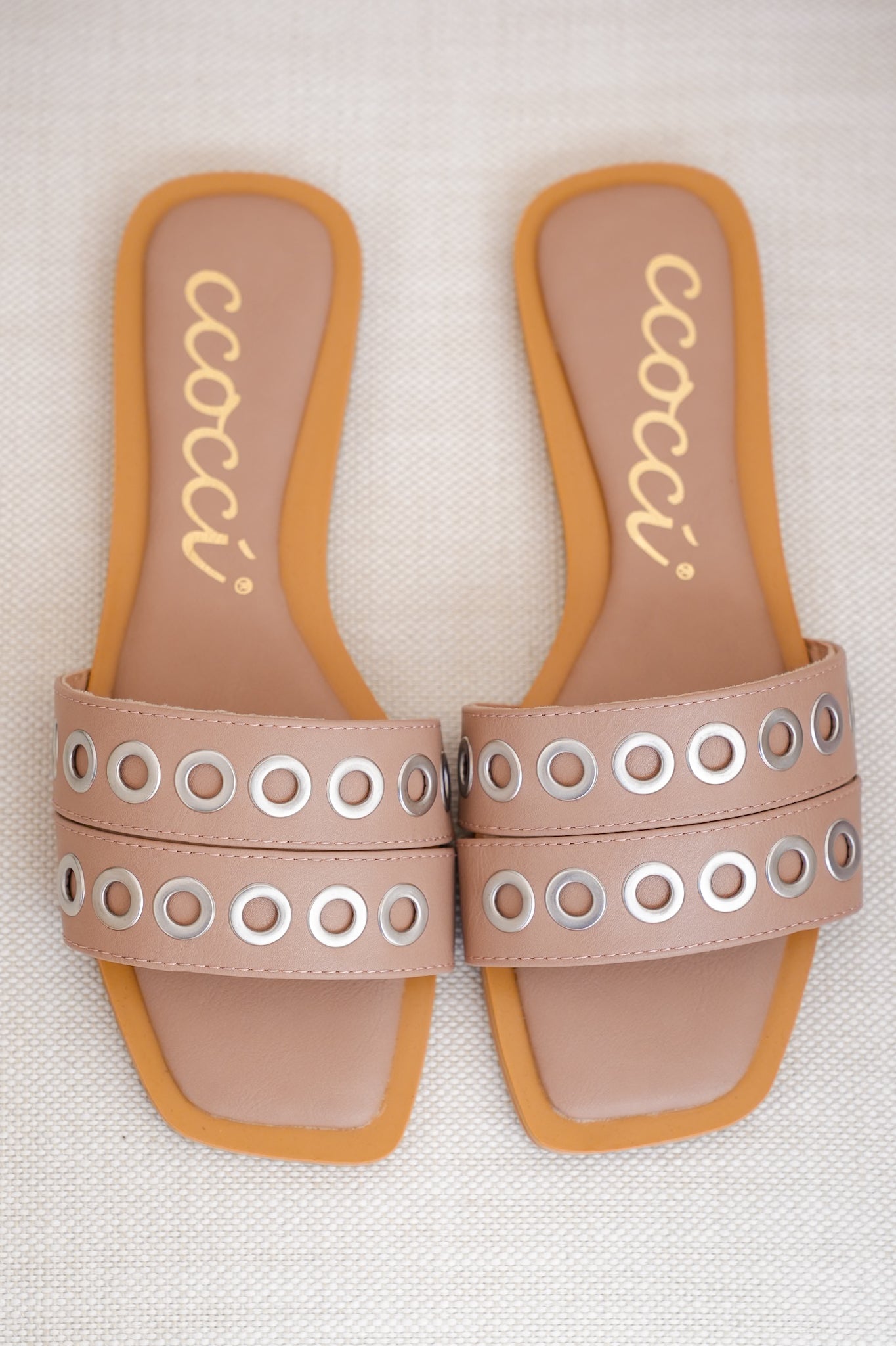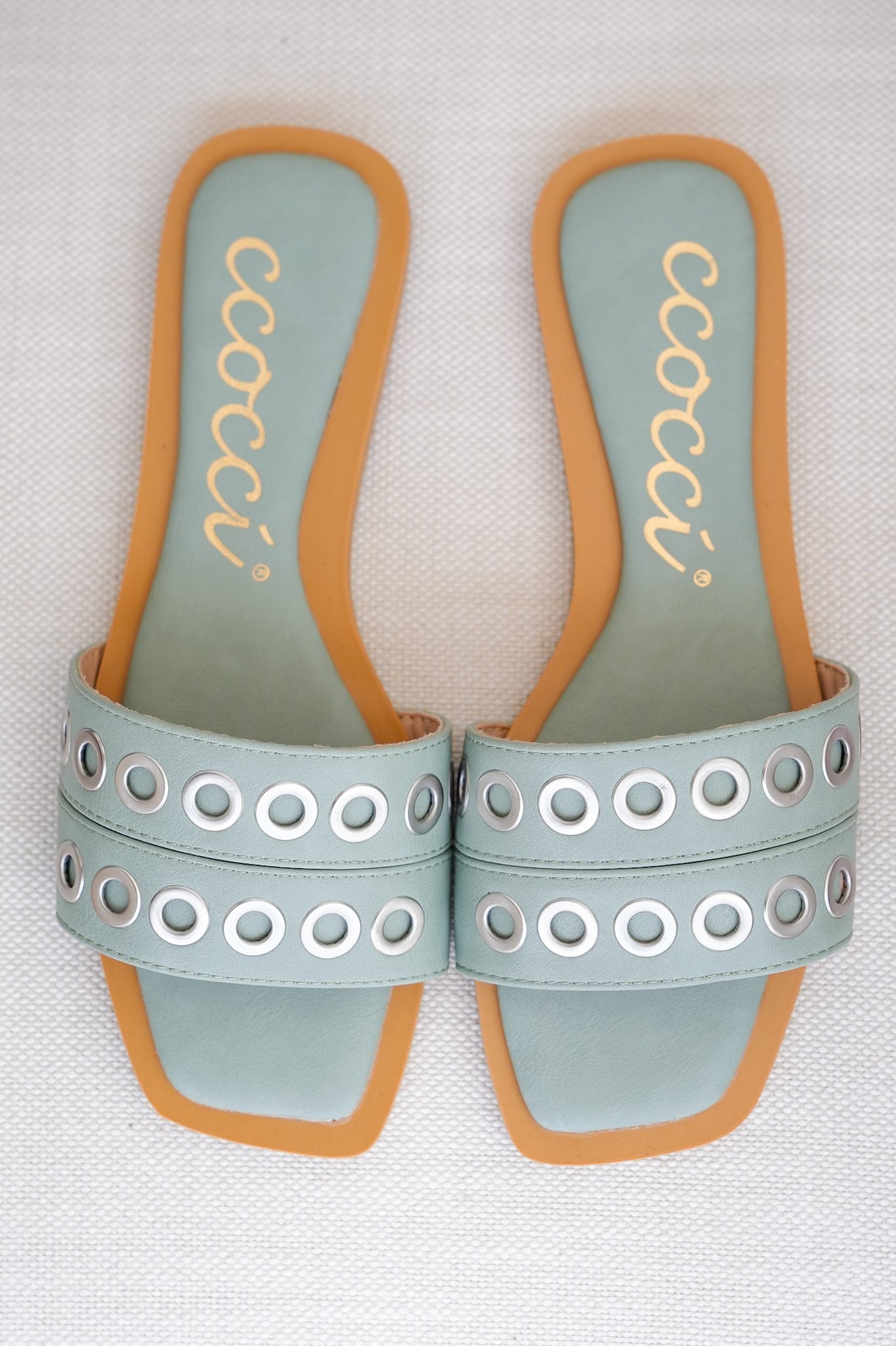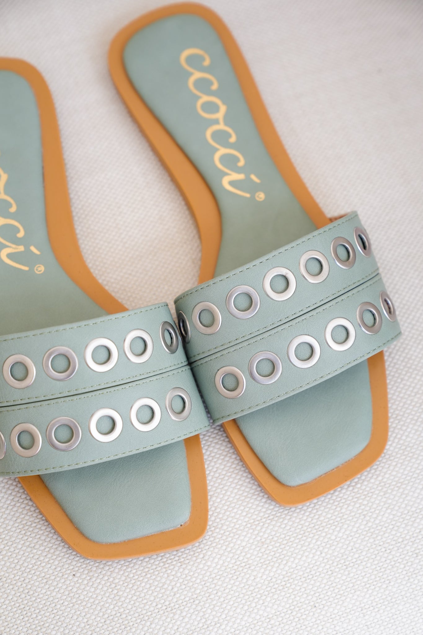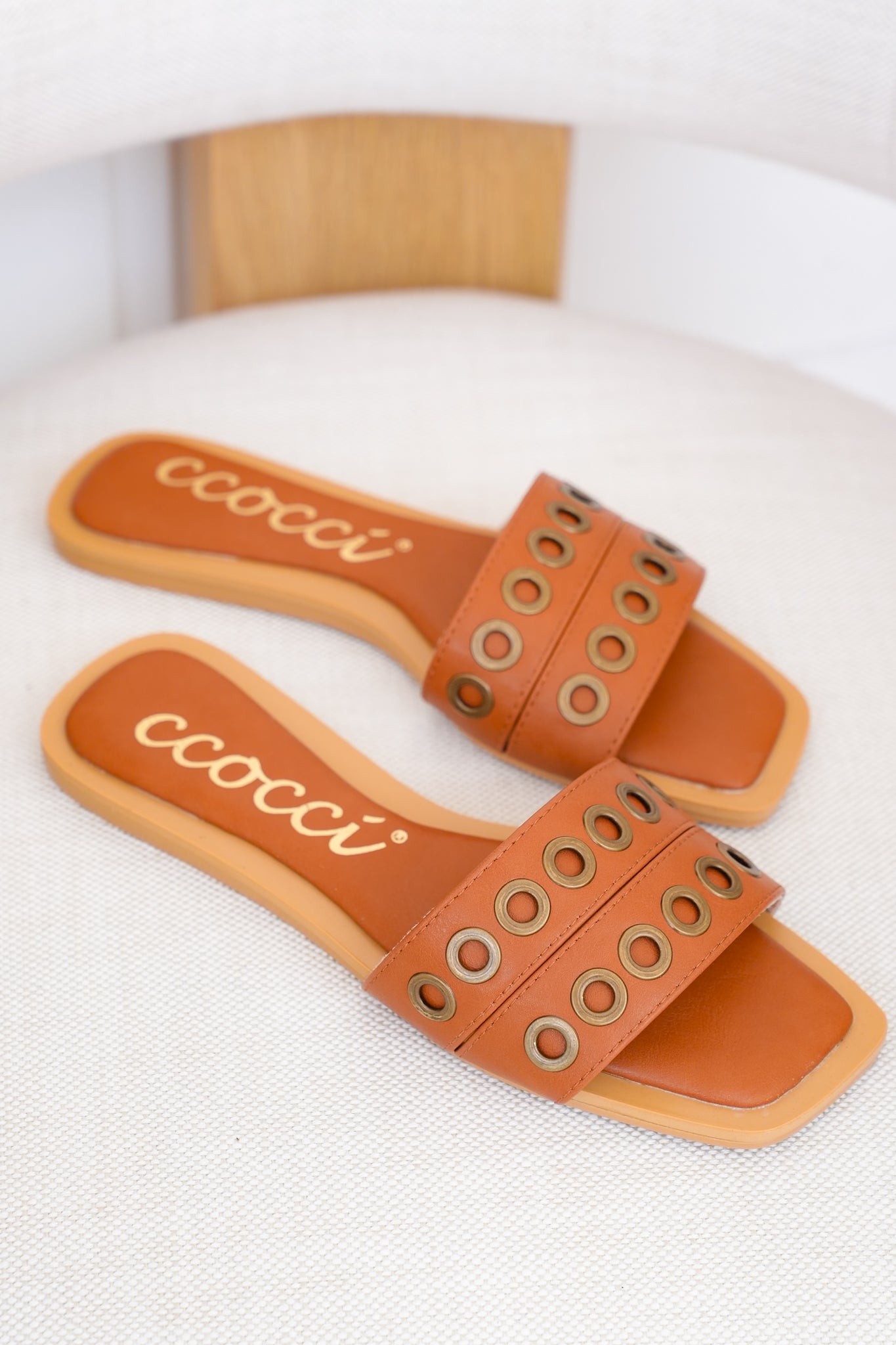 Edgy meets casual in these grommet-detailed slide sandals! With a cushy footbed and lightweight design, they’re made for everyday wear. Style with cutoffs, dresses, or your favorite jeans—instant cool factor.