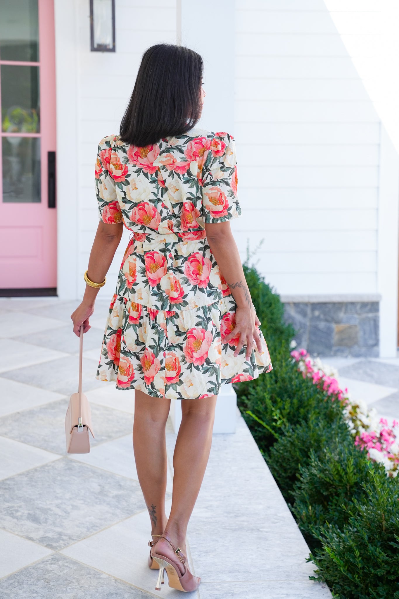 Floral Print Short Puff Sleeve Mini Dress