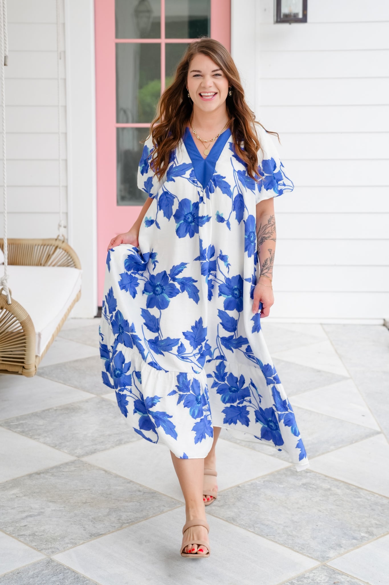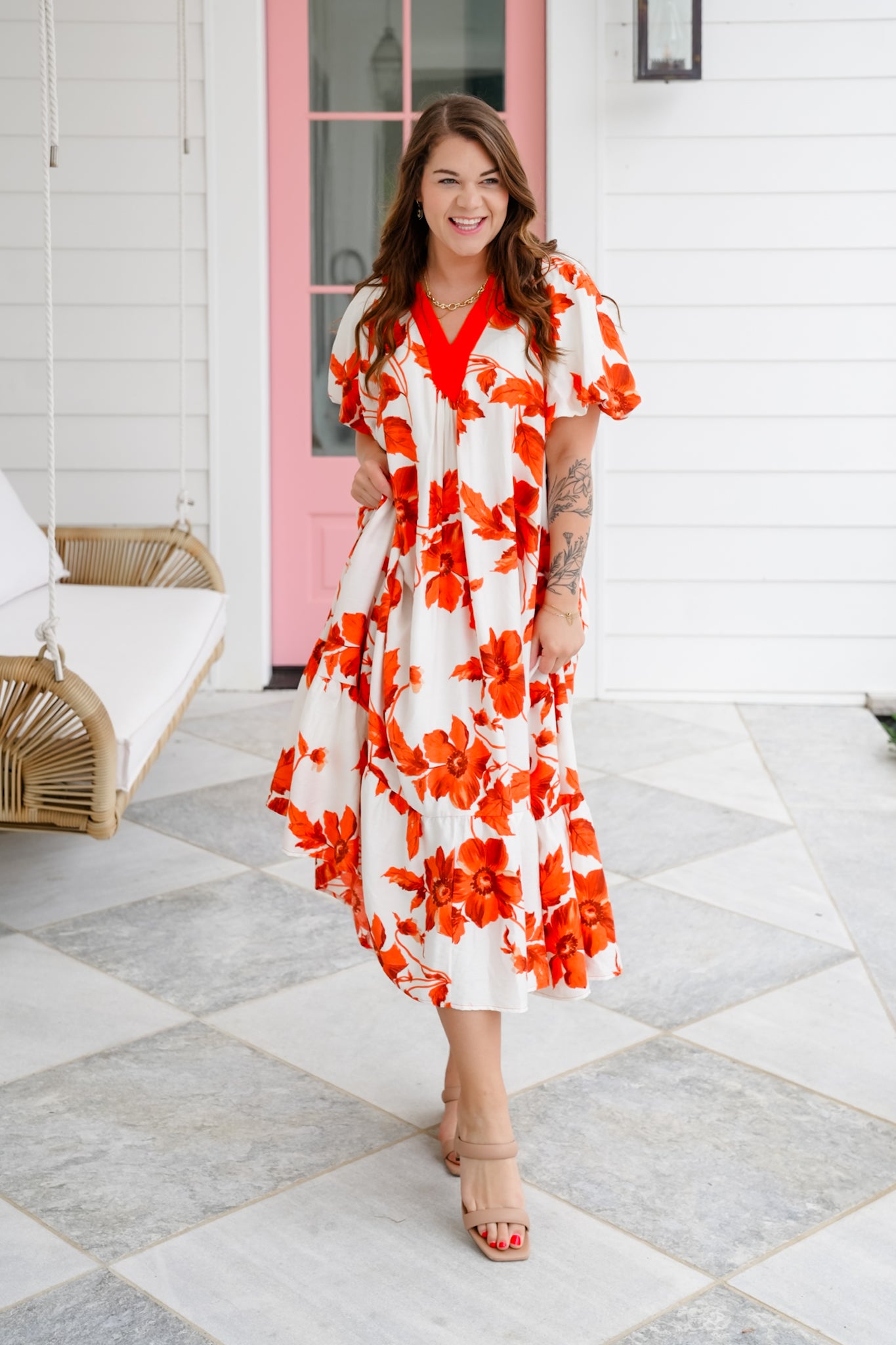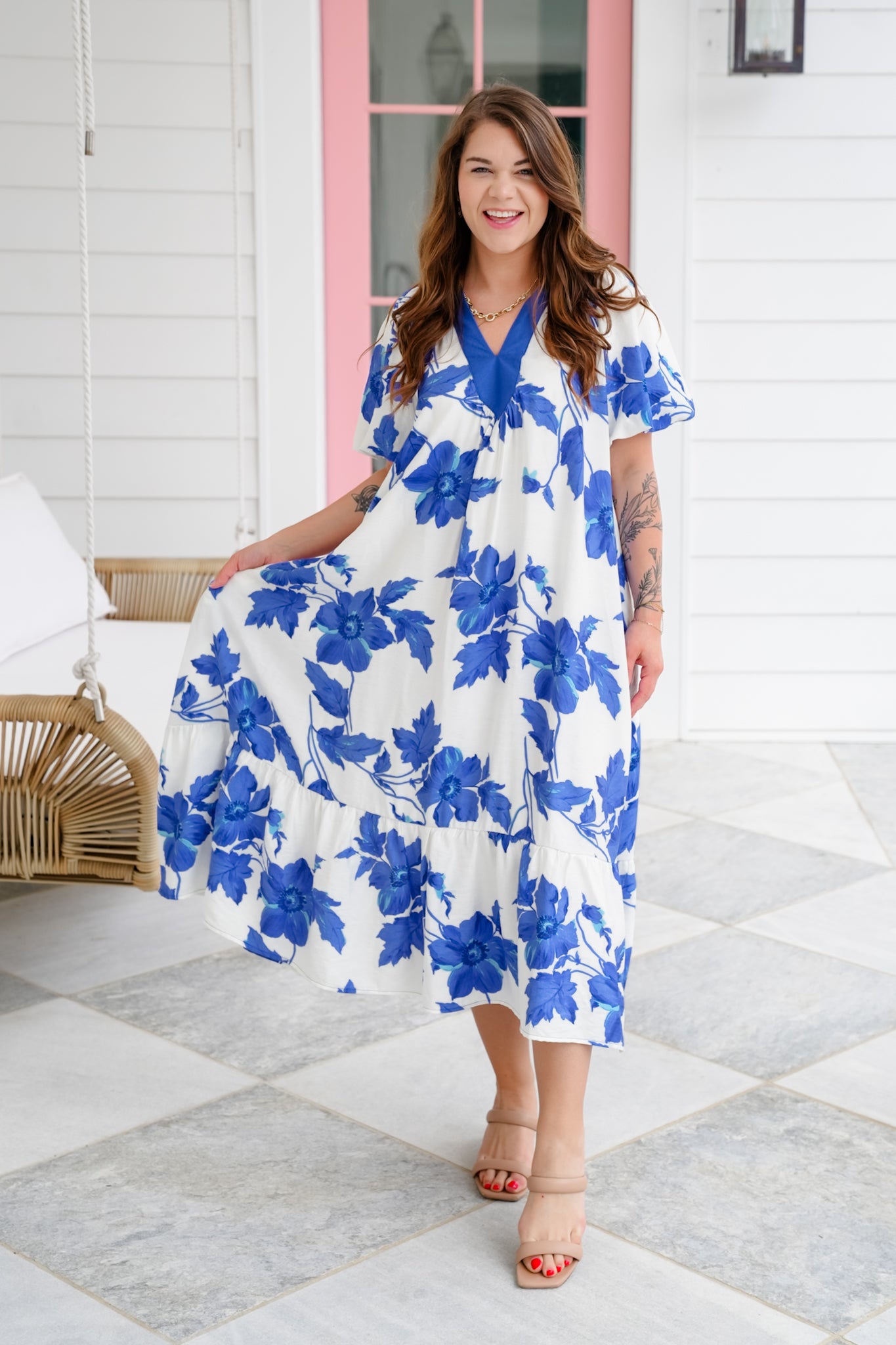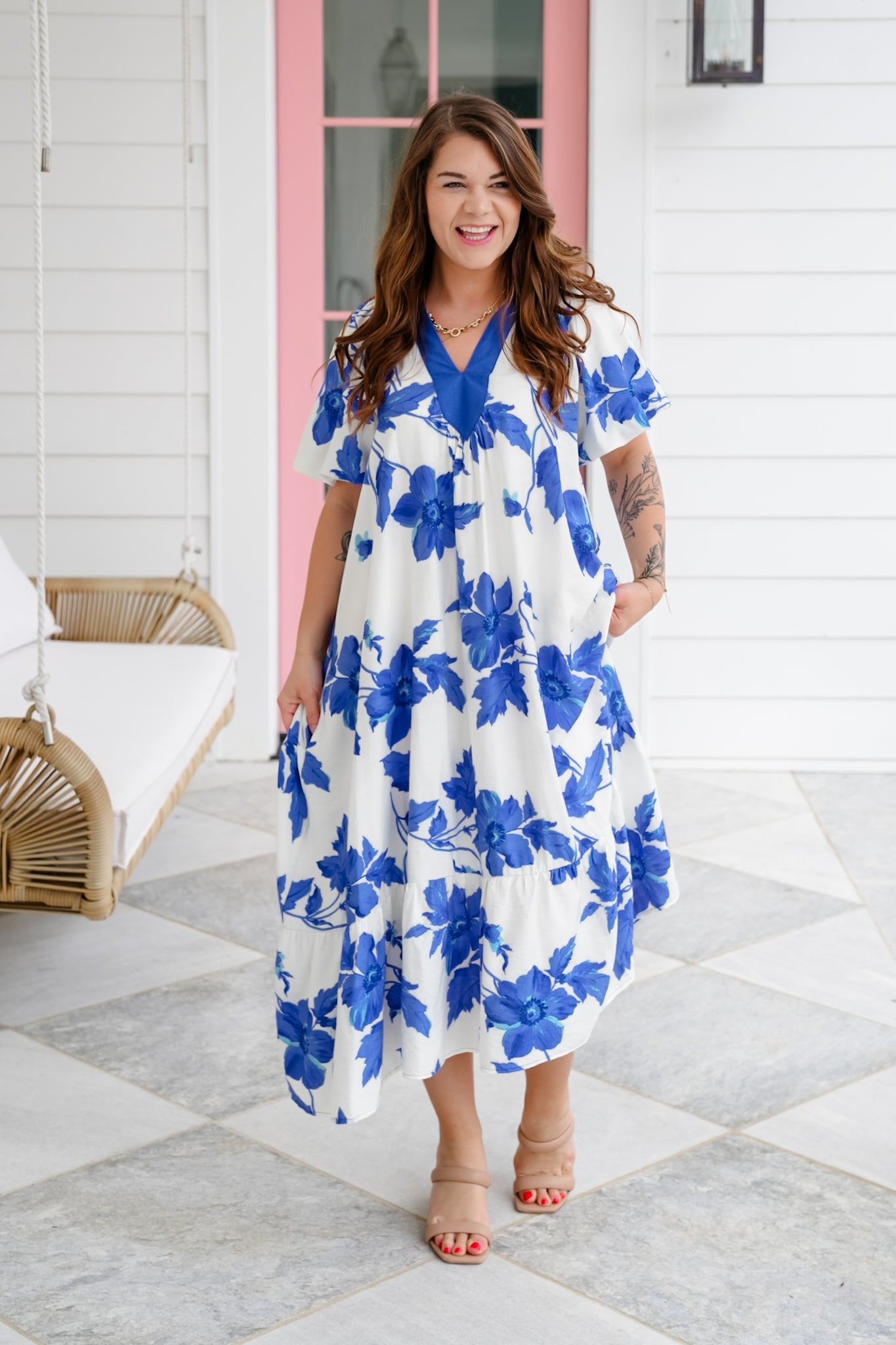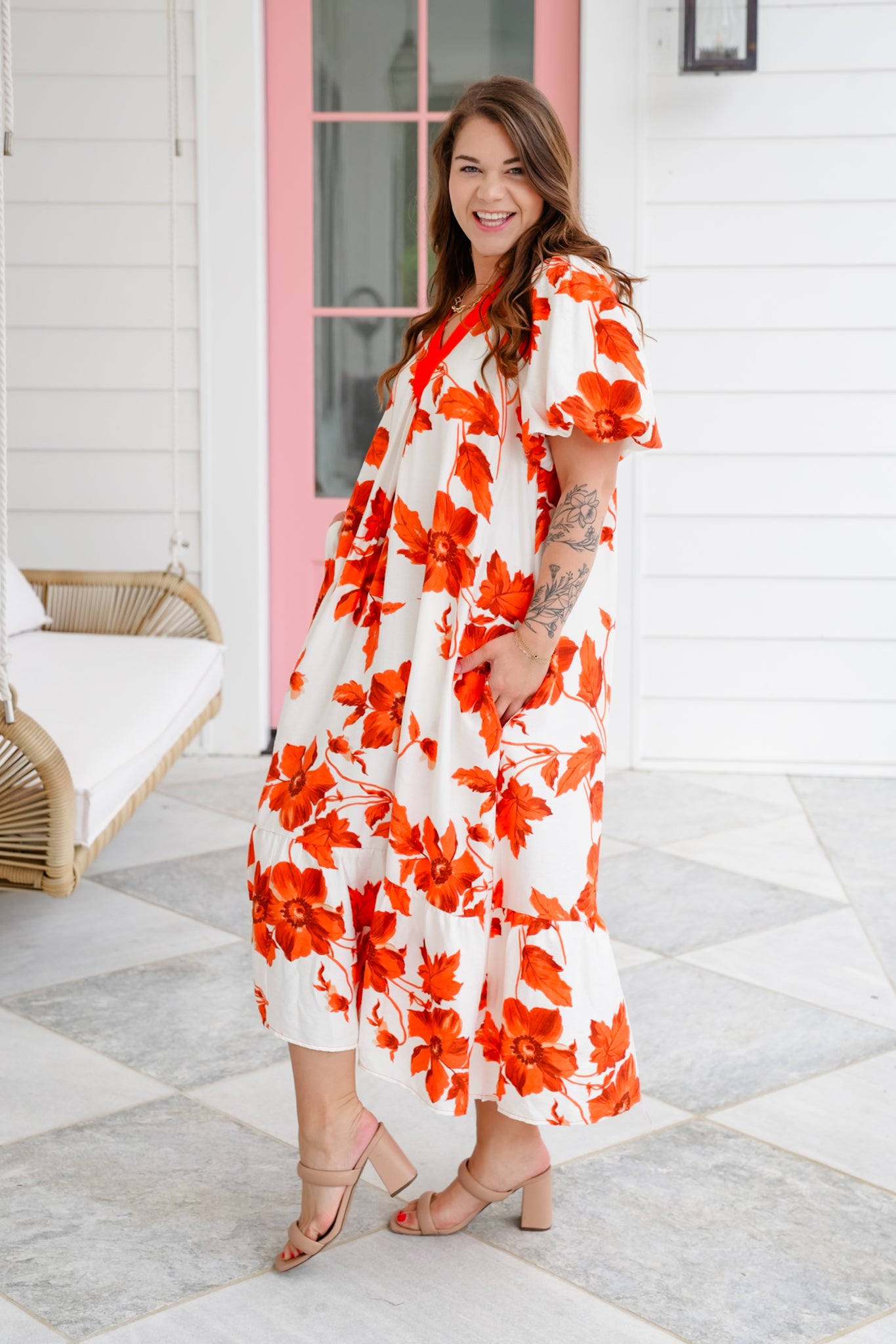 This stunner is as comfy as it is cute! The flowy silhouette and bold floral print make it an easy pick for everything from casual days to garden parties. It has a super roomy fit (hello comfort!) with elastic in the arm area for added ease. Dress it up with wedges or throw on sandals for a breezy, effortless vibe.