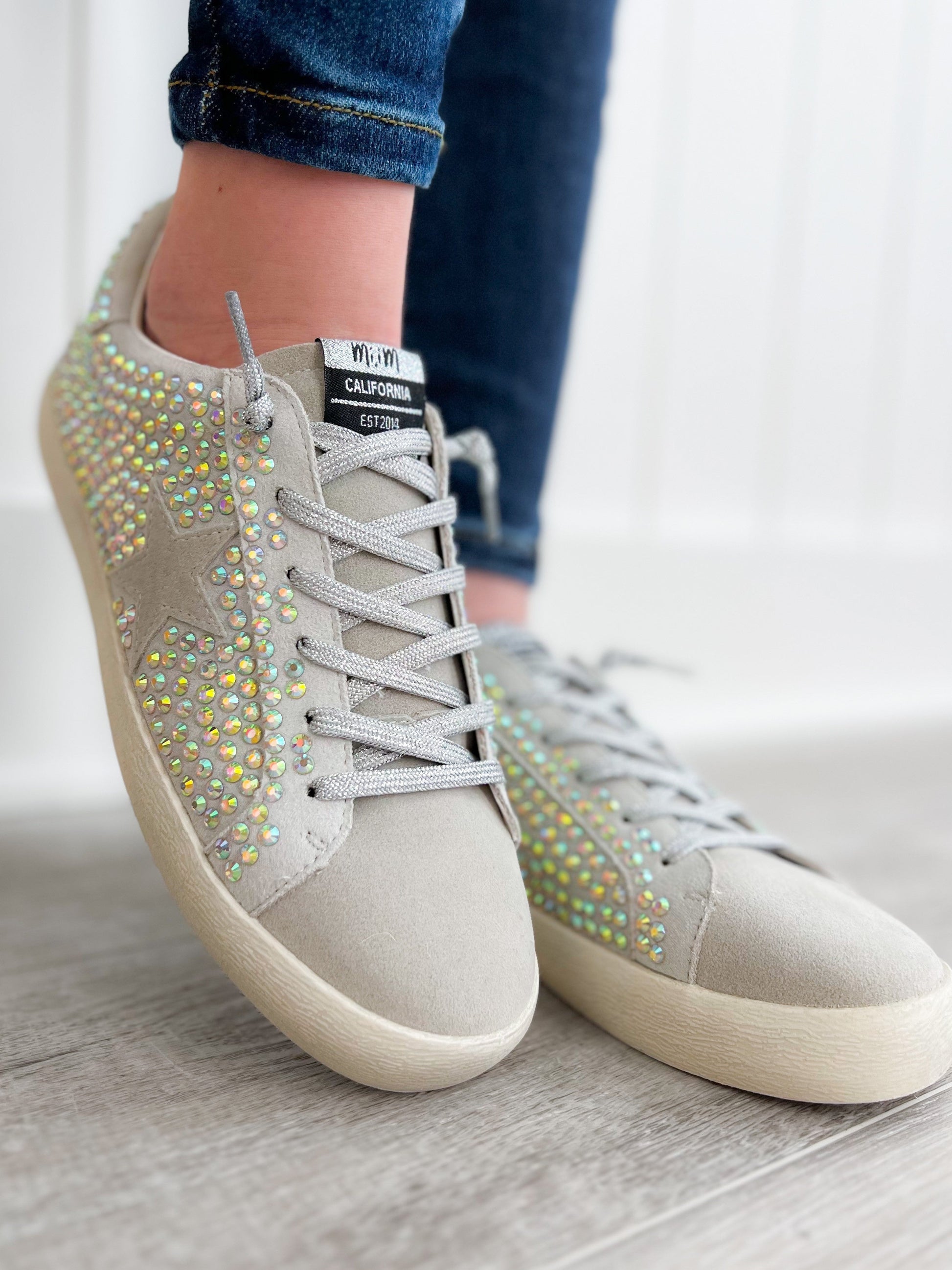 Turn your everyday walk into a strut with these sparkle-loaded glam sneakers! Covered in brilliant iridescent rhinestones that shine in every light, these shoes are a showstopper. They’re lightweight and comfy, but packed with personality. Whether you’re pairing them with jeans, dresses, or joggers, these kicks instantly level up your look.