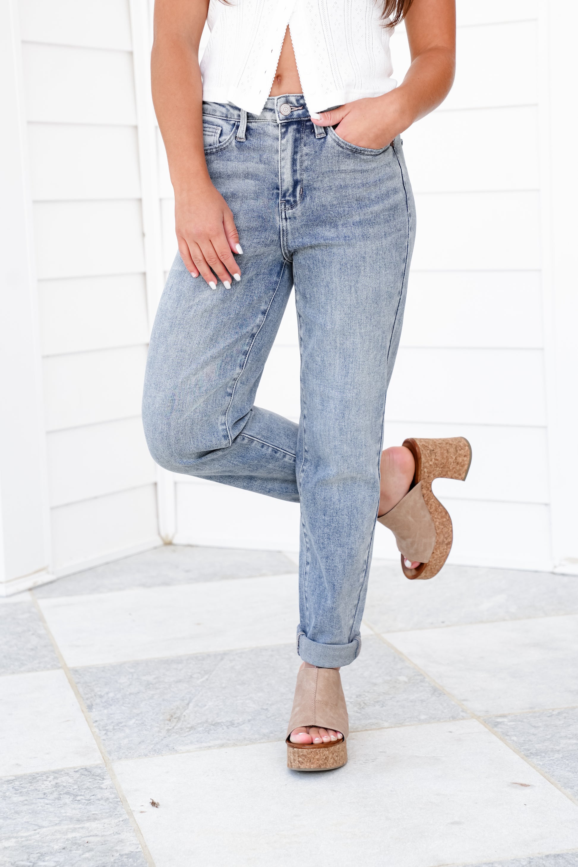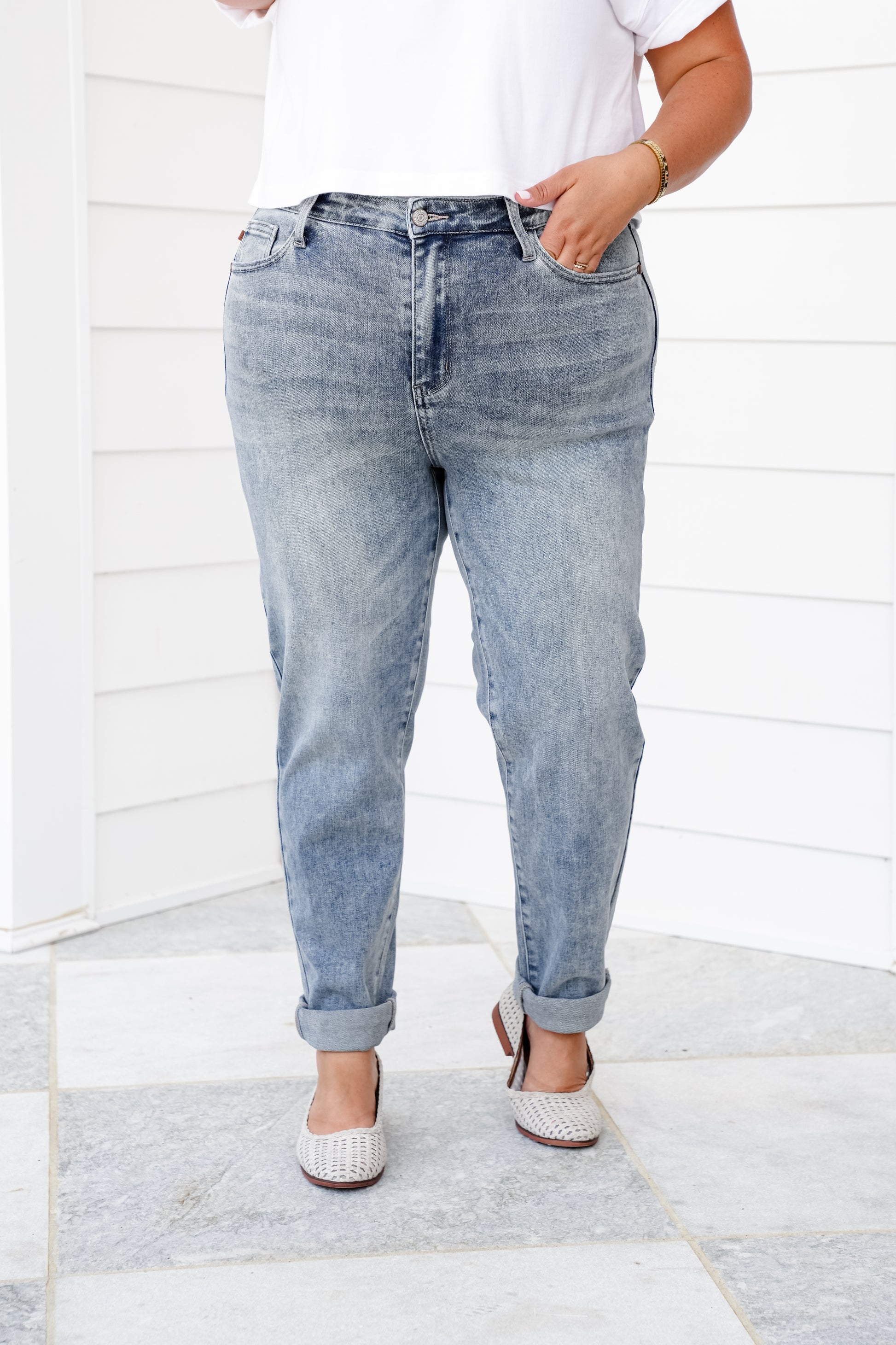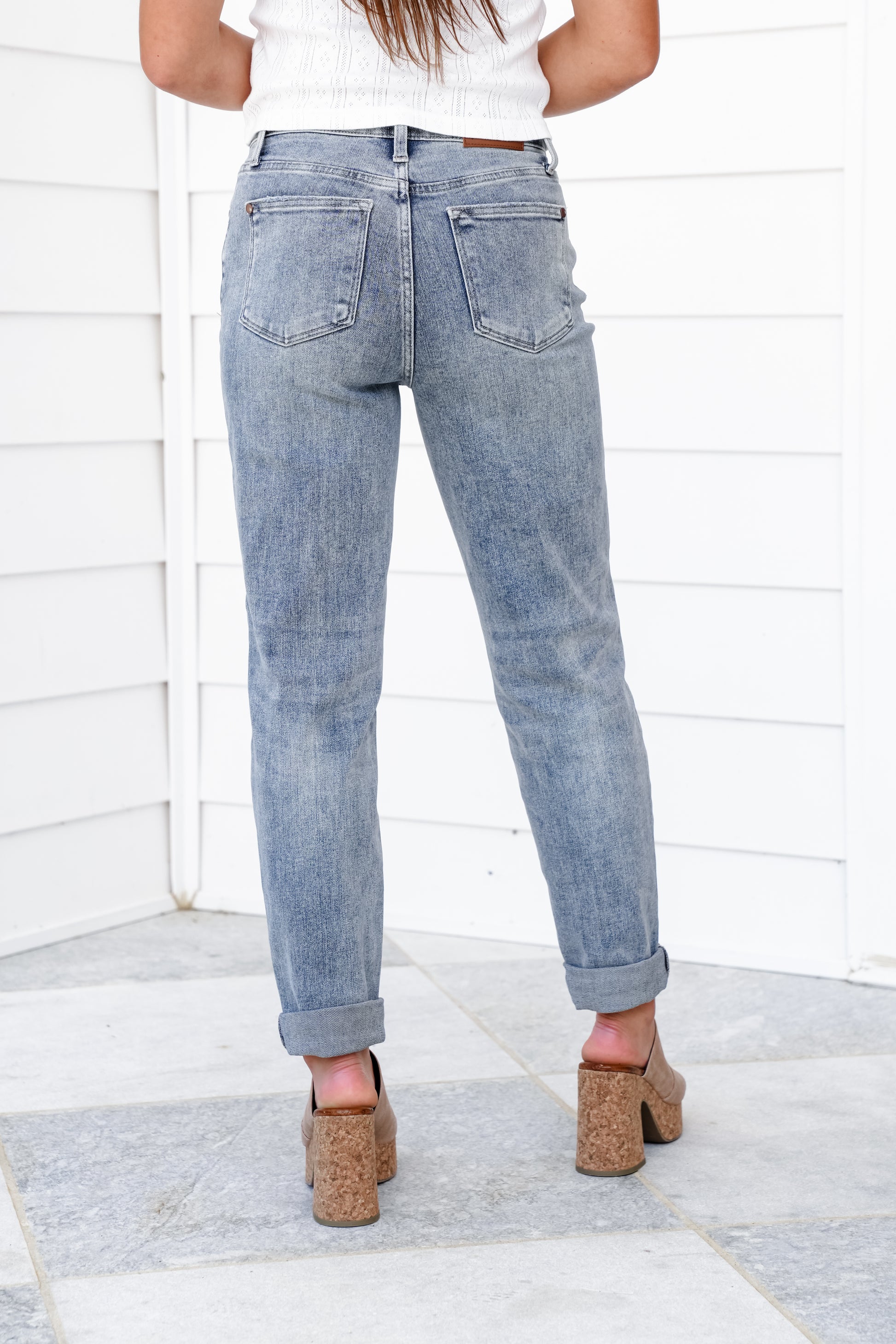 Judy Blue High Rise Medium Vintage Wash Boyfriend Double Roll Cuffed Jeans