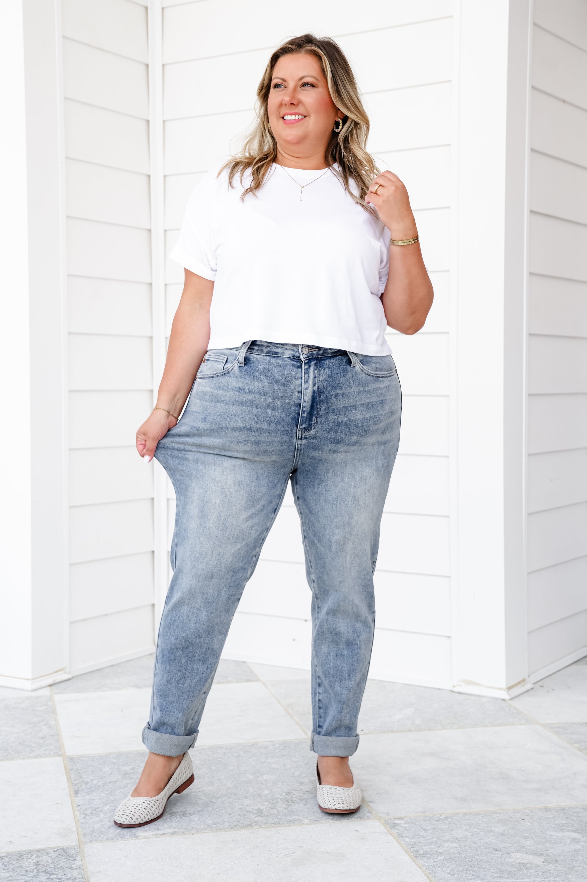 These Judy Blue boyfriend jeans are the definition of laid-back style with a polished twist. The medium vintage wash brings that perfectly worn-in look, while the non-distressed finish keeps them versatile enough to dress up or down.