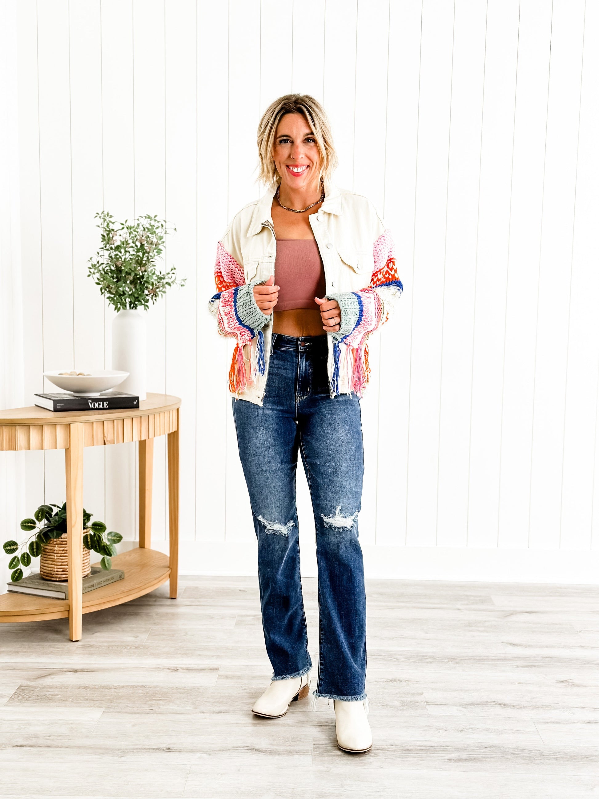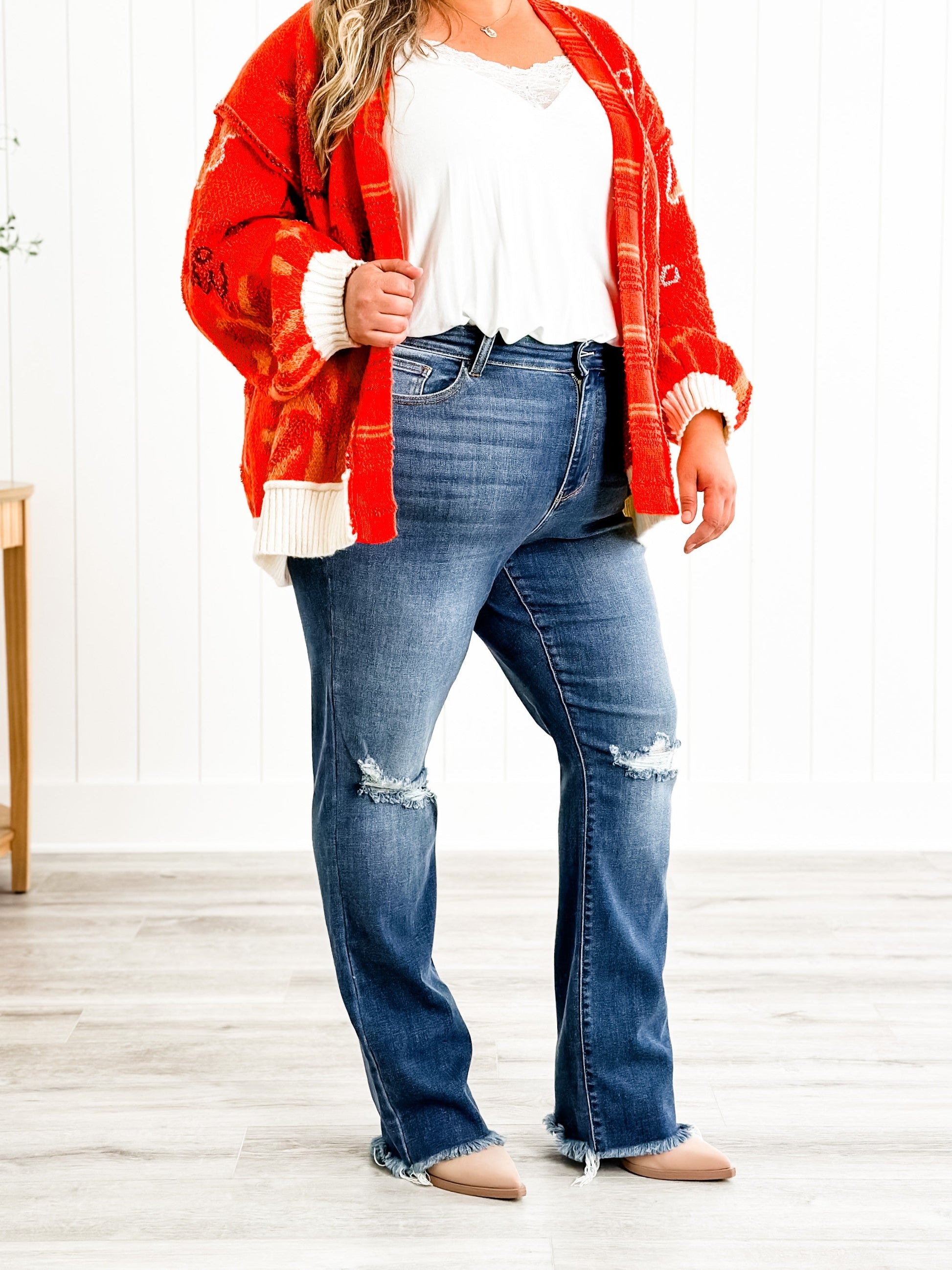 Judy Blue High Rise Medium Wash Destroyed Knee & Frayed Hem Straight Leg Jeans