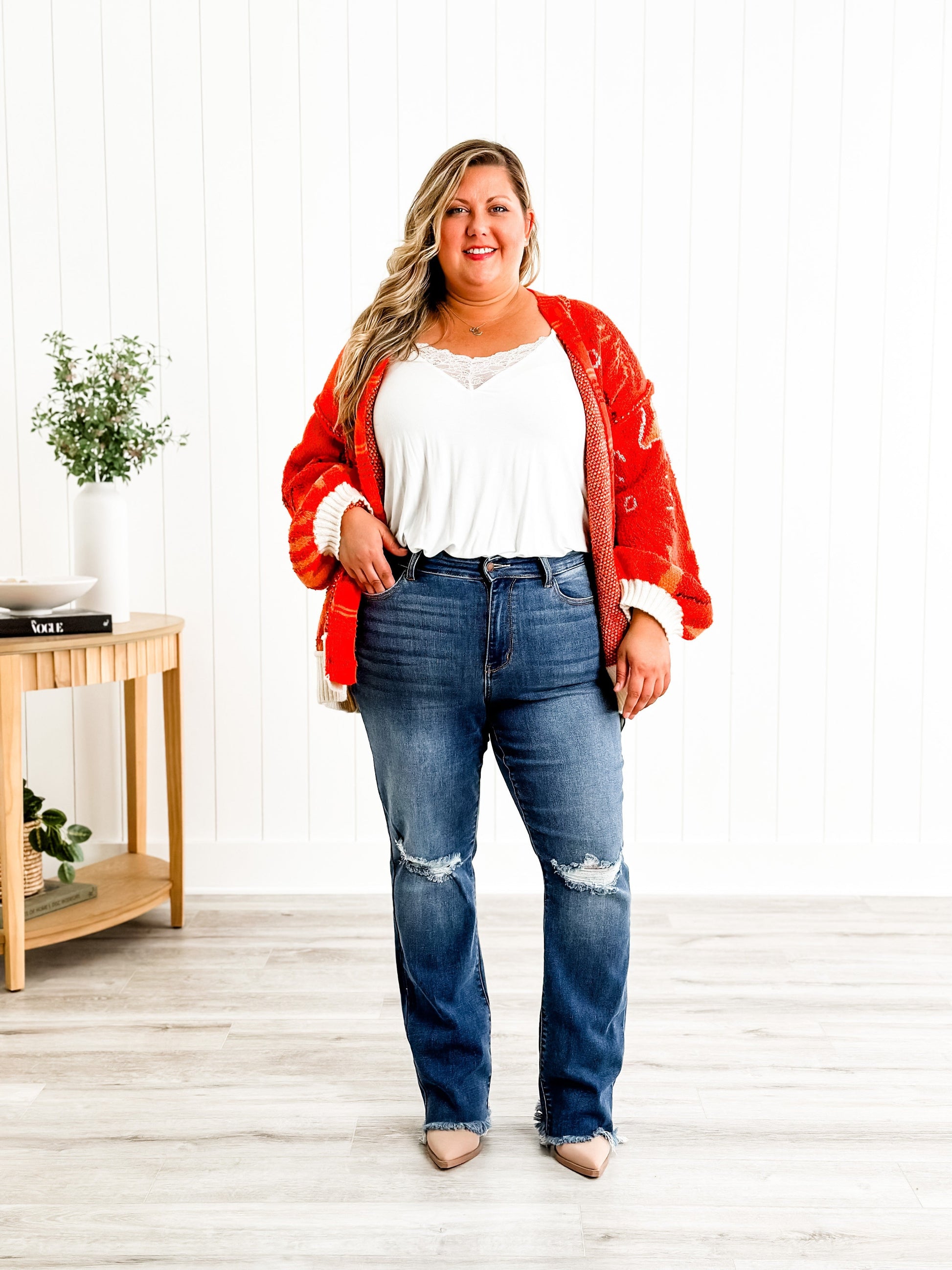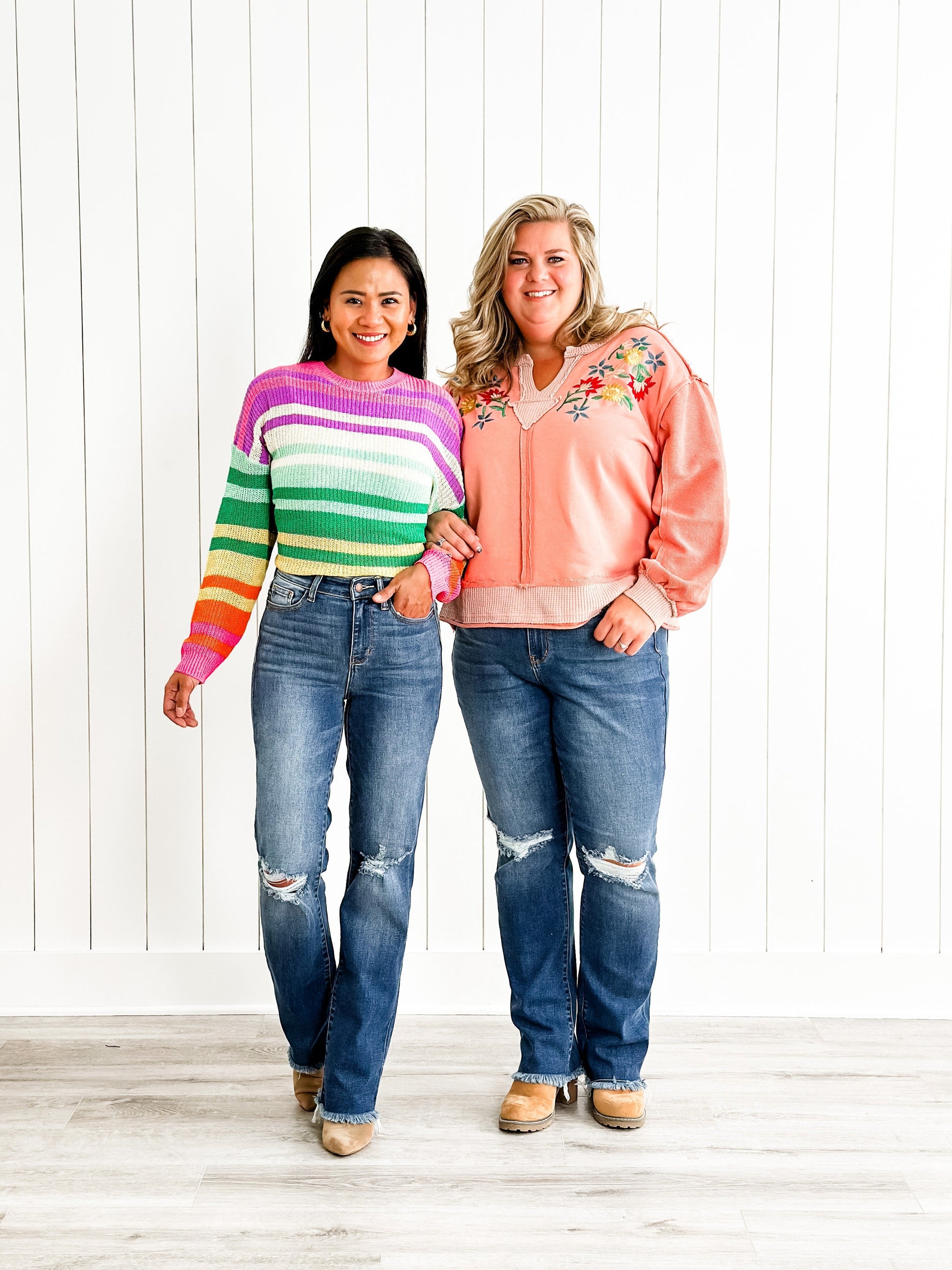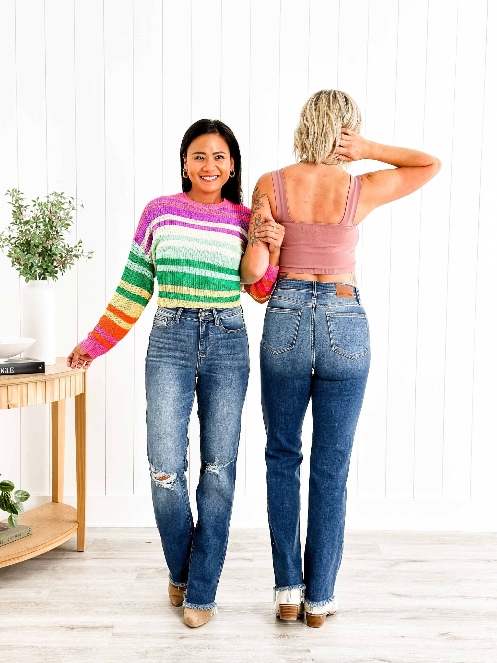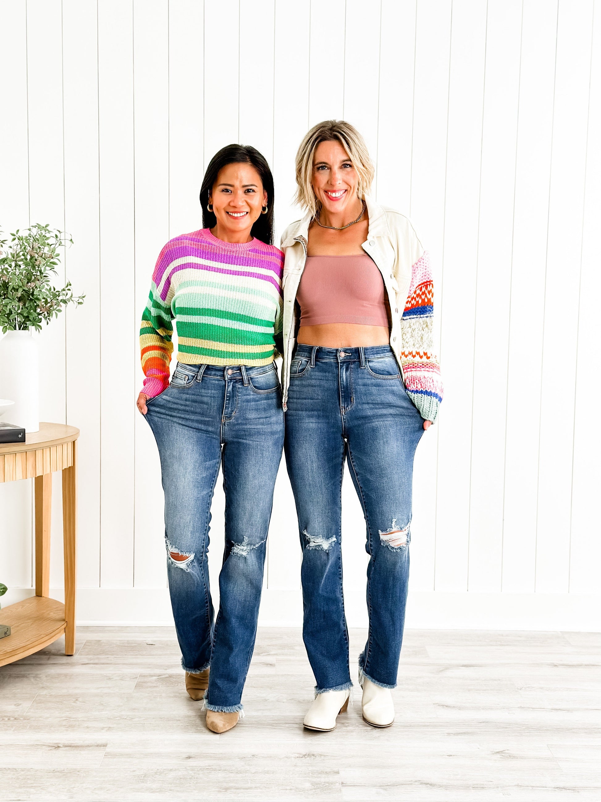 They have an on trend straight leg fit that is so flattering on all body shapes and sizes! It will make your legs look long and lean! Paired with a high rise - these jeans are absolute perfection!