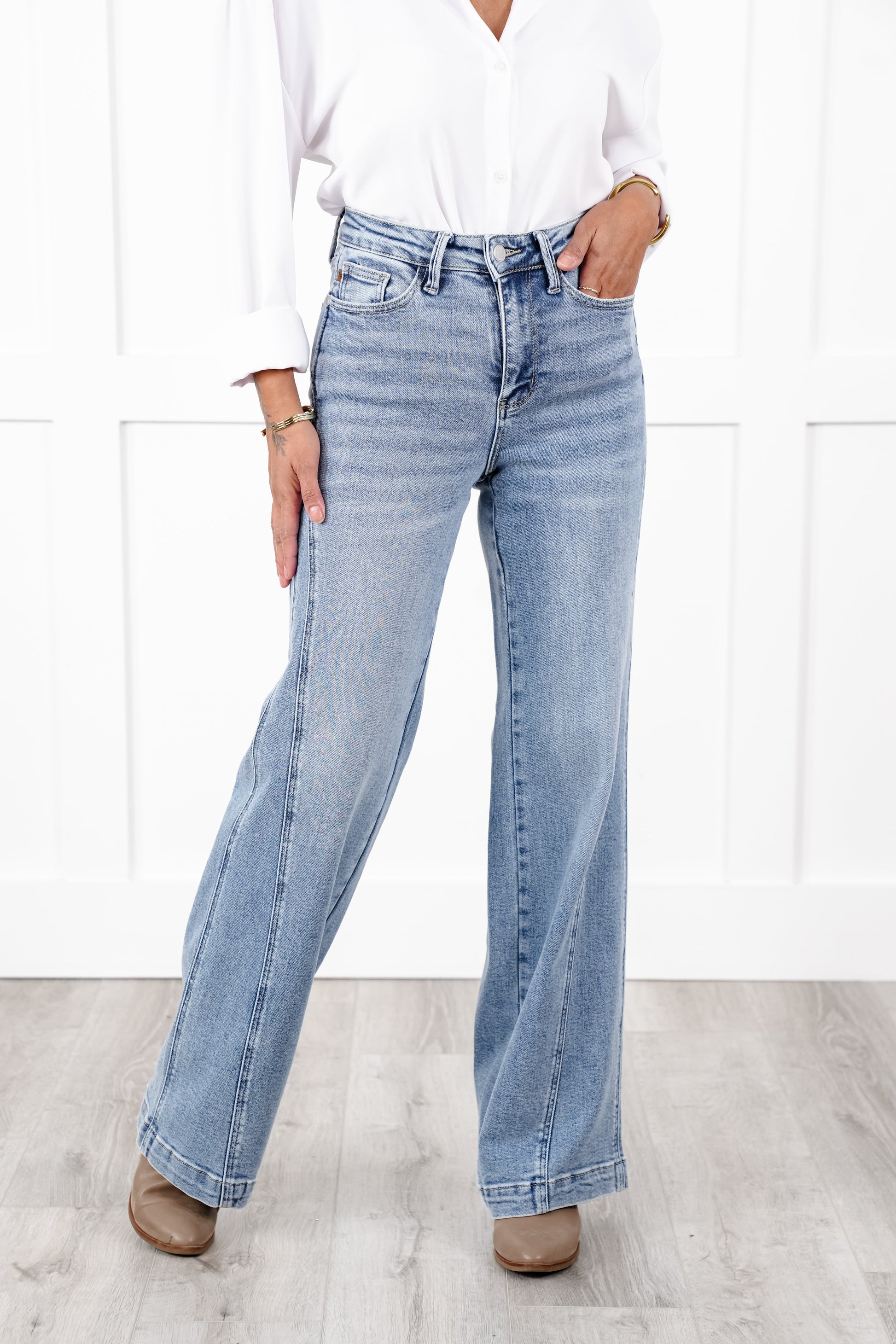 Judy Blue High Rise Medium Wash Retro Wide Leg Jeans with Side Seam Detail