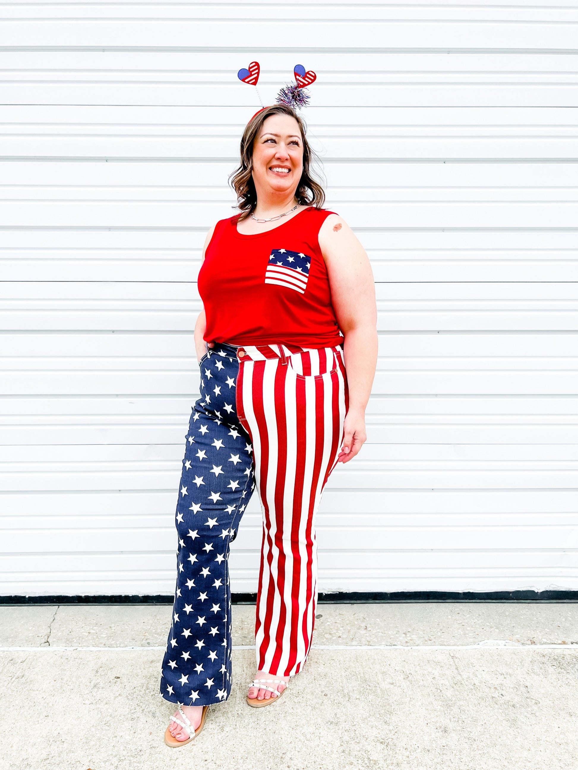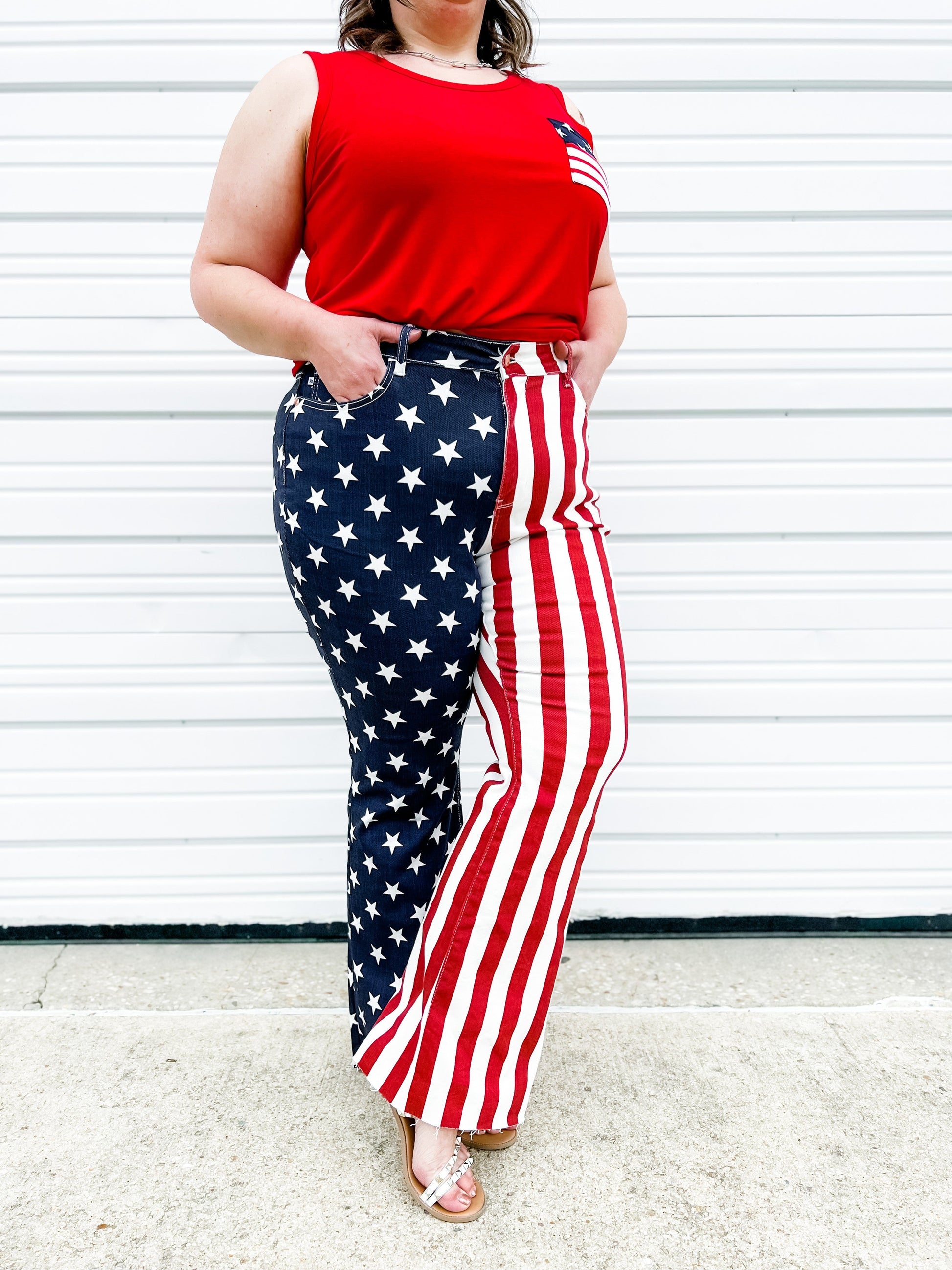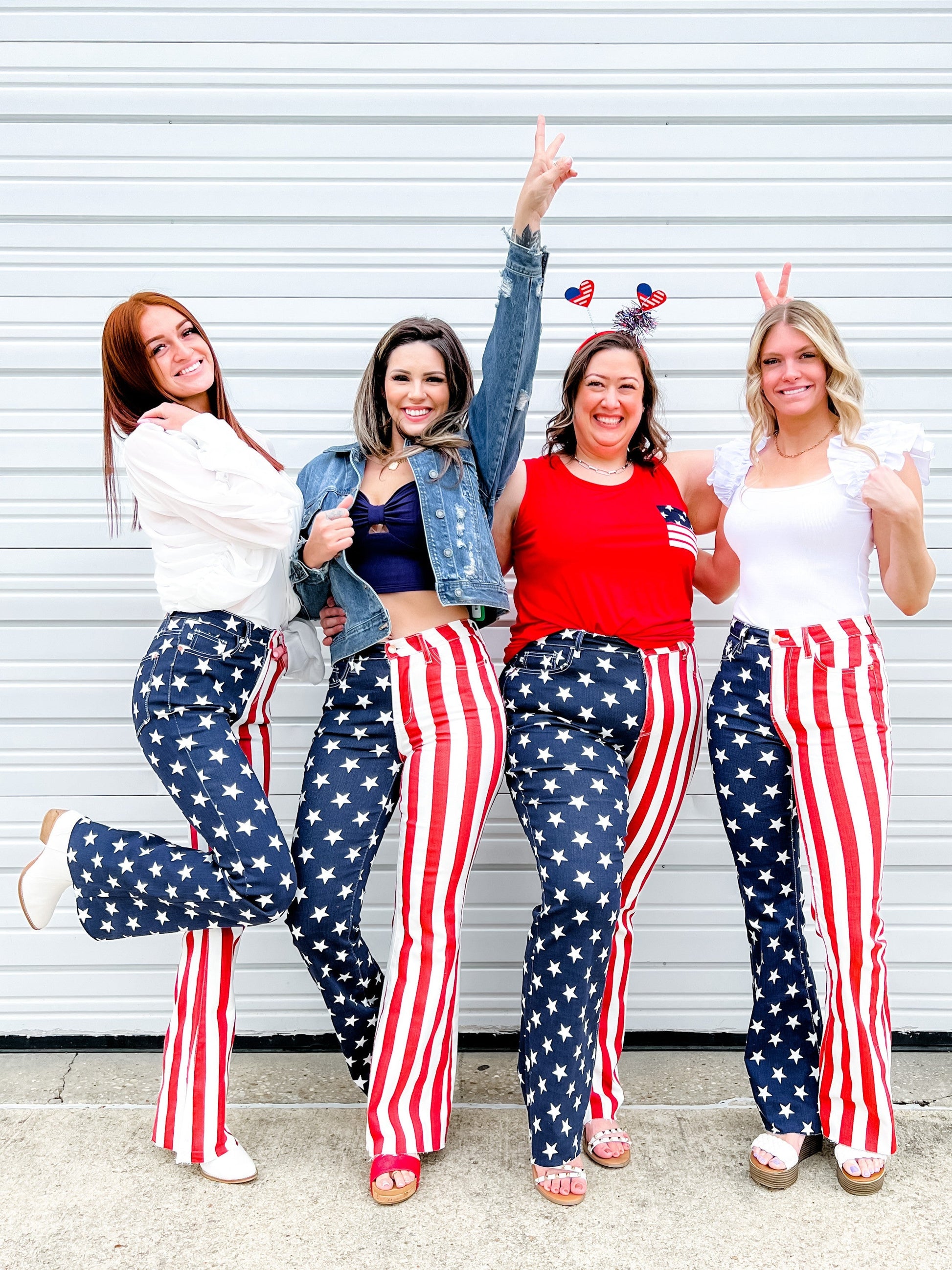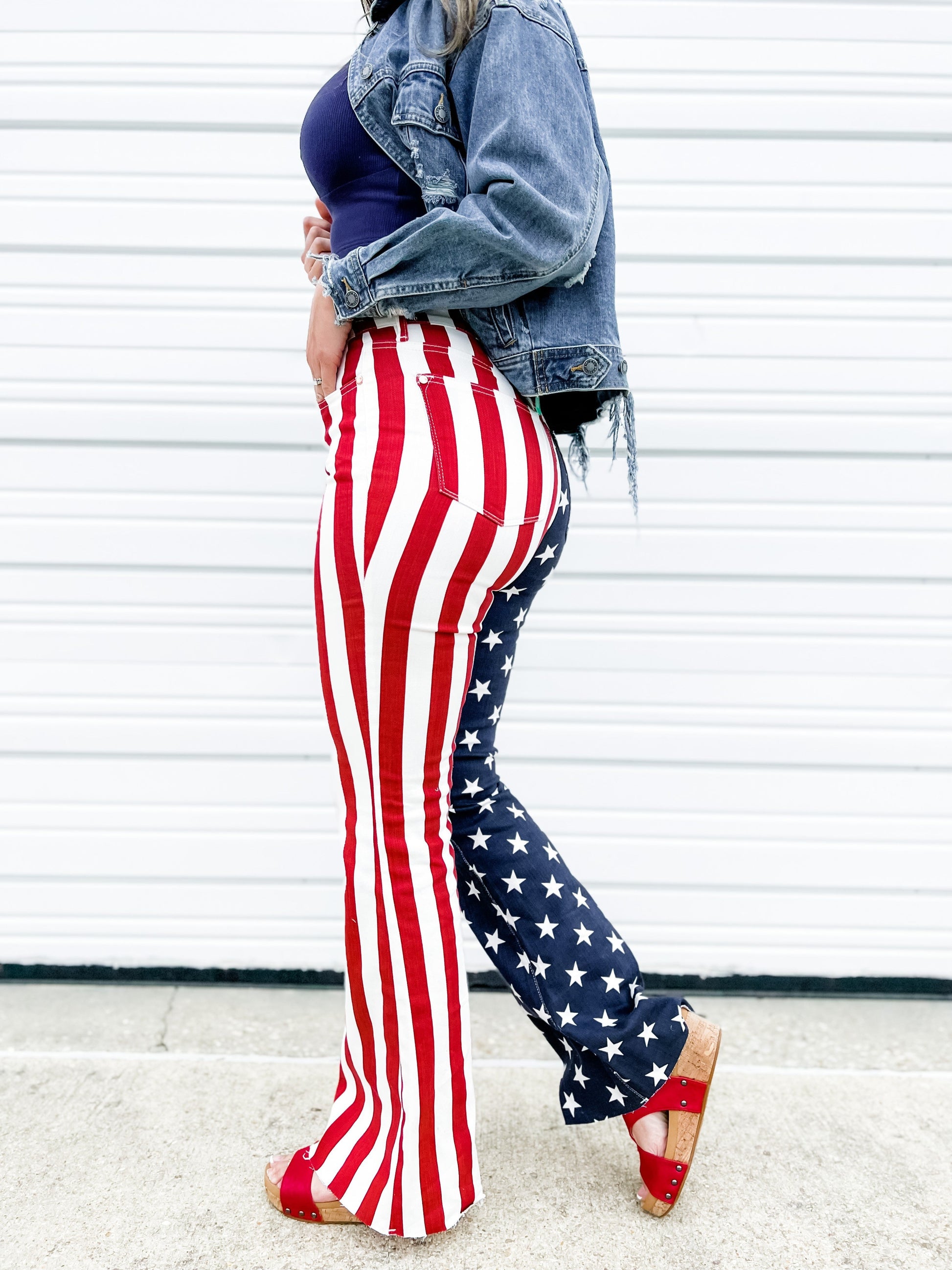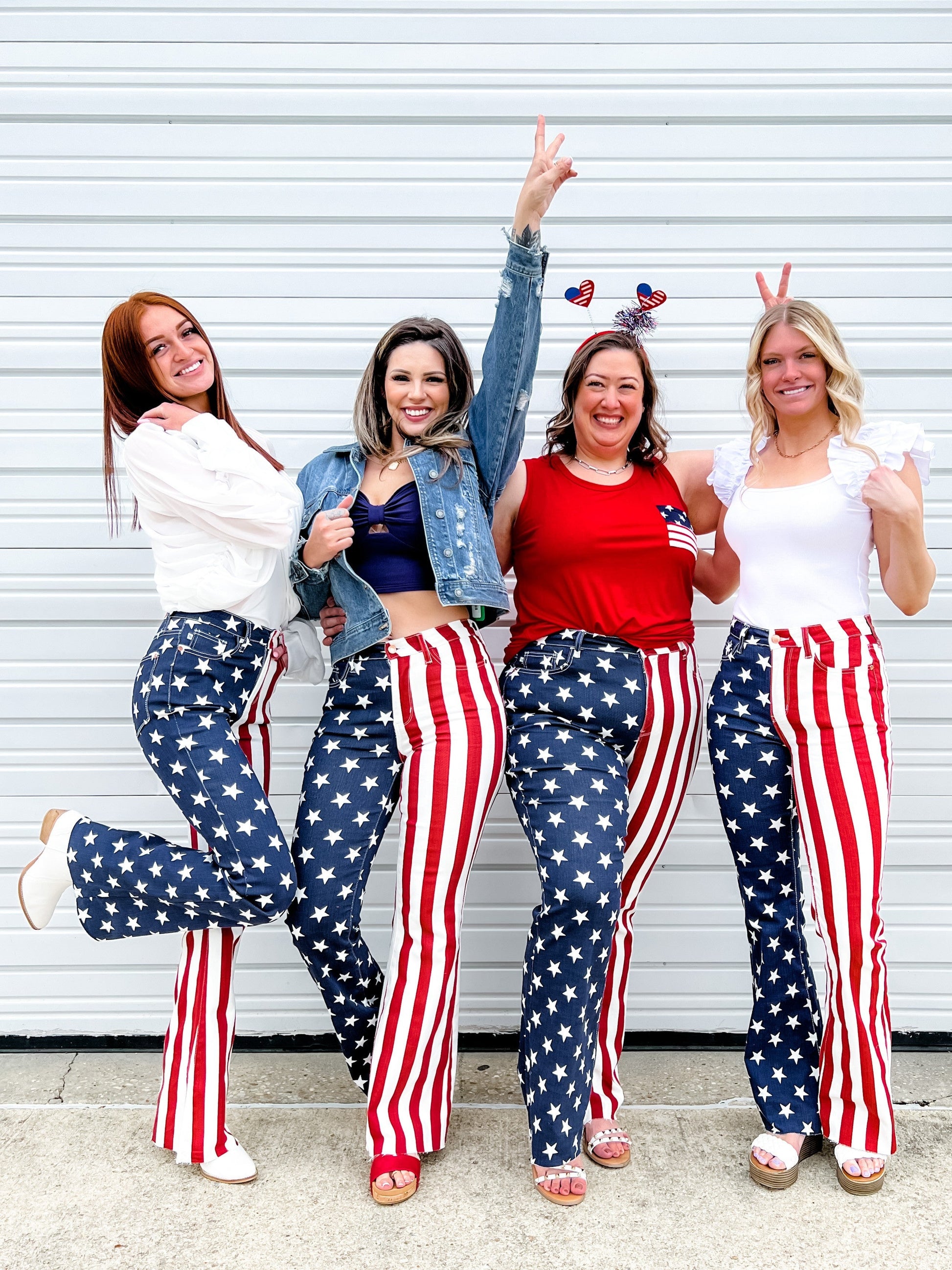 Yes, yes you NEED these American Flag flares! We have never loved a pair of denim so much: from the print, to the fit, and stretch these jeans are an absolute must have!