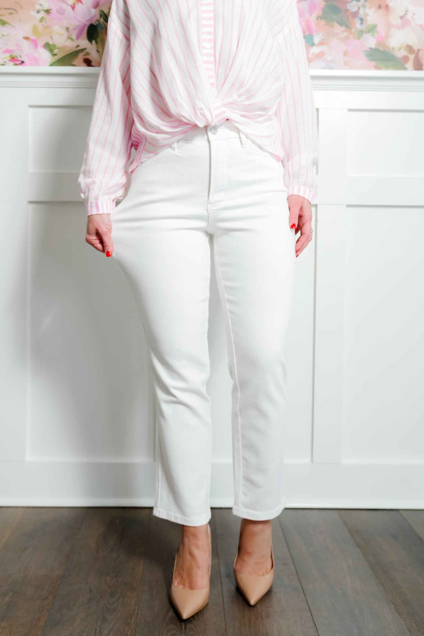 If you’ve been searching for the ultimate white jean, this is it. Bright, fresh, and incredibly flattering, these instantly refine your shape with a smoothing tummy control panel and a waist-defining high rise. The straight leg silhouette keeps the look classic and versatile while the ankle length adds that modern finish. They feel soft, flexible, and supportive all at once, giving you confidence the second you slip them on.