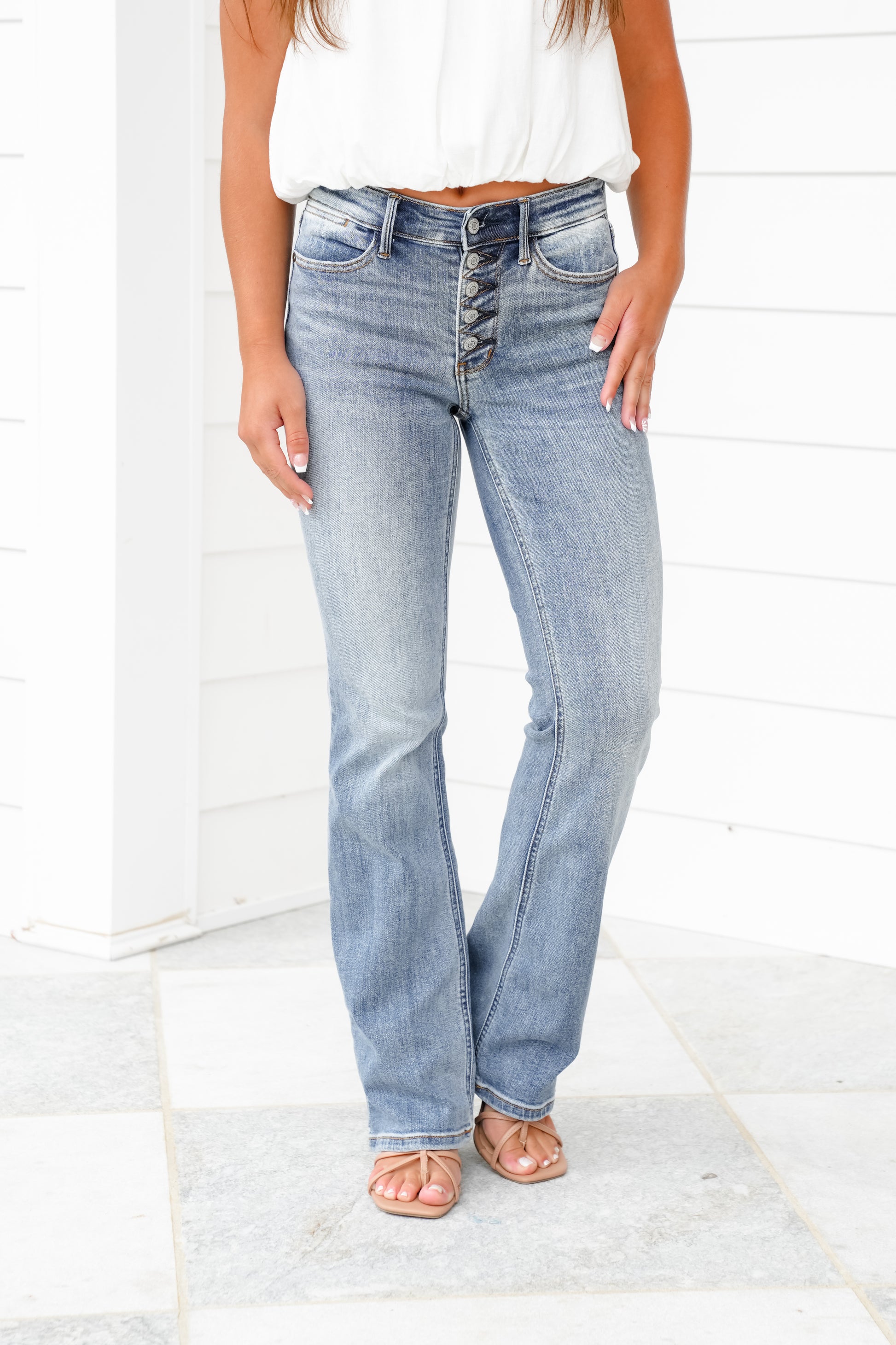 Judy Blue Dreaming About You Medium Wash Mid Rise Vintage Button-Fly Bootcut Jeans