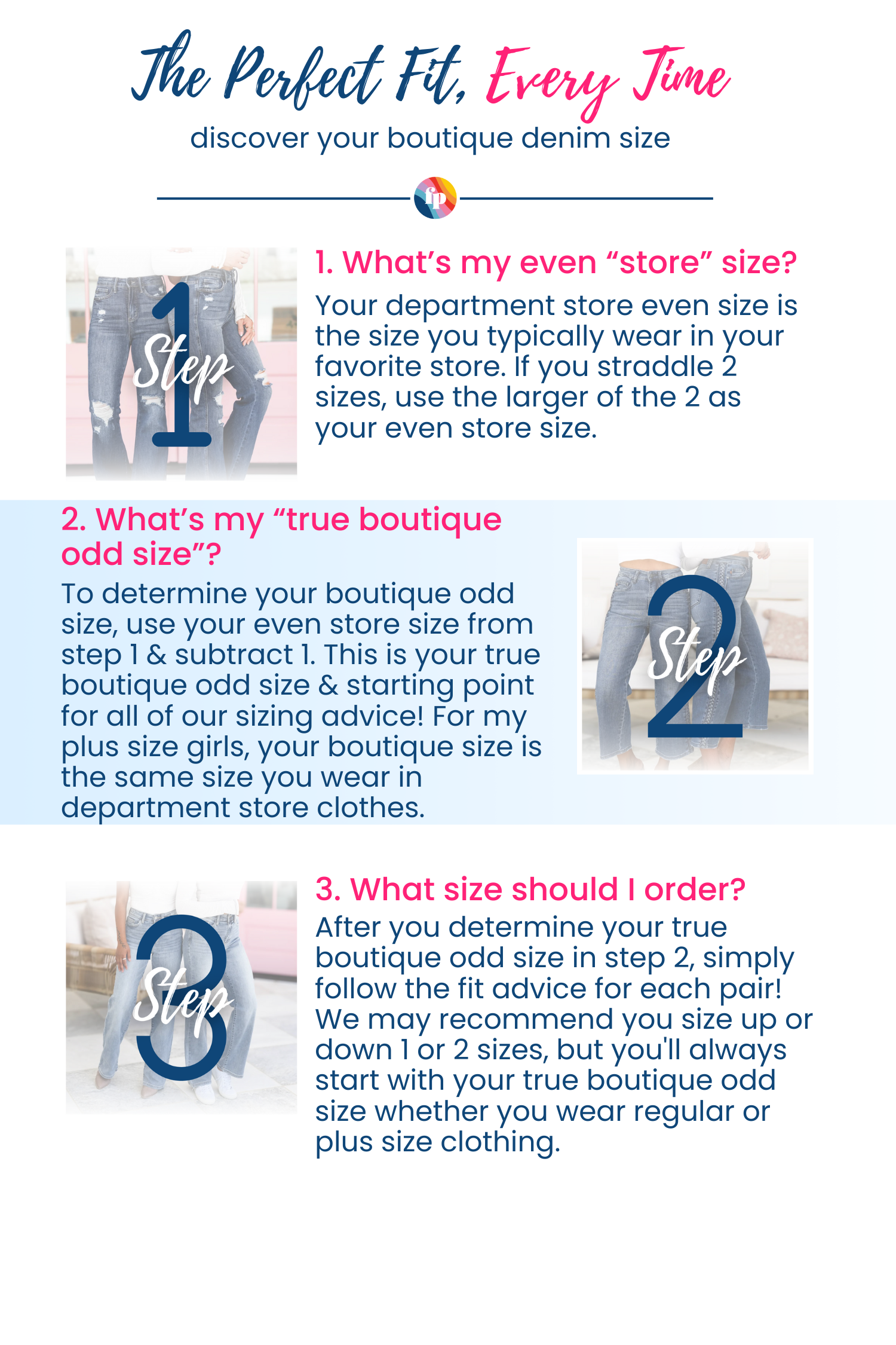 Here at Freckled Poppy, we're known for the BEST fit advice! We have less than a 4% return rate on jeans; we take getting the right fit very seriously! Please follow the fit advice for the perfect-fitting jeans!